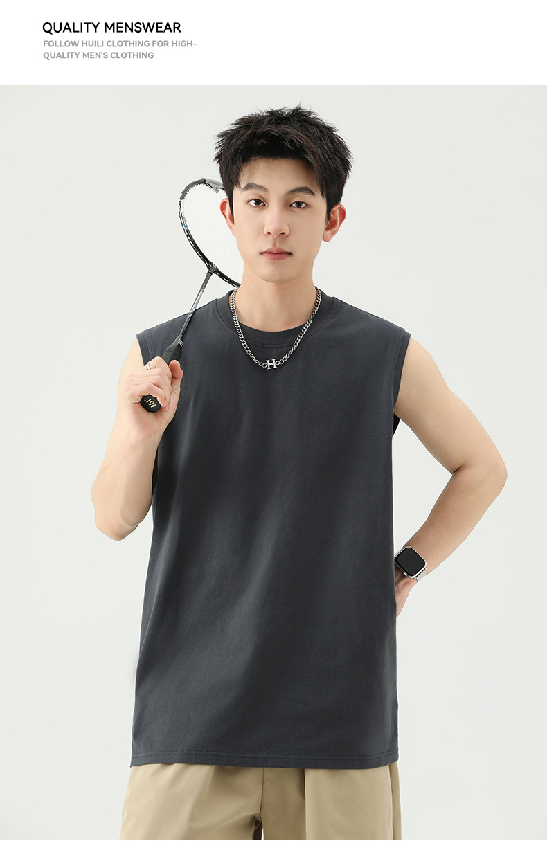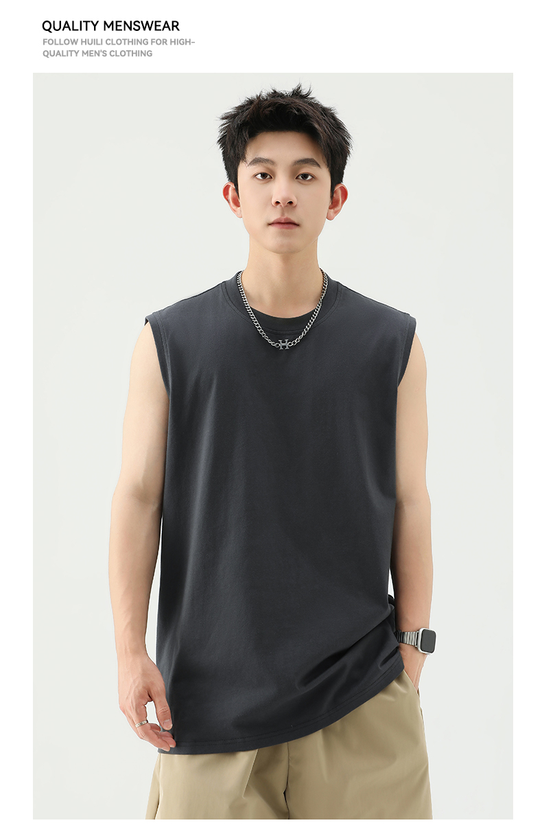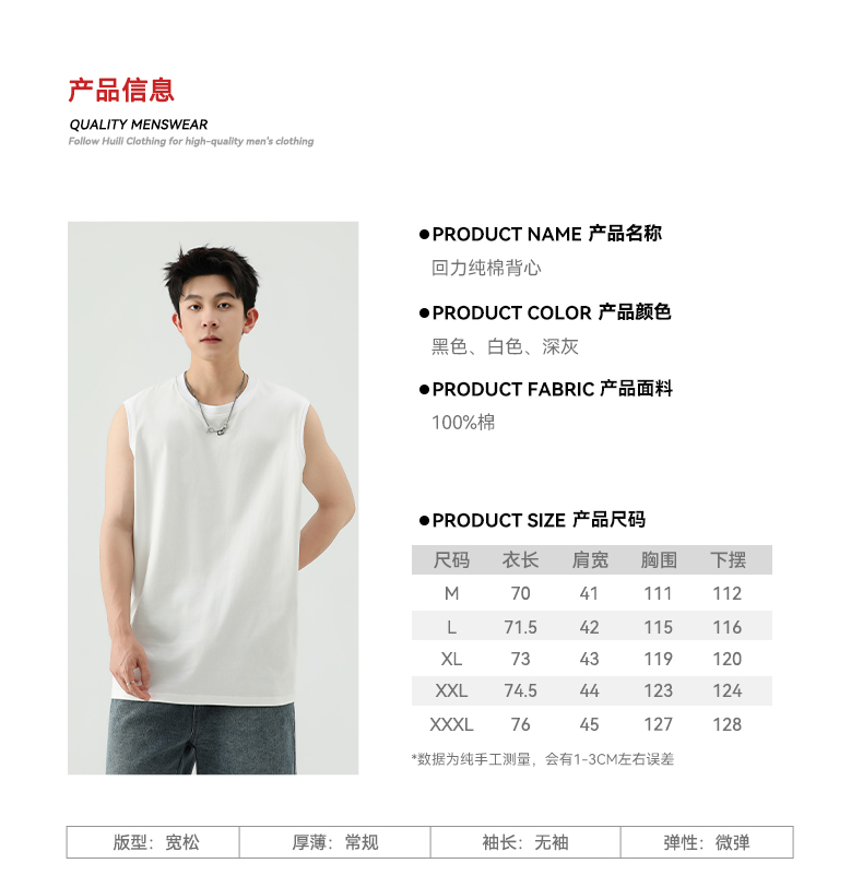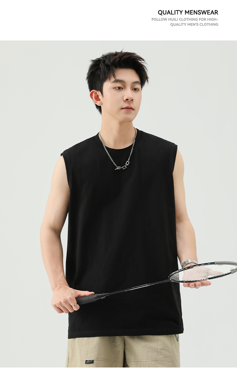 回力背心男士夏季纯色全棉坎肩运动健身速干黑色美式打底无袖T恤