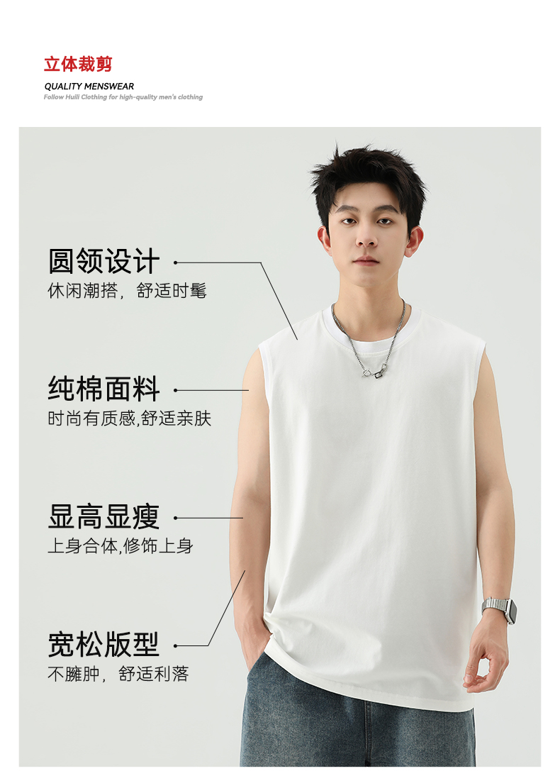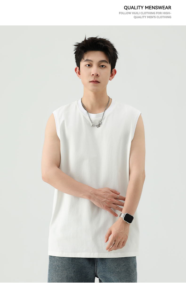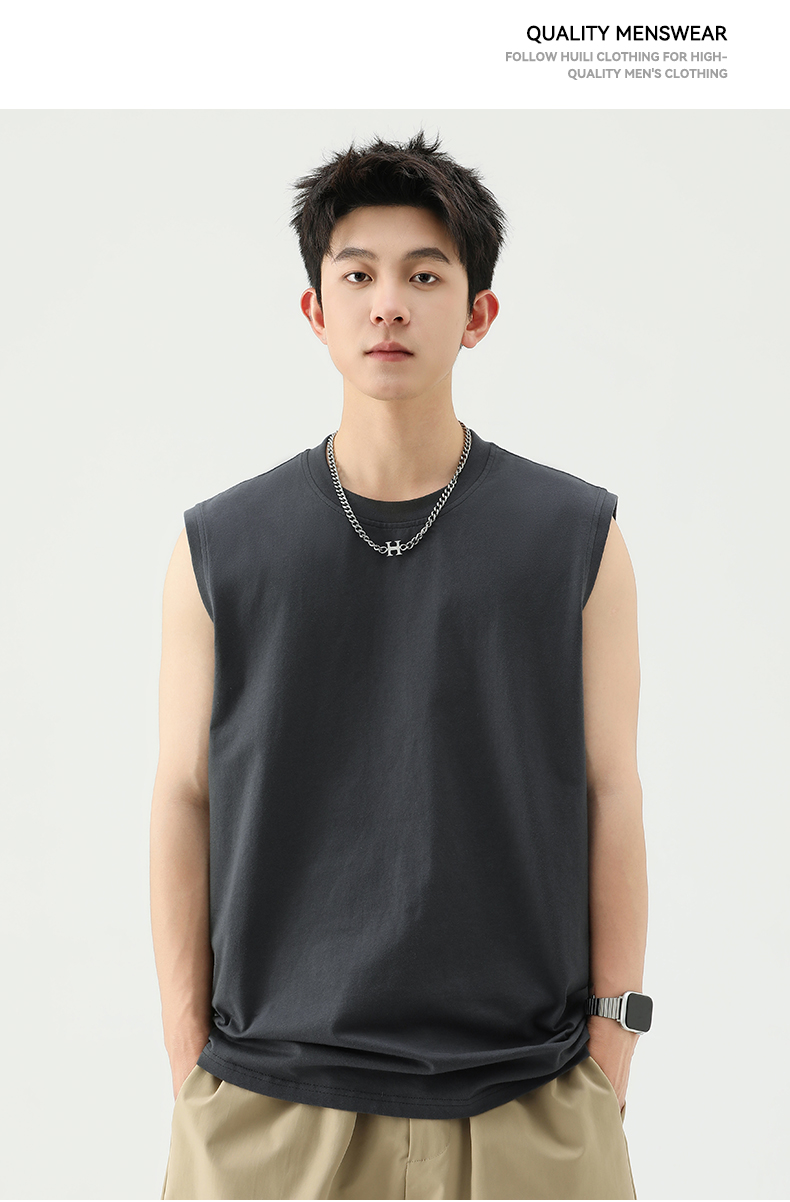 回力背心男士夏季纯色全棉坎肩运动健身速干黑色美式打底无袖T恤