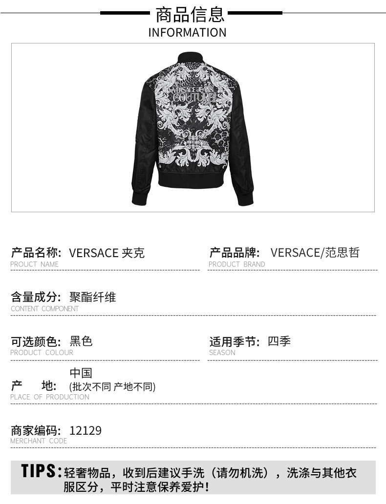 【超惠秒】Versace 范思哲 男士防风夹克外套 12129