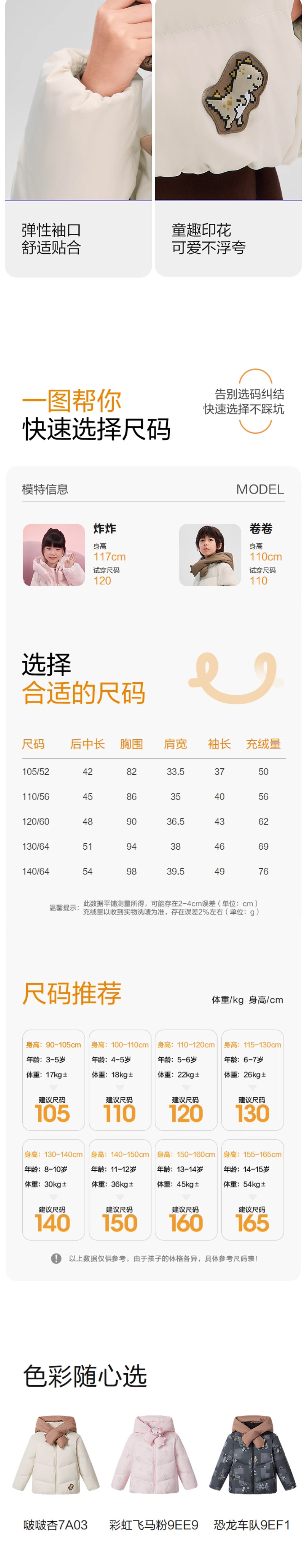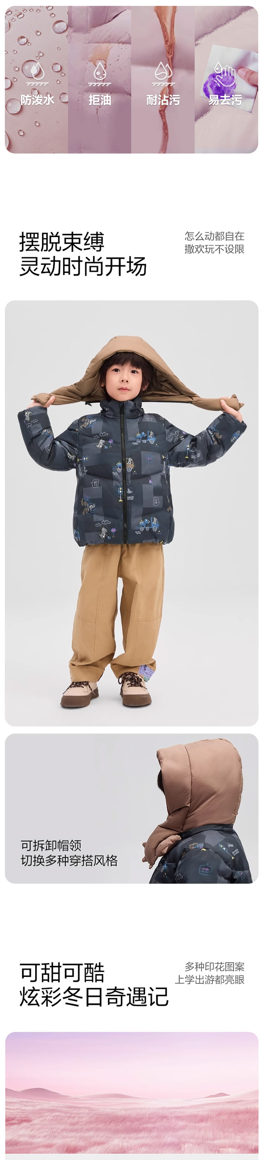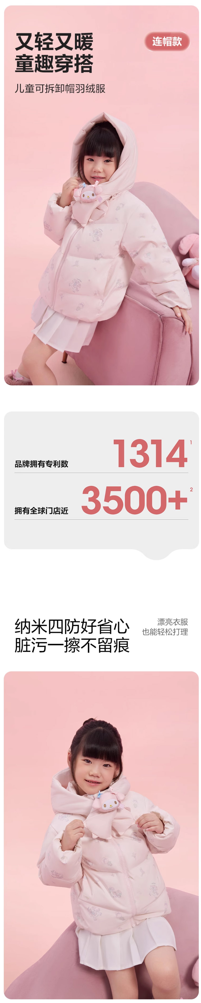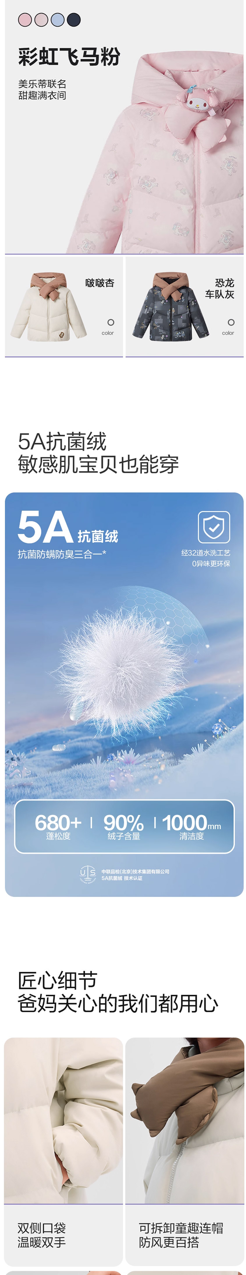 波司登美乐蒂联名宝宝羽绒服女童短款轻盈可拆围脖T250246305KI