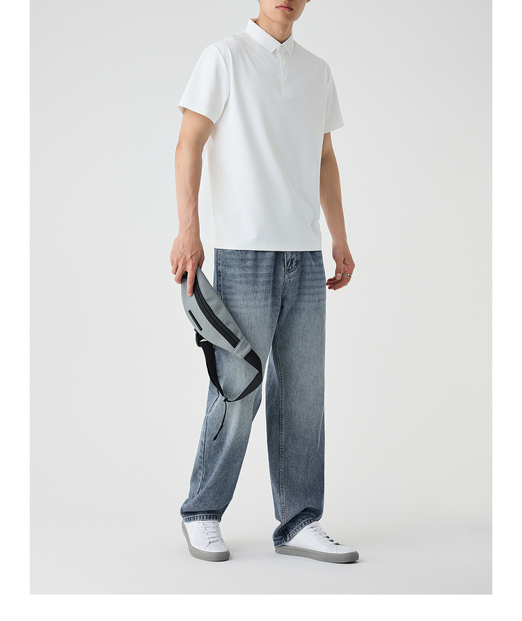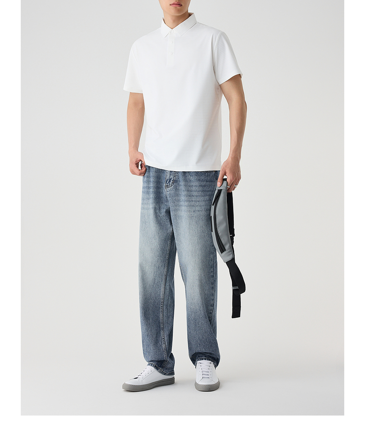 墨麦客男装 老钱风 立体横纹基础短袖polo衫2025夏季新款凉感