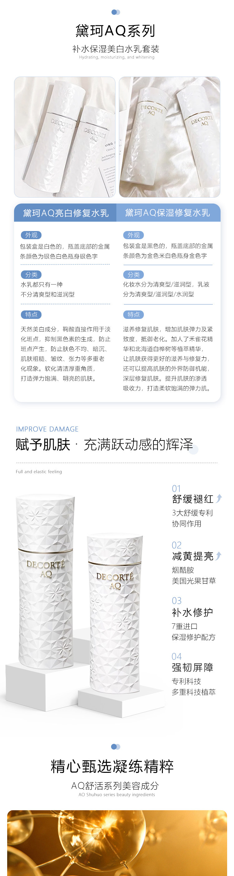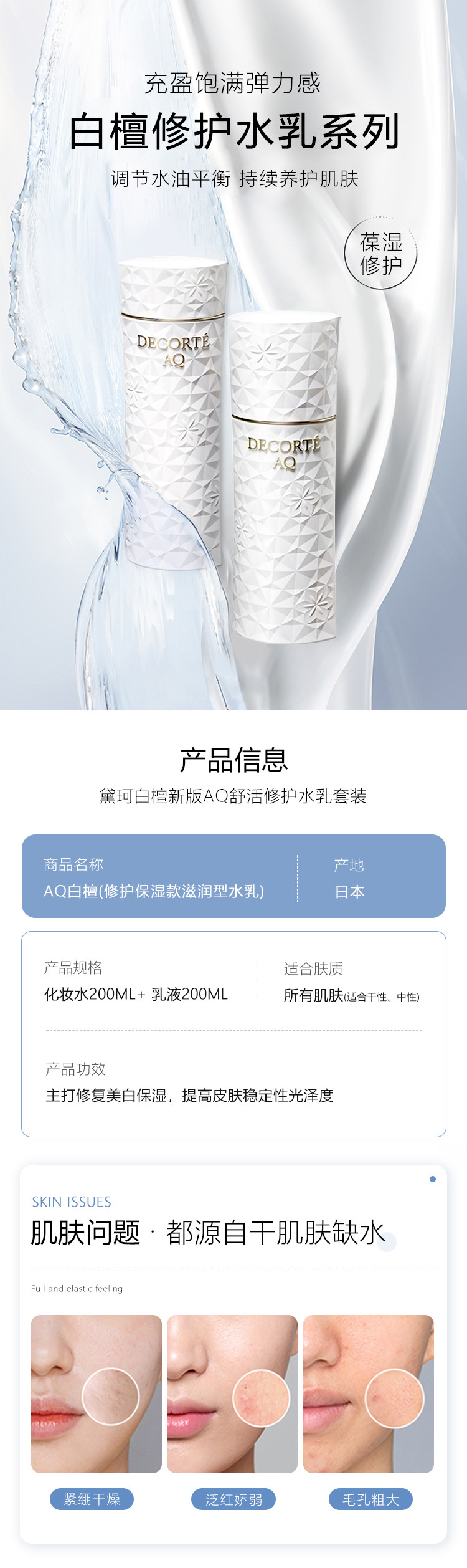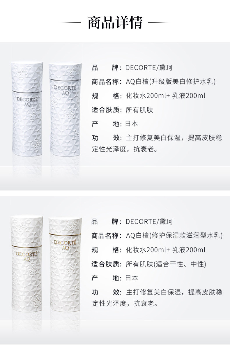 黛珂白檀水乳套装 AQ新版滋润美白型抗初老紧致修复保湿化妆水乳液 化妆水200ml乳液200ml