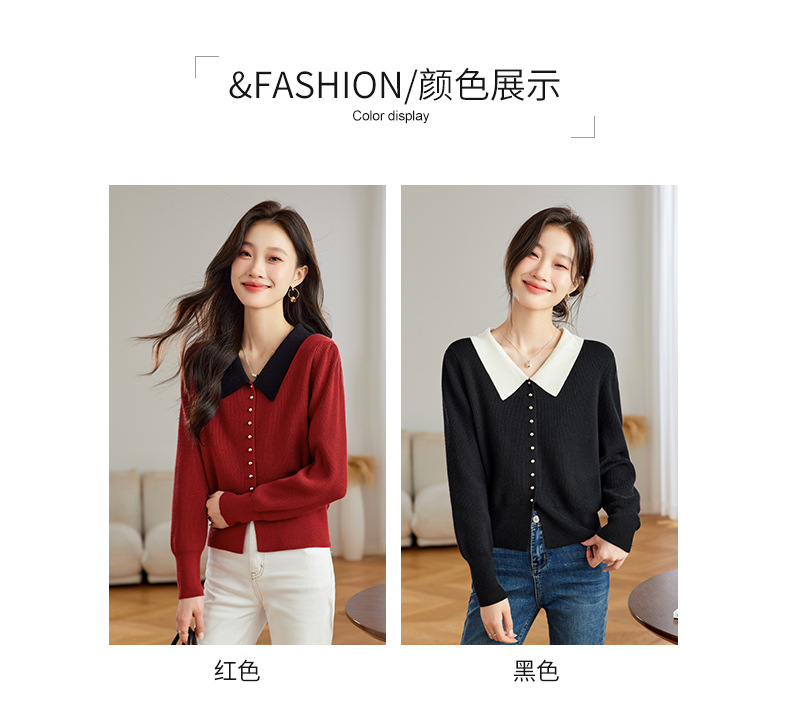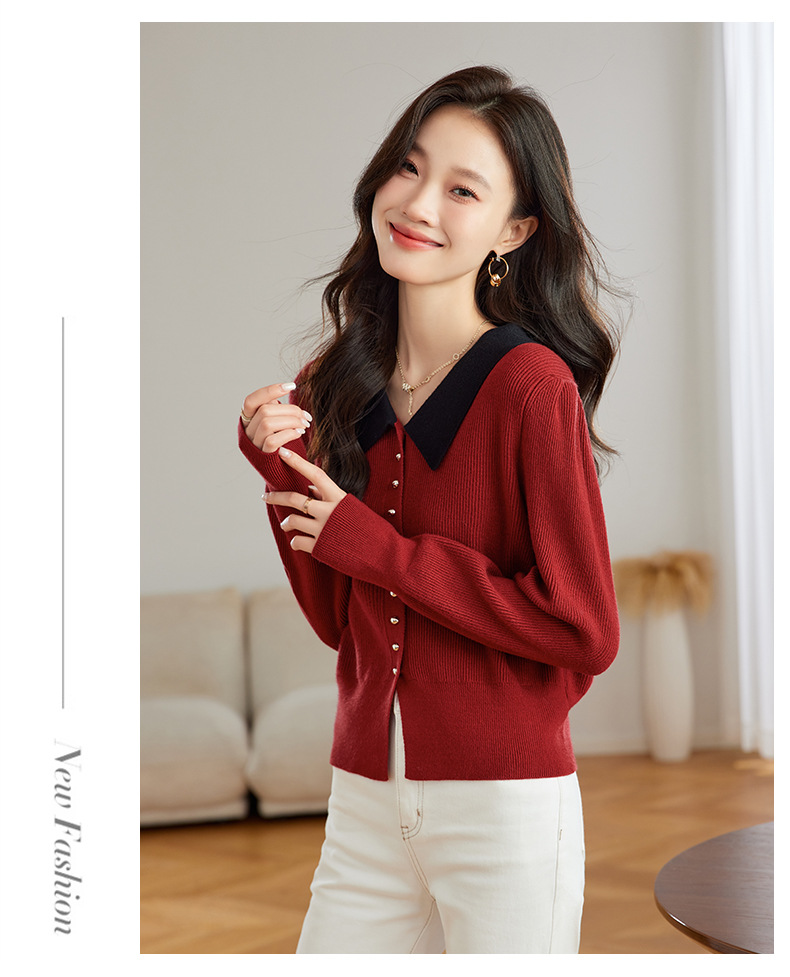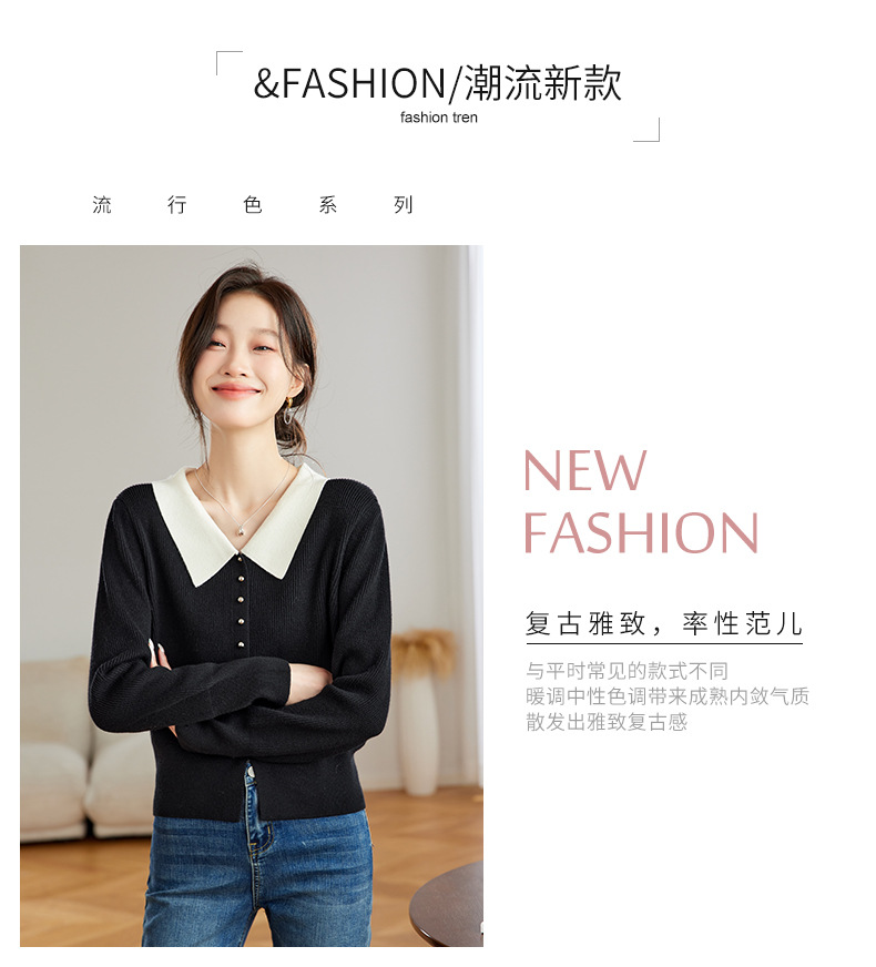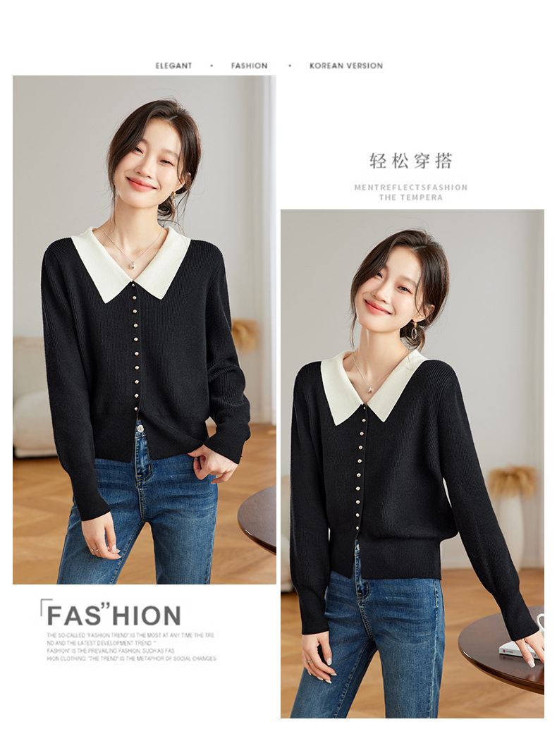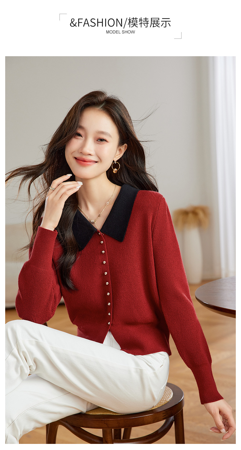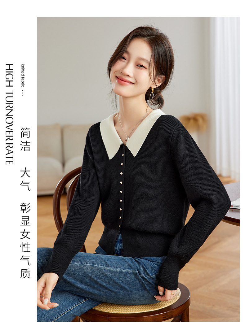 翻领针织开衫,拼色小香风洋气减龄打底上衣CC-JDS-8908