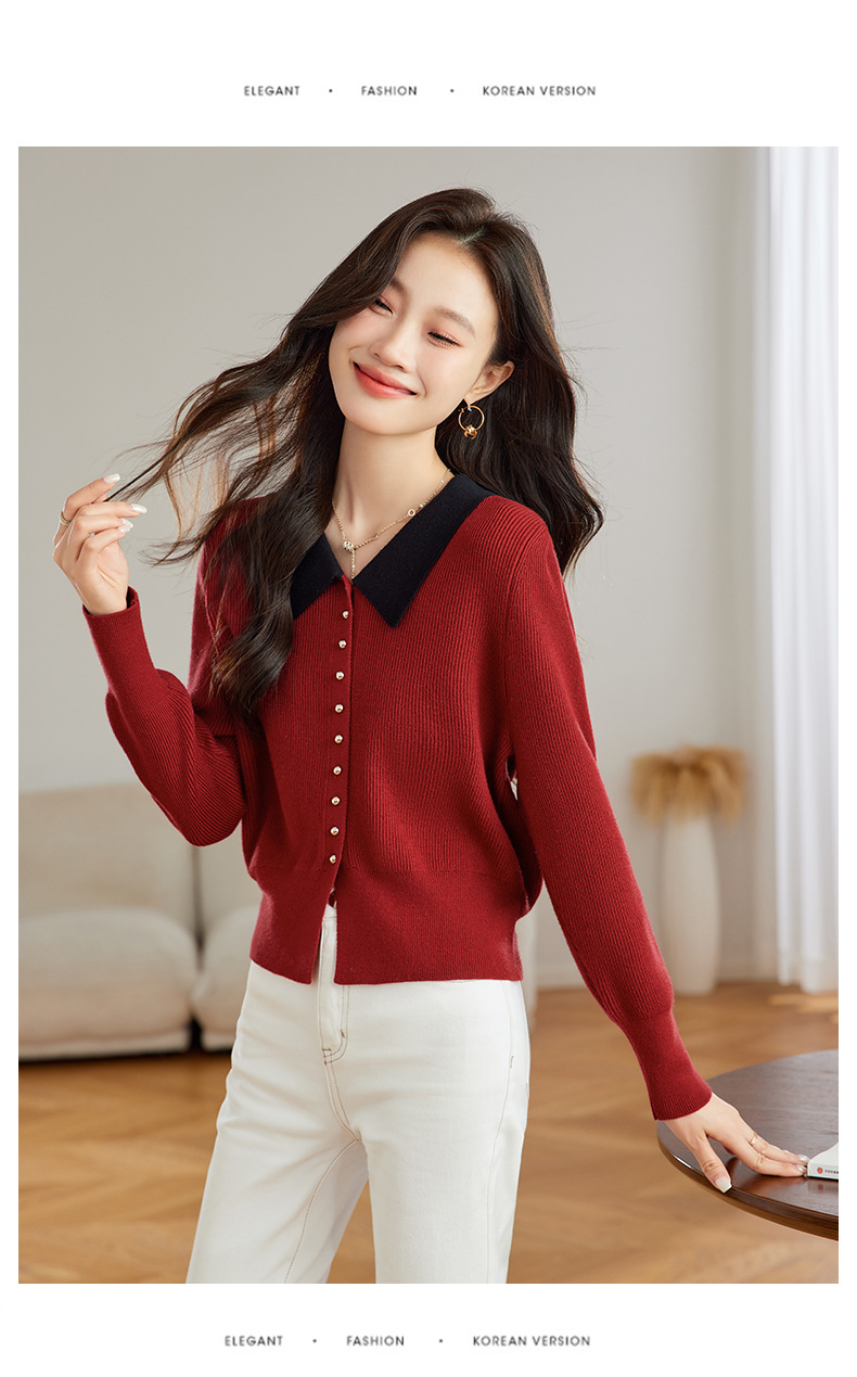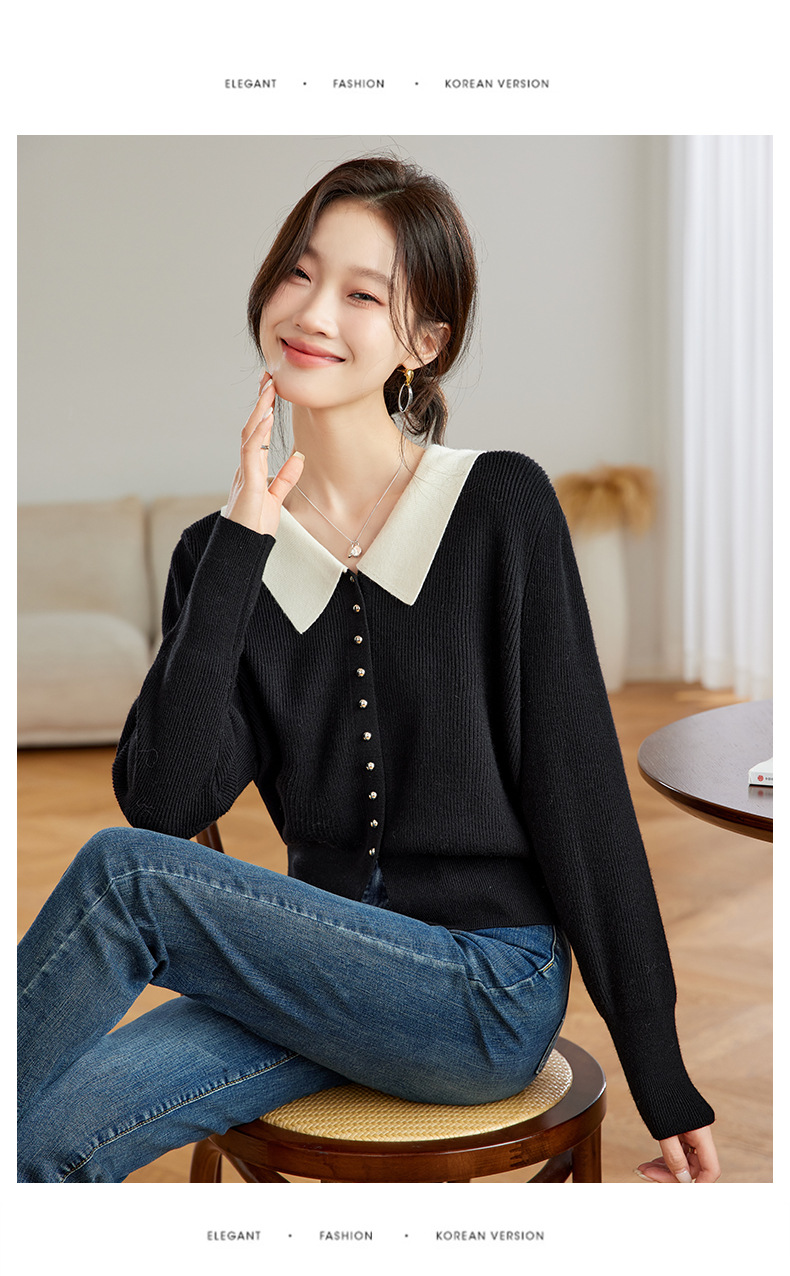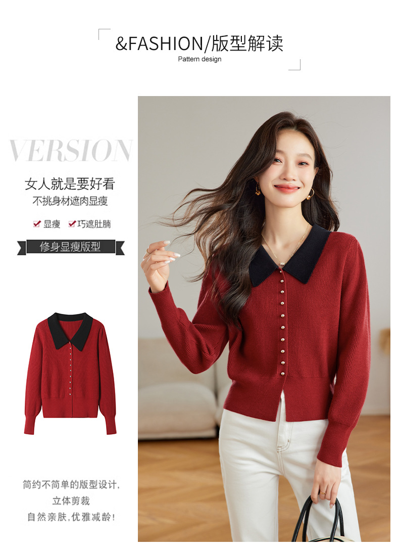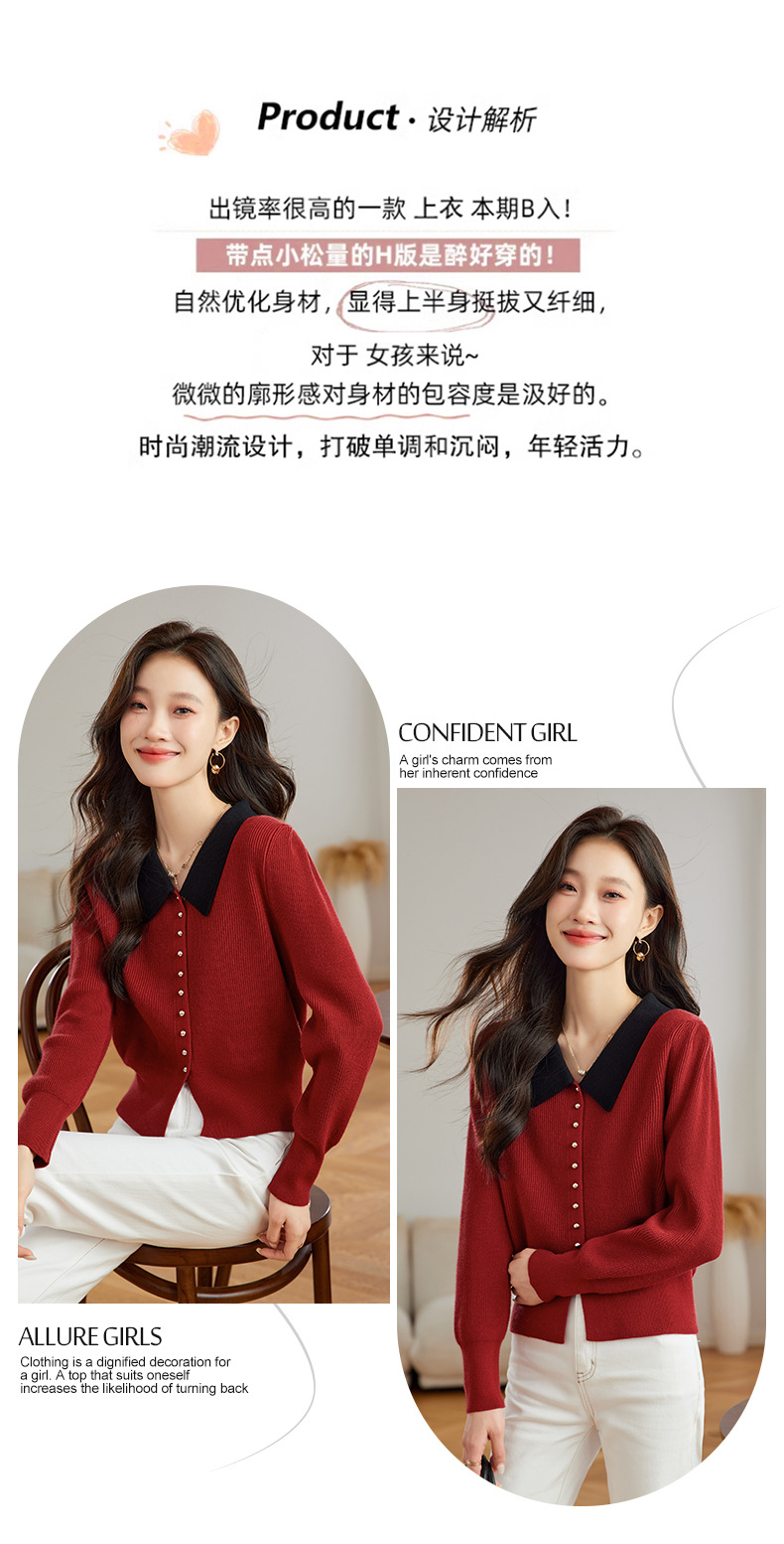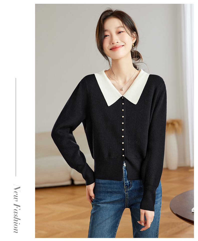 翻领针织开衫,拼色小香风洋气减龄打底上衣CC-JDS-8908