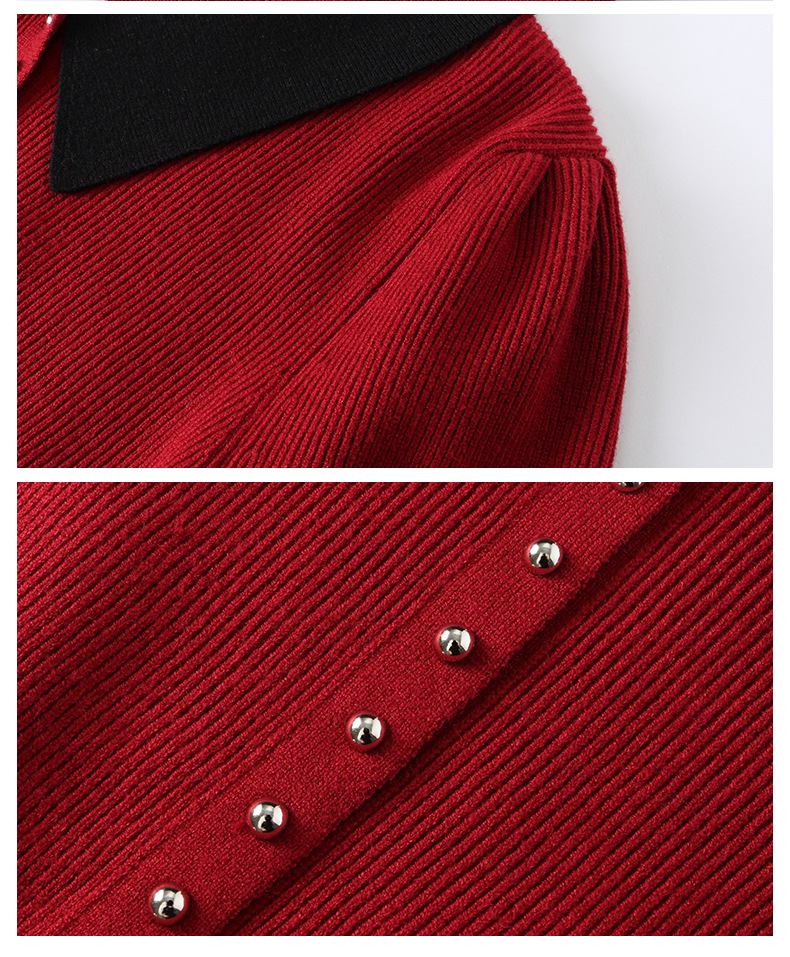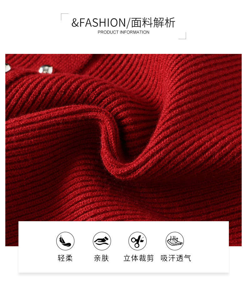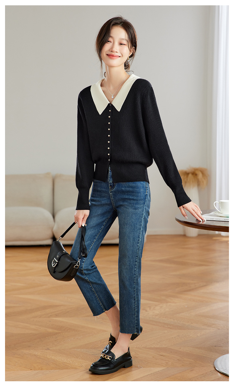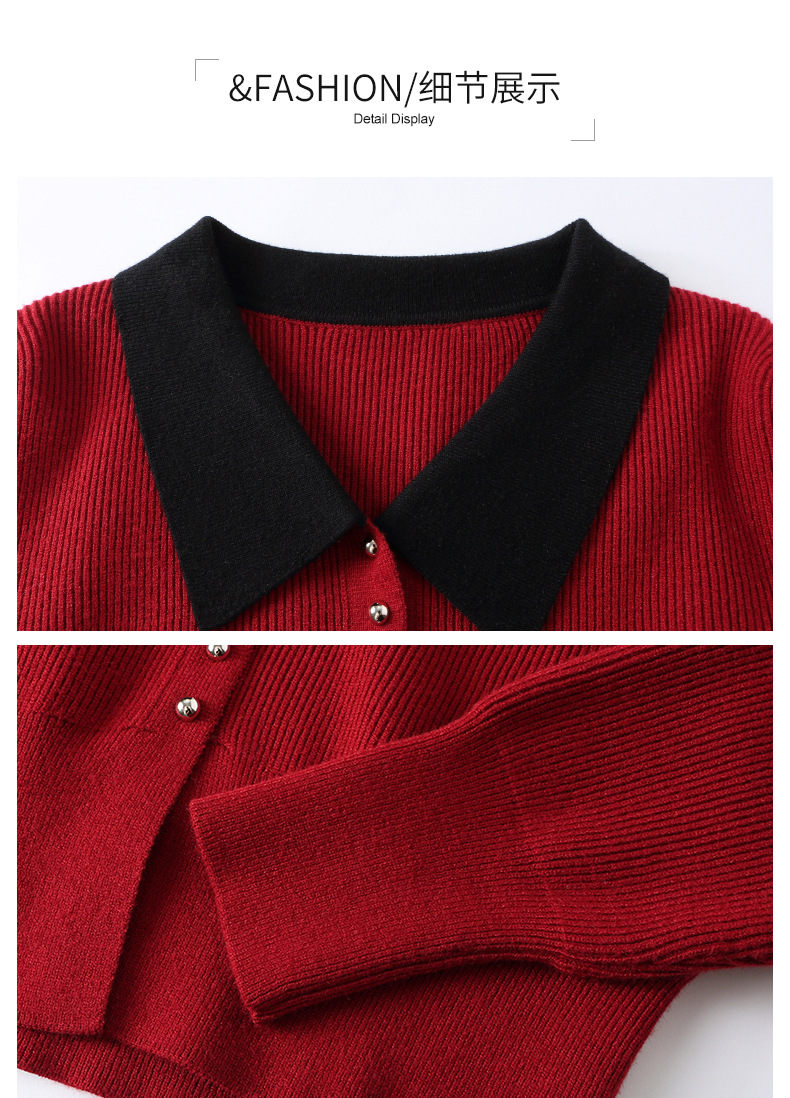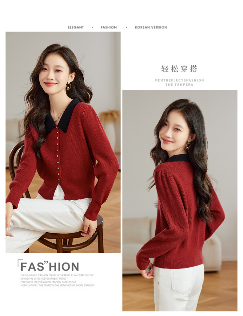 翻领针织开衫,拼色小香风洋气减龄打底上衣CC-JDS-8908