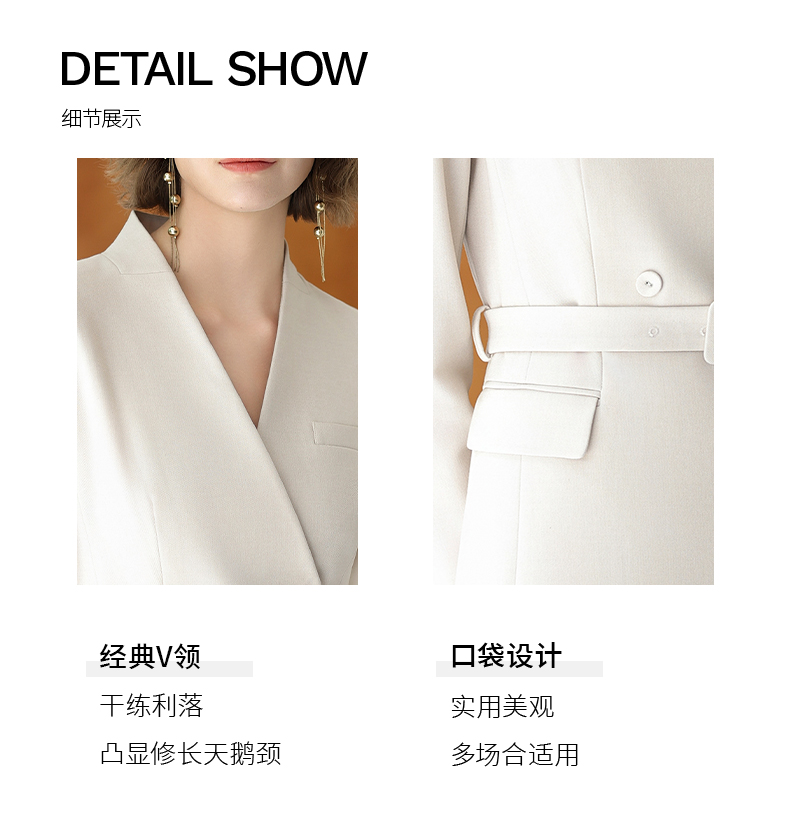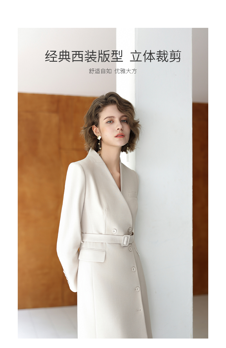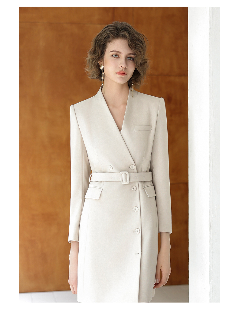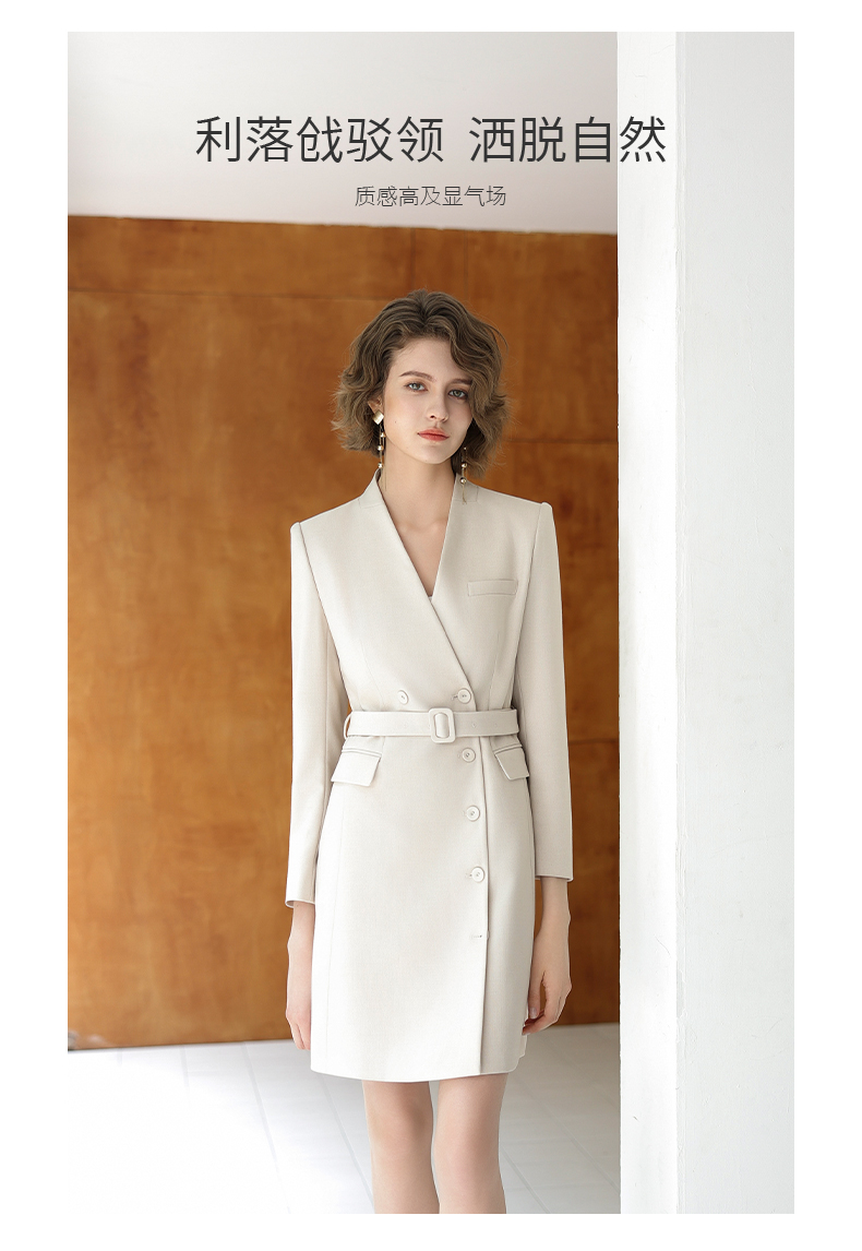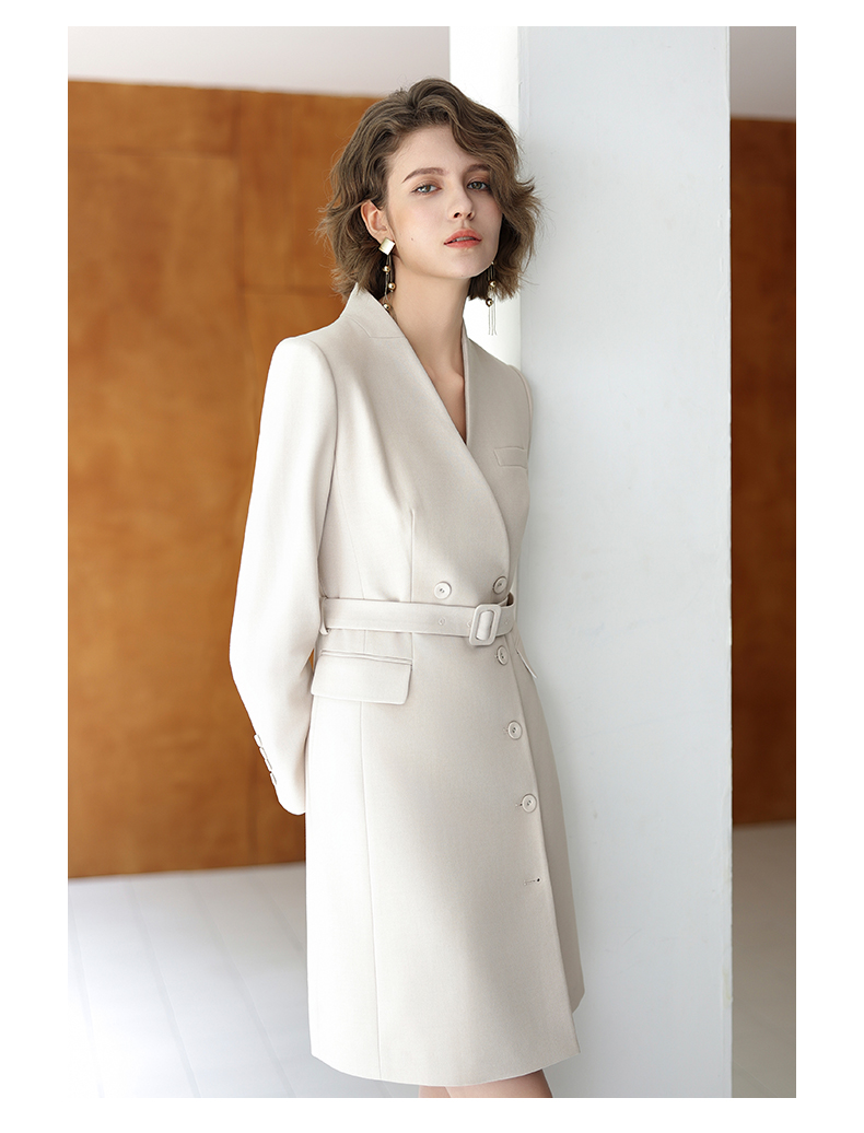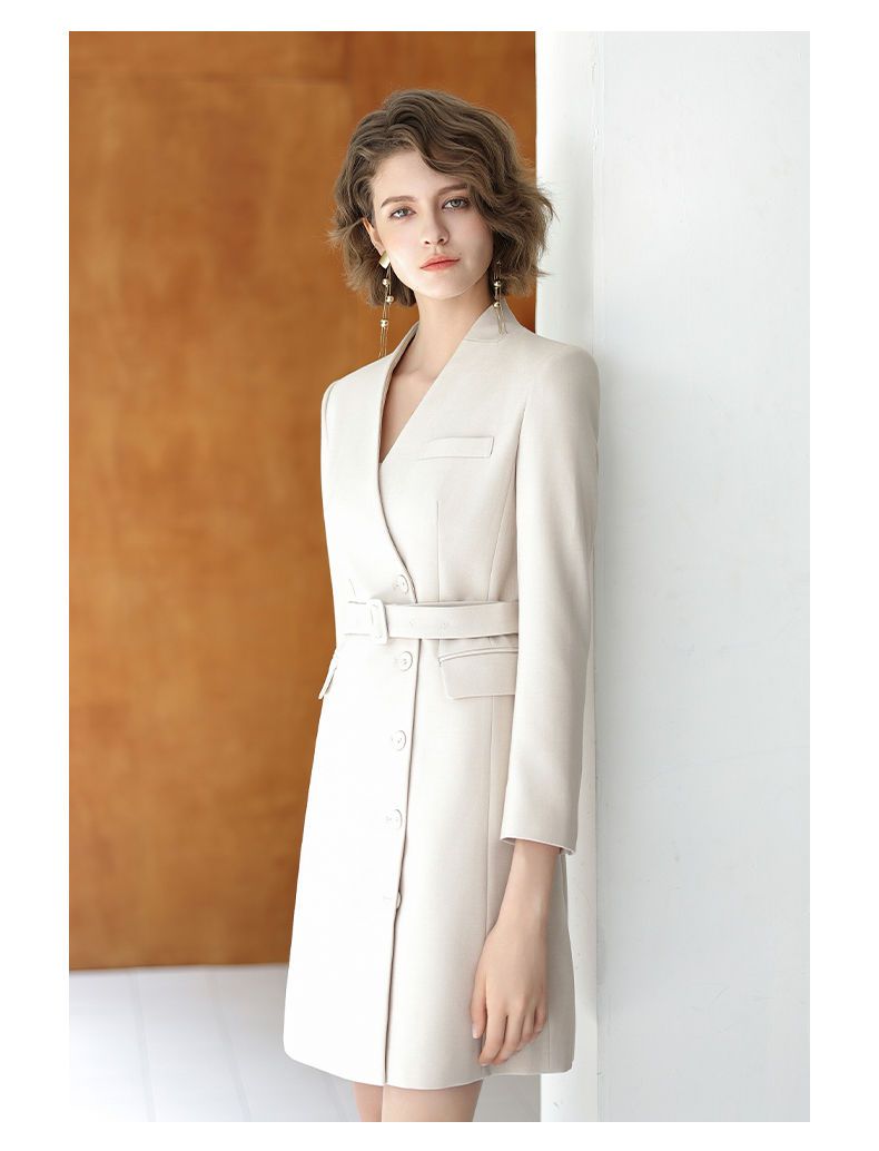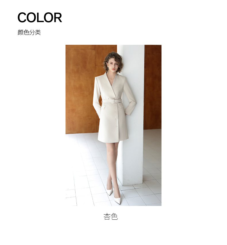 IWY/时尚优雅杏色连衣裙女秋冬长袖白领通勤西装裙主持人上镜工作服Q13323