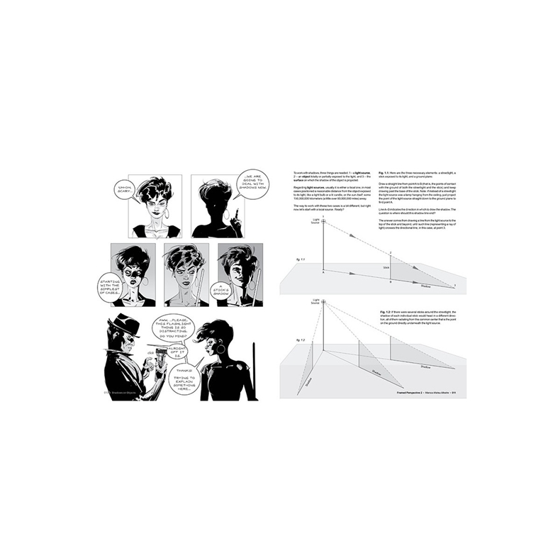 Building on the foundation established with the first book in the series, Framed Perspective 2 guides artists through the challenging tasks of projecting shadows in proper perspective on a variety of environments and working with characters in perspective set in particular situation or setting. Author and artist Marcos Mateu-Mestre reveals the many techniques and mechanics he has used to become proficient in such endeavors, including using anatomy, shadows, and clothing folds to define the shape and volume of characters within an environment. He also shares how to effectively observe a model or object to extract the right amount of information to then translate it into an impactful graphic and visual image, the goal of every visual storyteller.