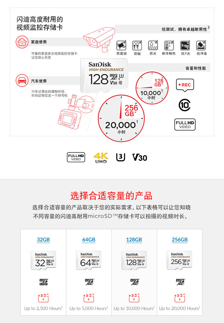 闪迪行车记录仪卡 128g内存卡高速通用tf卡sd储存卡视频监控卡