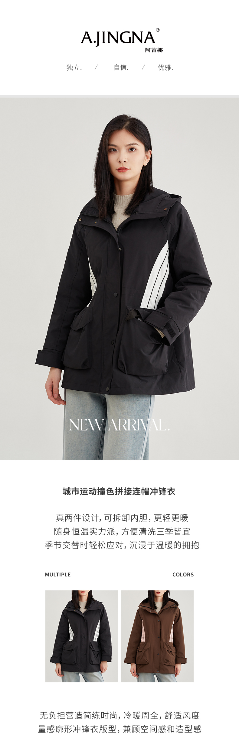 【三季皆宜】阿菁娜城市运动撞色拼接连帽冲锋衣F29D215007