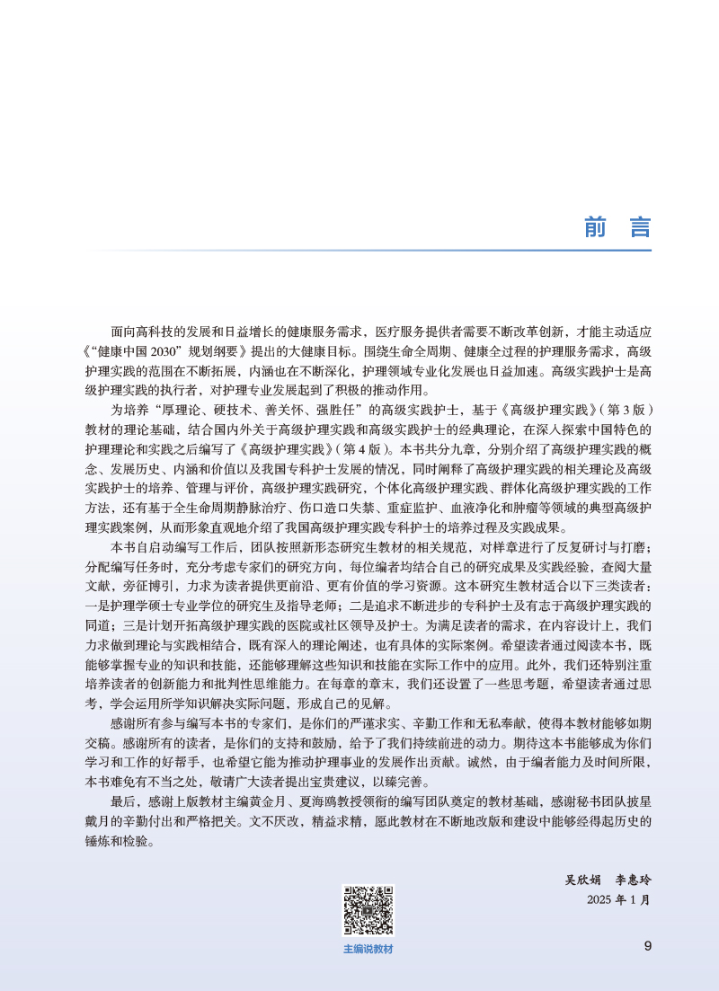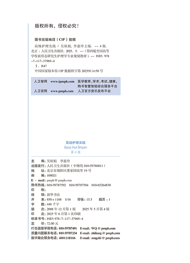 高级护理实践 第4四版 吴欣娟 李惠玲 国家卫生健康委员会十四五规划教材 全国高等学校教材 供研究生护理学专业用 人民卫生出版社