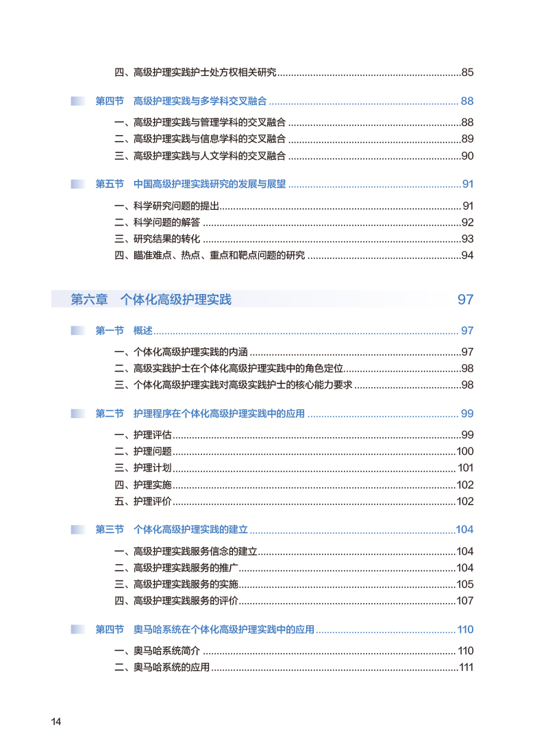 本书旨在通过基础知识的讲解,同时将**科研方法、科研成果与临床需求相结合,围绕健康中国生命全周期、健康全过程的护理重点、难点、堵点和靶点问题进行编写。 本书理论部分内容按照以下结构进行书写:学习目标、案例导航、研究方向、相关链接;实践部分内容包括学习目标、案例导航、护理问题、临床思维、干预决策、评价指标、指南链接、创新研究、人文关怀、总结与反思。 本书编写内容包括:绪论、高级护理实践的发展、高级护理实践的相关理论、高级实践护士的教育体系、高级实践护理管理、高级护理实践研究、个体化的高级护理实践、群体化的高级护理实践、生命周期高级护理实践应用案例、高级护理实践护士培养及应用的专科案例等十章内容,力求贴近临床高级护理实践,体现厚理论、硬技术、善关怀、强胜任的专业与人文并蓄的育人目标,旨在强化硕士专业学位研究和临床护士的职业信念、专业价值和人文情怀,培养扎根临床专科护理一线、潜心研究科学问题的专科护理骨干和临床专家型护士。 本书的读者包括护理研究生和导师、临床高级实践护士。
