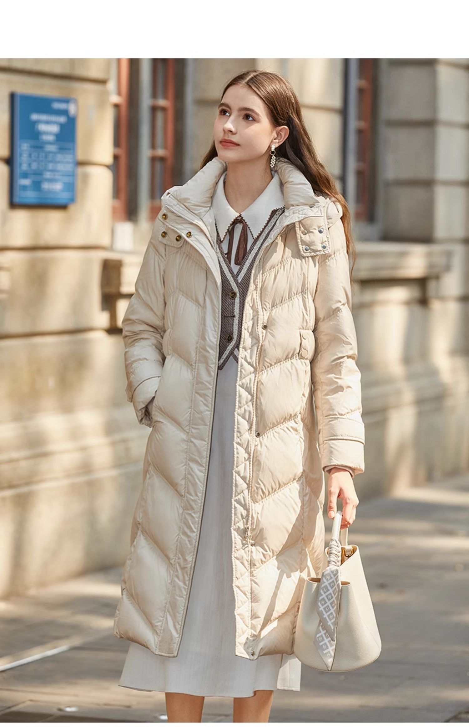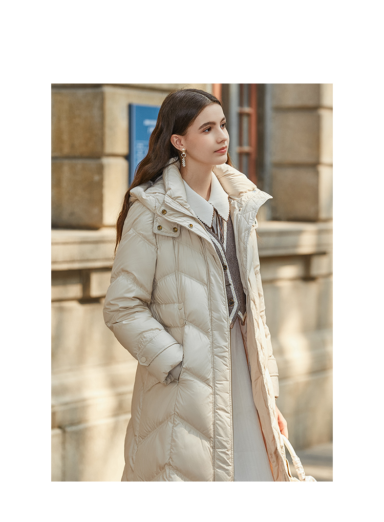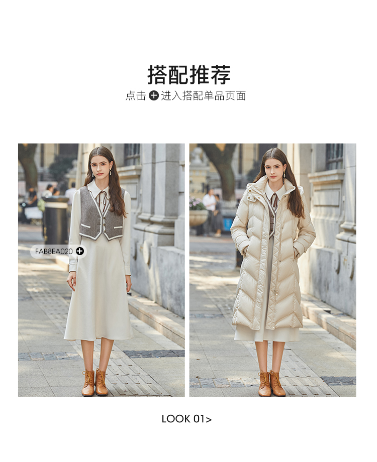 Famecoco范可儿冬季加厚连帽收腰羽绒服女FAB8AH005