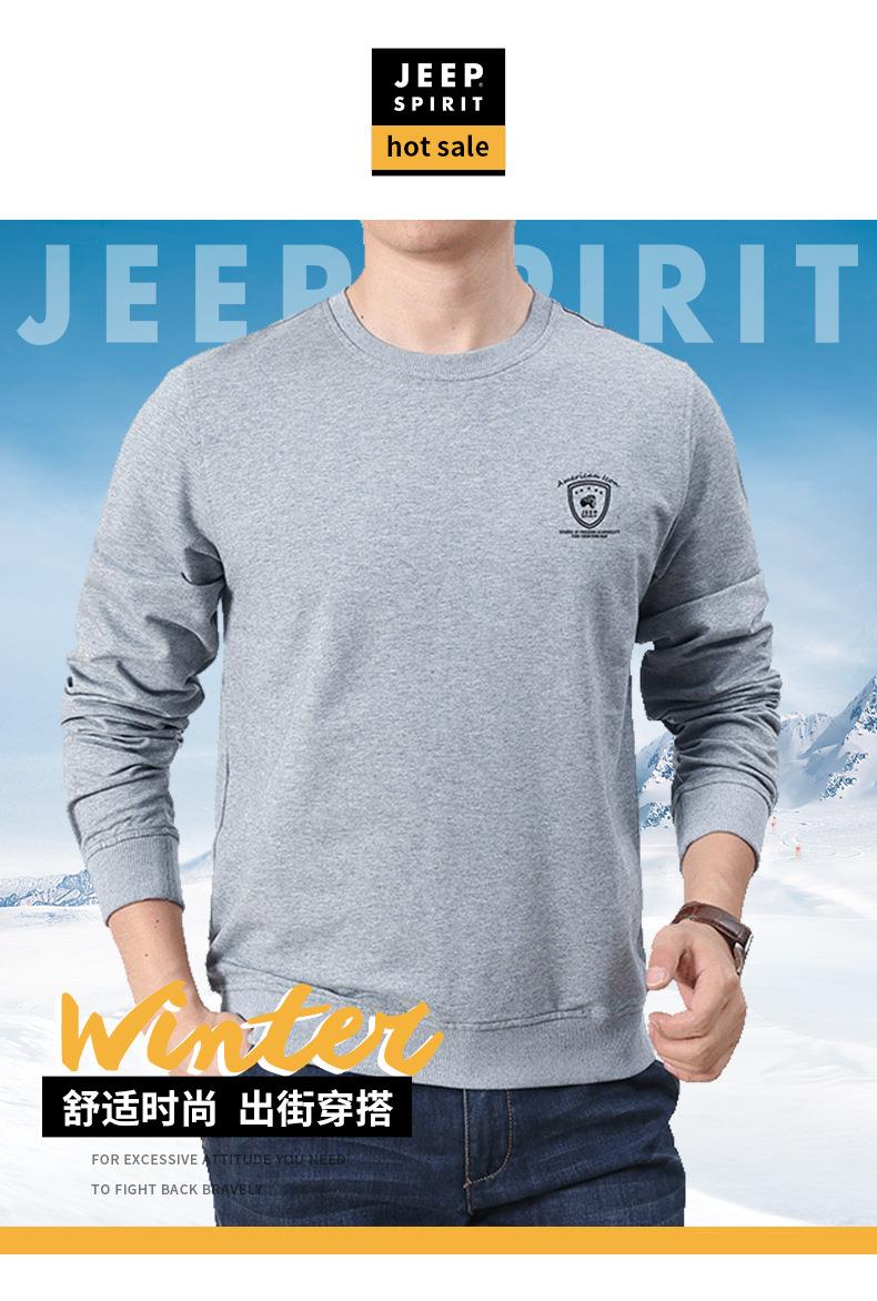 JEEP SPIRIT春款长袖T恤男宽松大码男士卫衣休闲圆领 7604新款