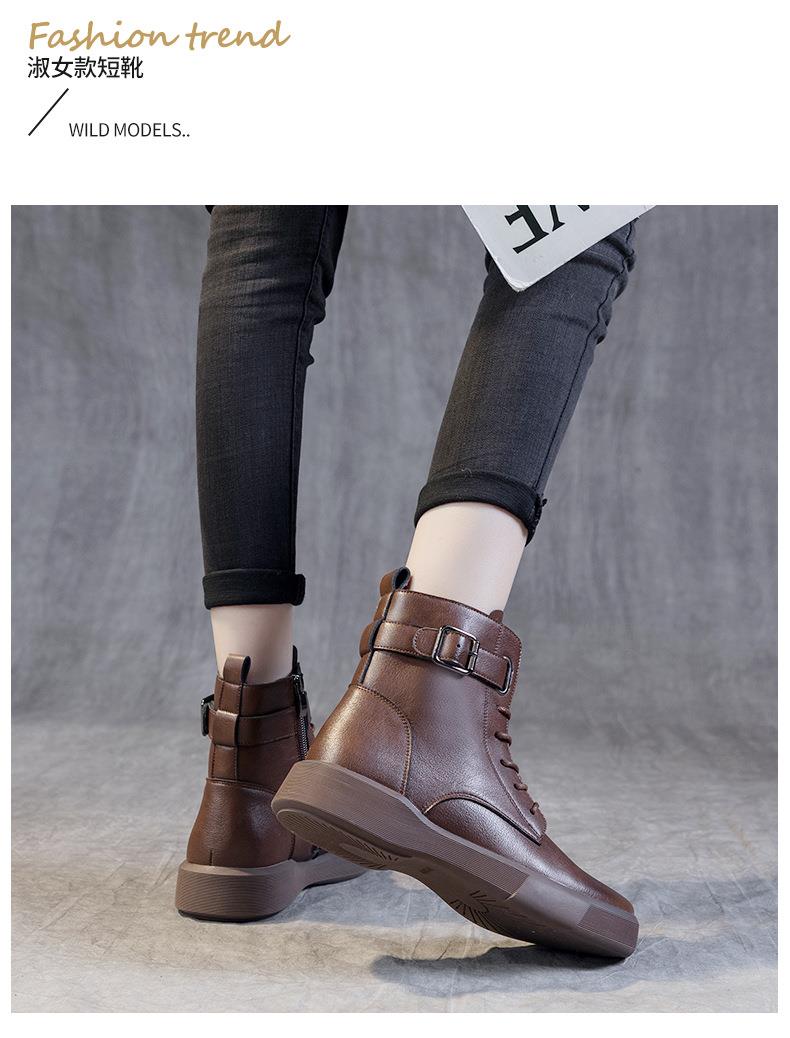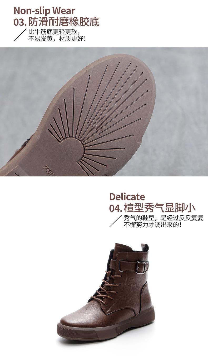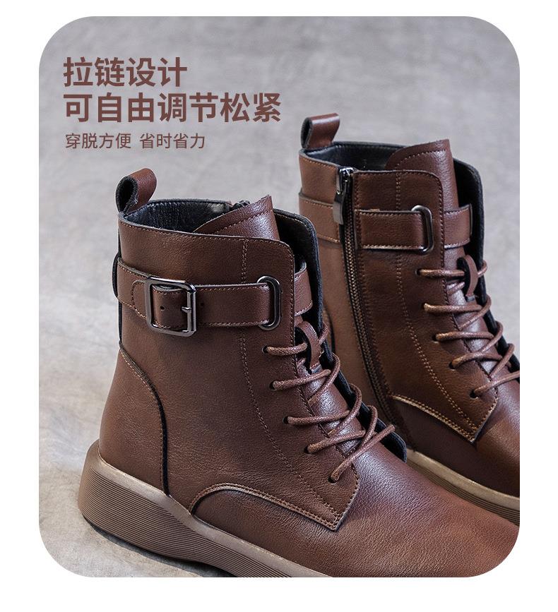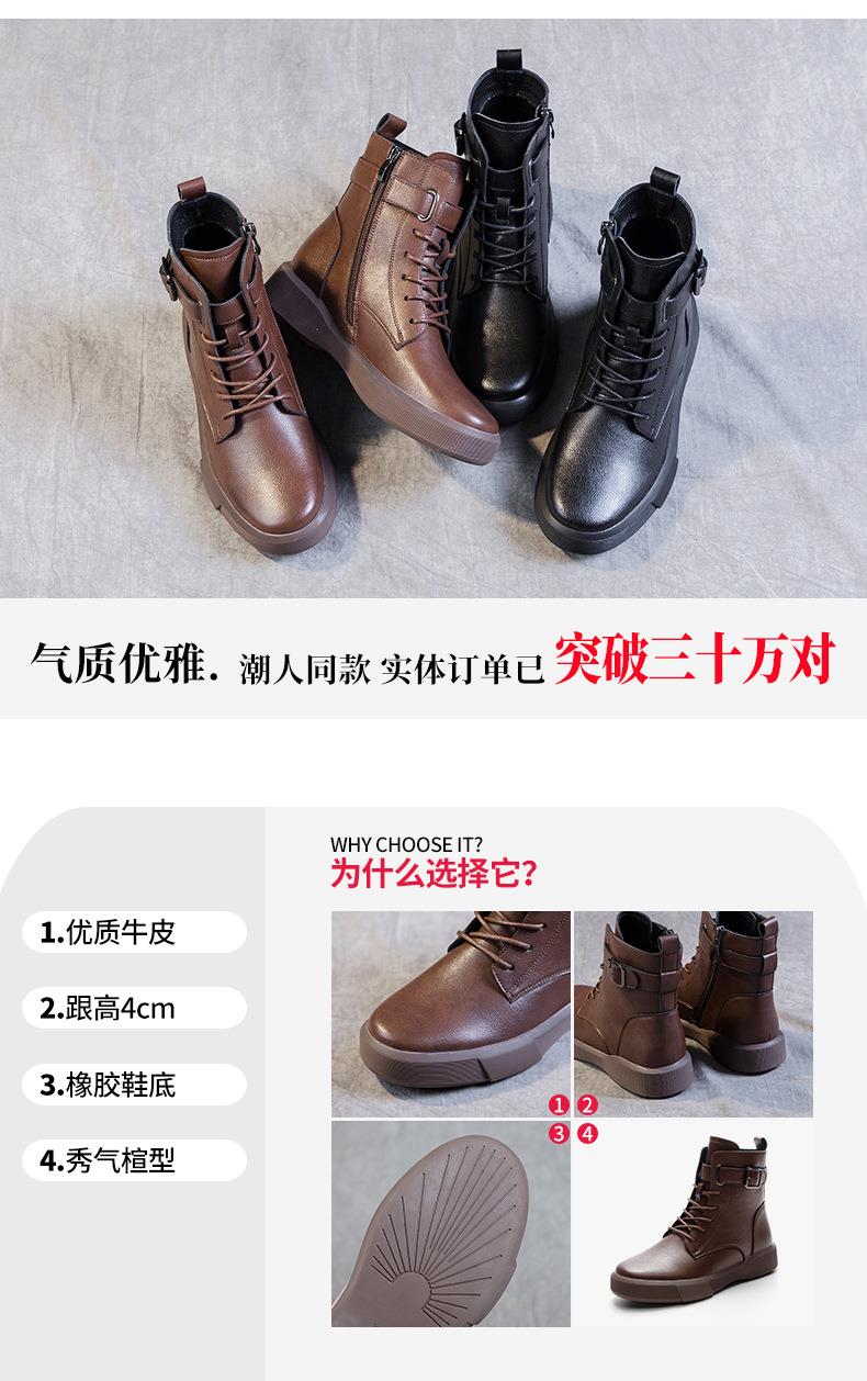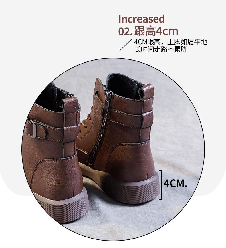 秋冬大码真皮马丁靴女加绒保暖软底小短靴复古内增高平底靴子