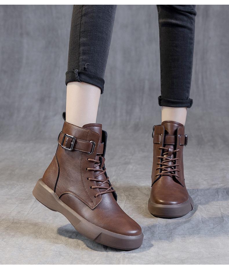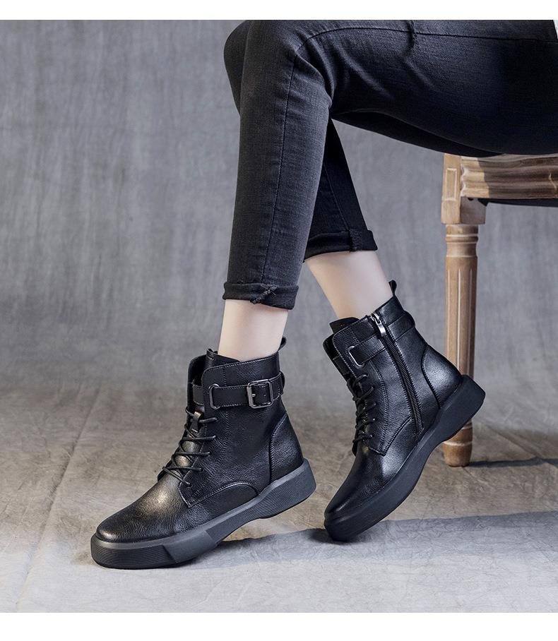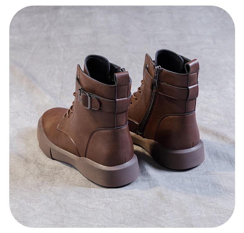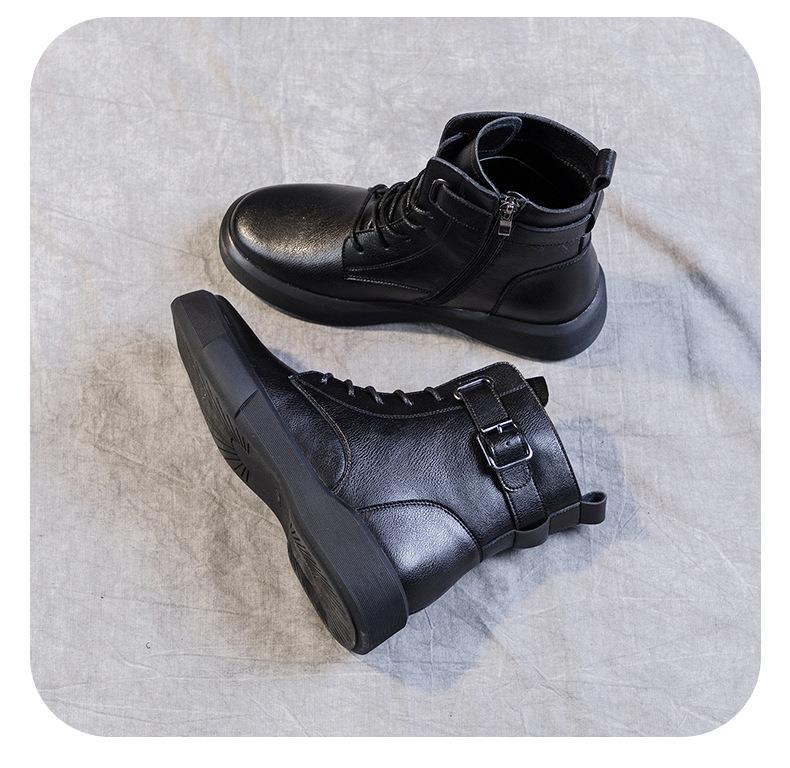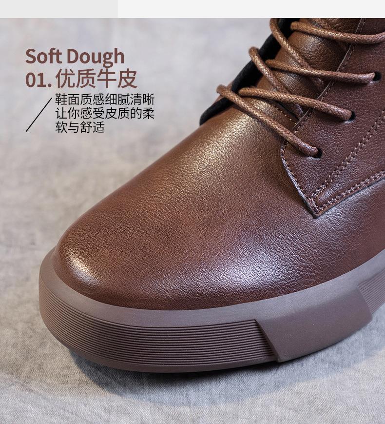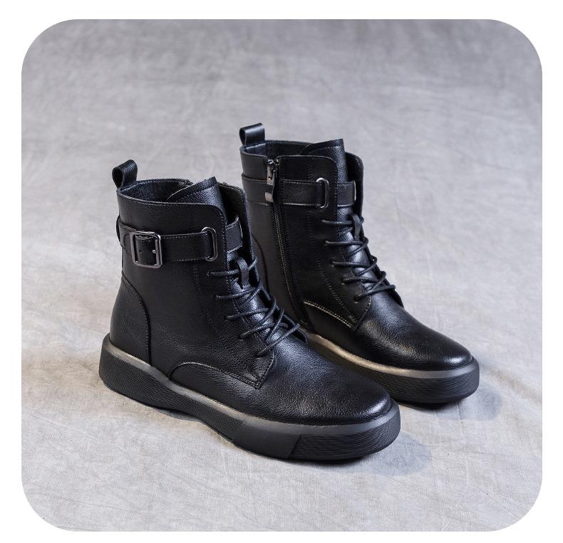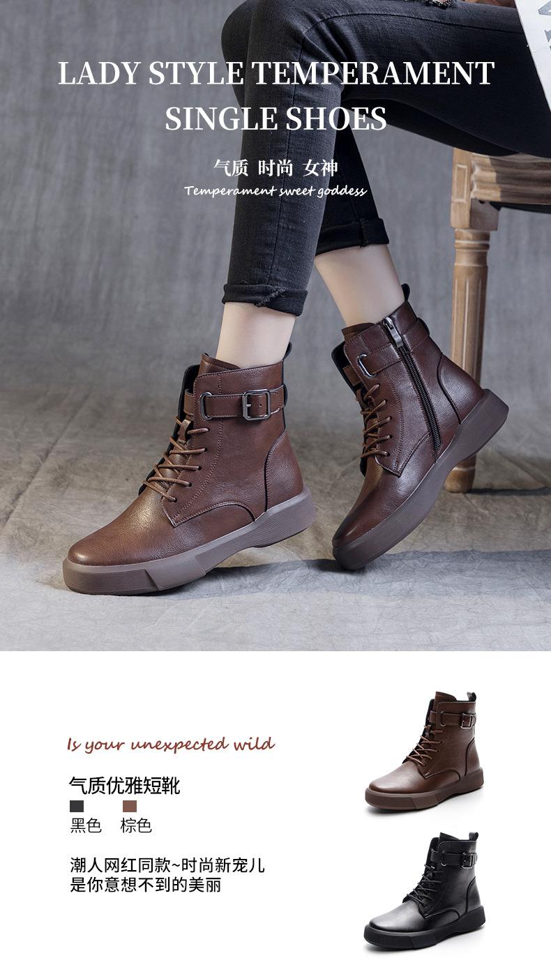 秋冬大码真皮马丁靴女加绒保暖软底小短靴复古内增高平底靴子