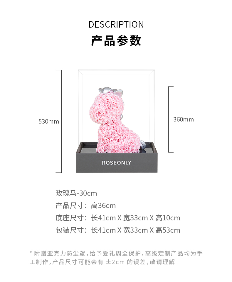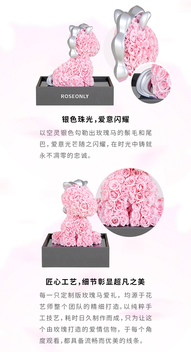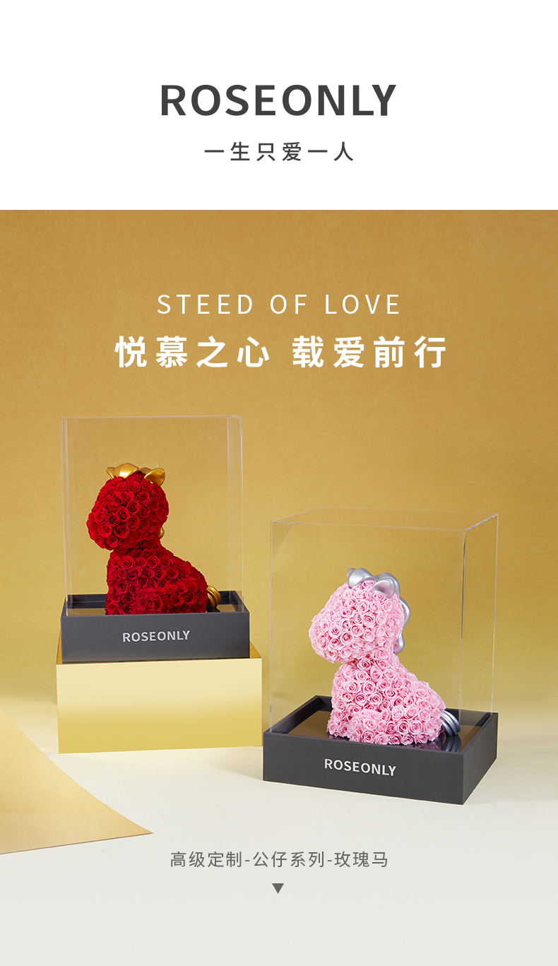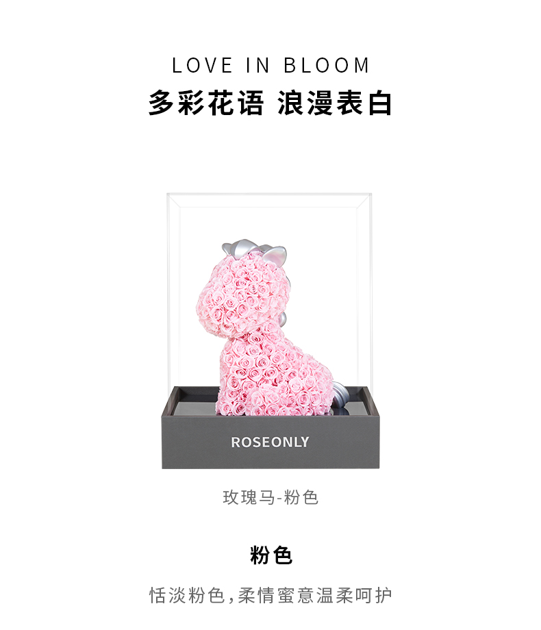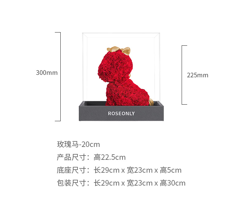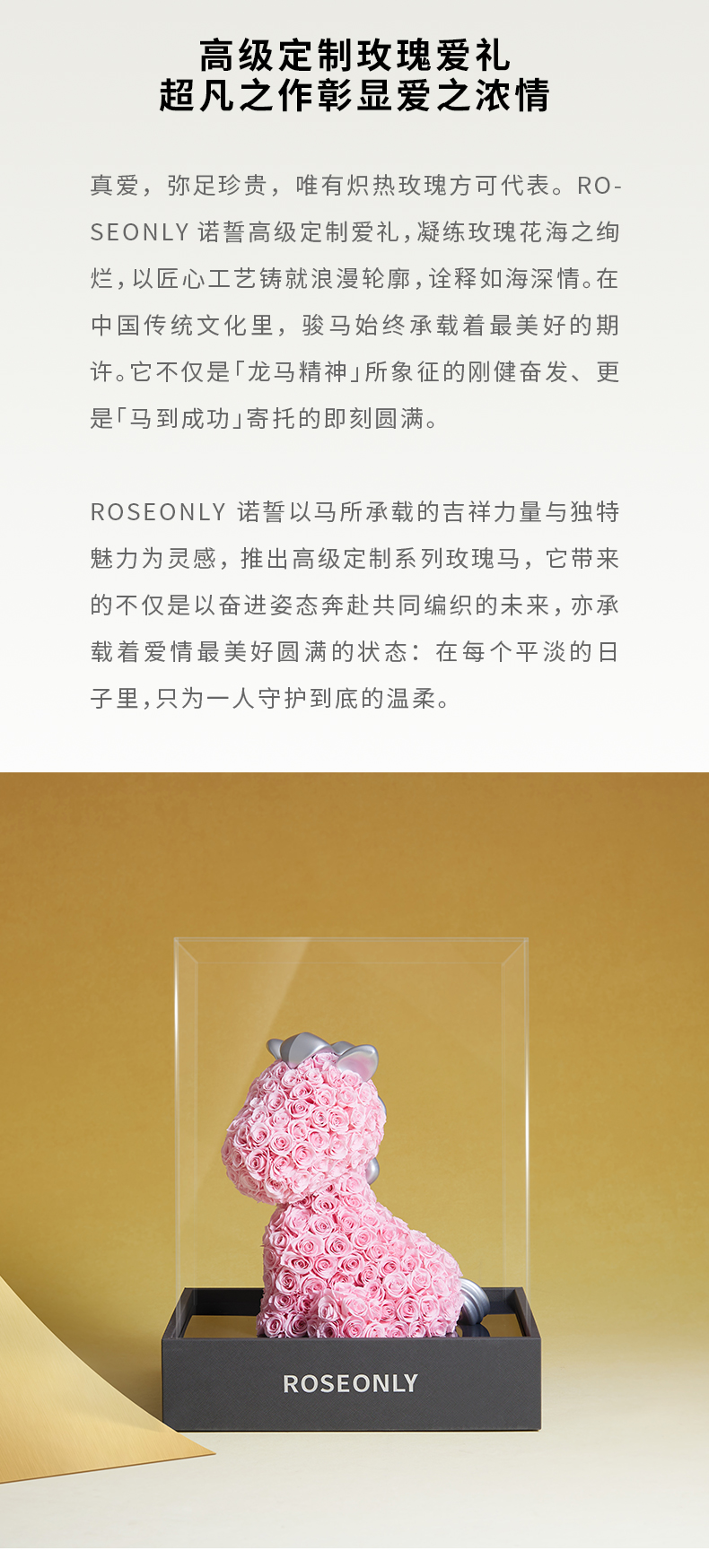 【马年爱礼】ROSEONLY诺誓 高端定制 永生玫瑰 玫瑰公仔 玫瑰马 30cm 定制款 送女友爱人礼物