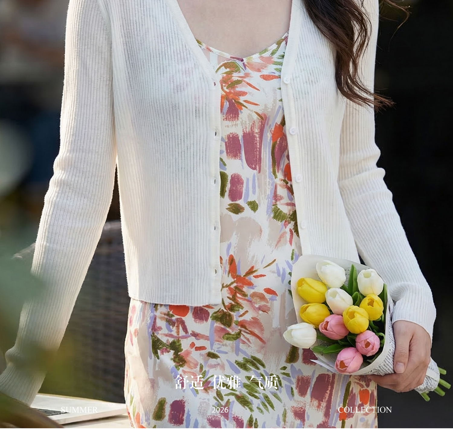 米思阳2026春夏新款镂空薄款亚麻针织防晒开衫外套女配吊带外搭短款上衣1109/1150