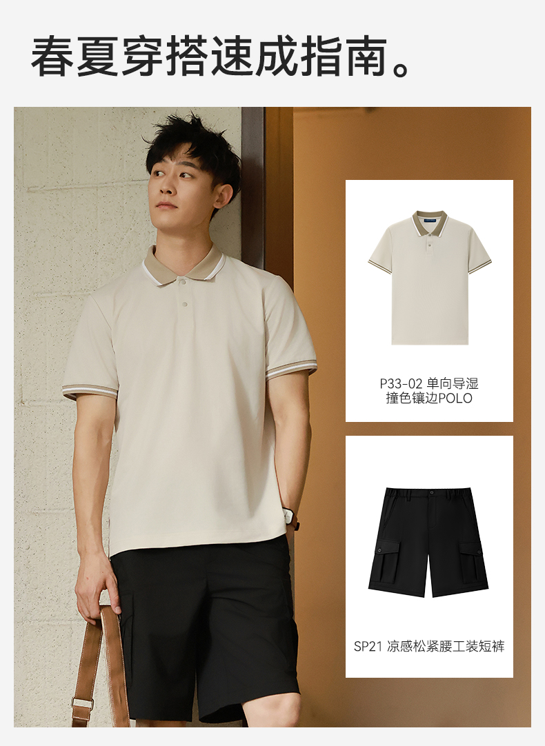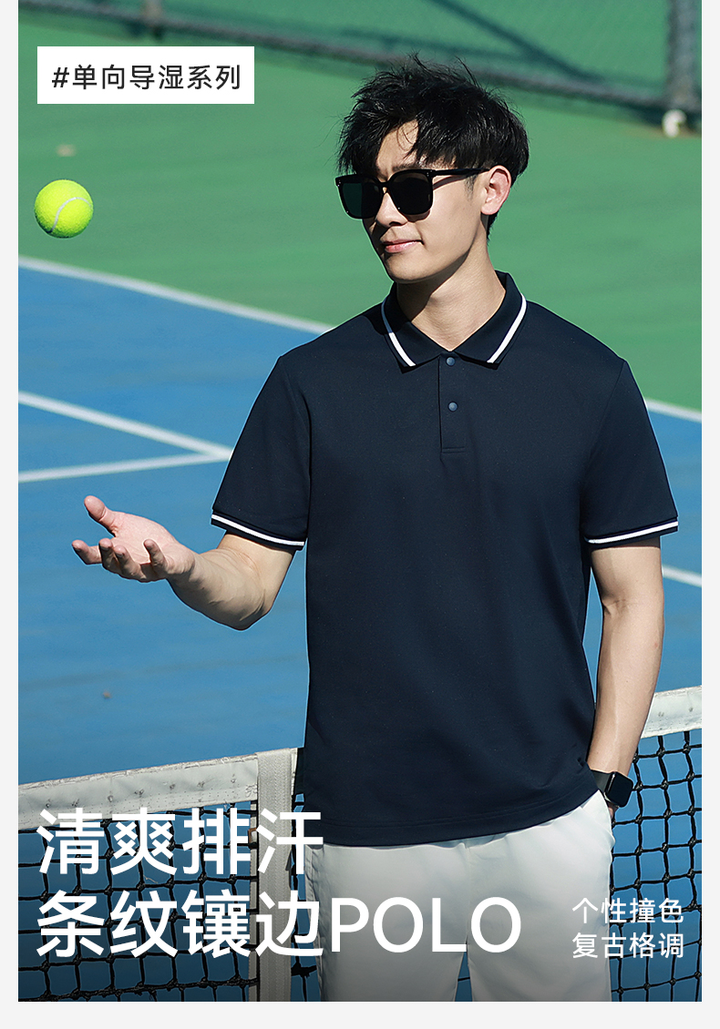 十如仕专柜同款单向导湿polo衫男士半袖简约翻领运动百搭-P33-02