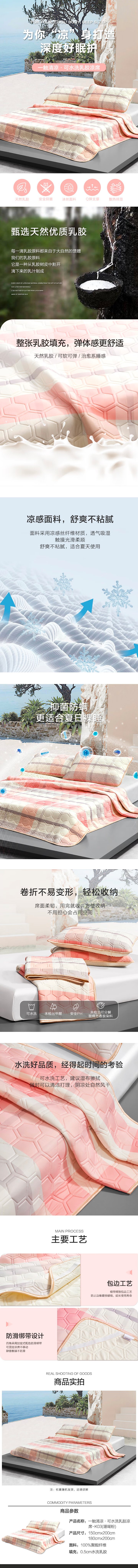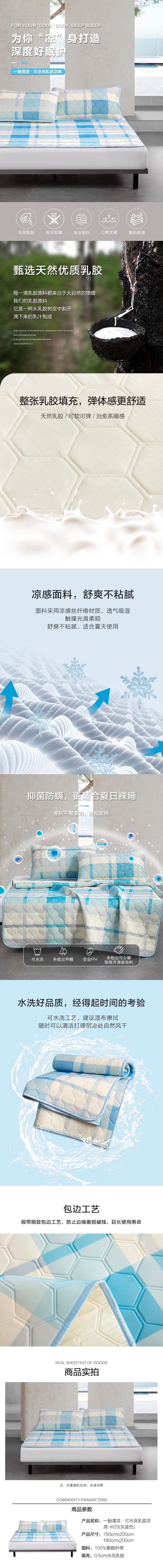 水星家纺一触清凉·可水洗·乳胶凉席三件套
