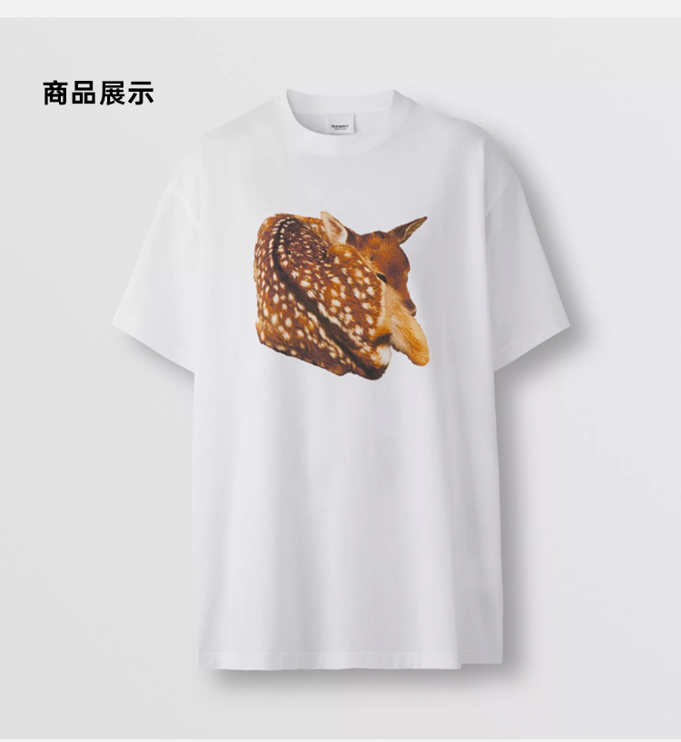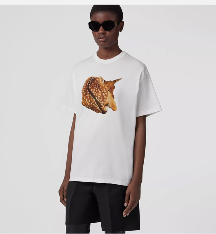 BURBERRY 巴宝莉 女士小鹿印花棉质宽松圆领短袖T恤 白色 8056043 A1464