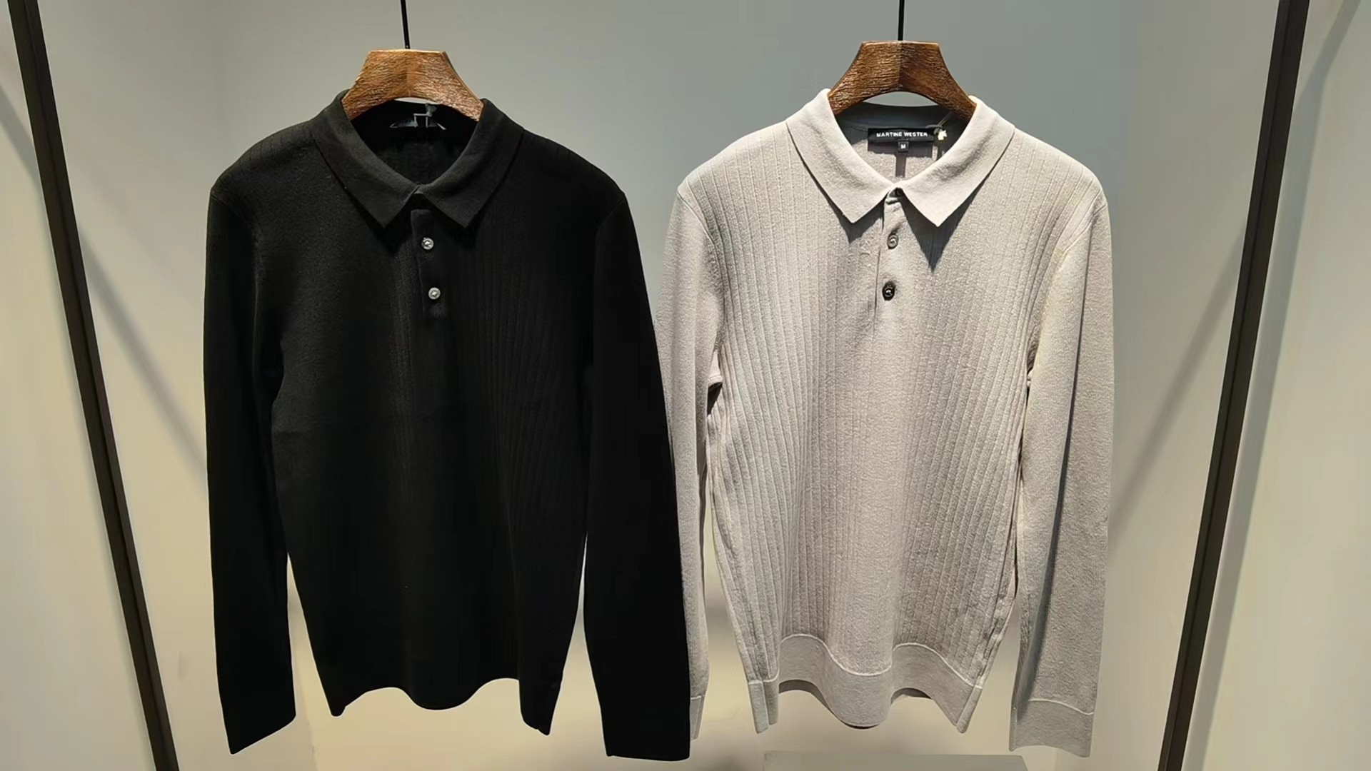 纯原Martine Wester 男士羊绒,棉混纺长袖翻领针织POLO男士商务休闲 款号11053023