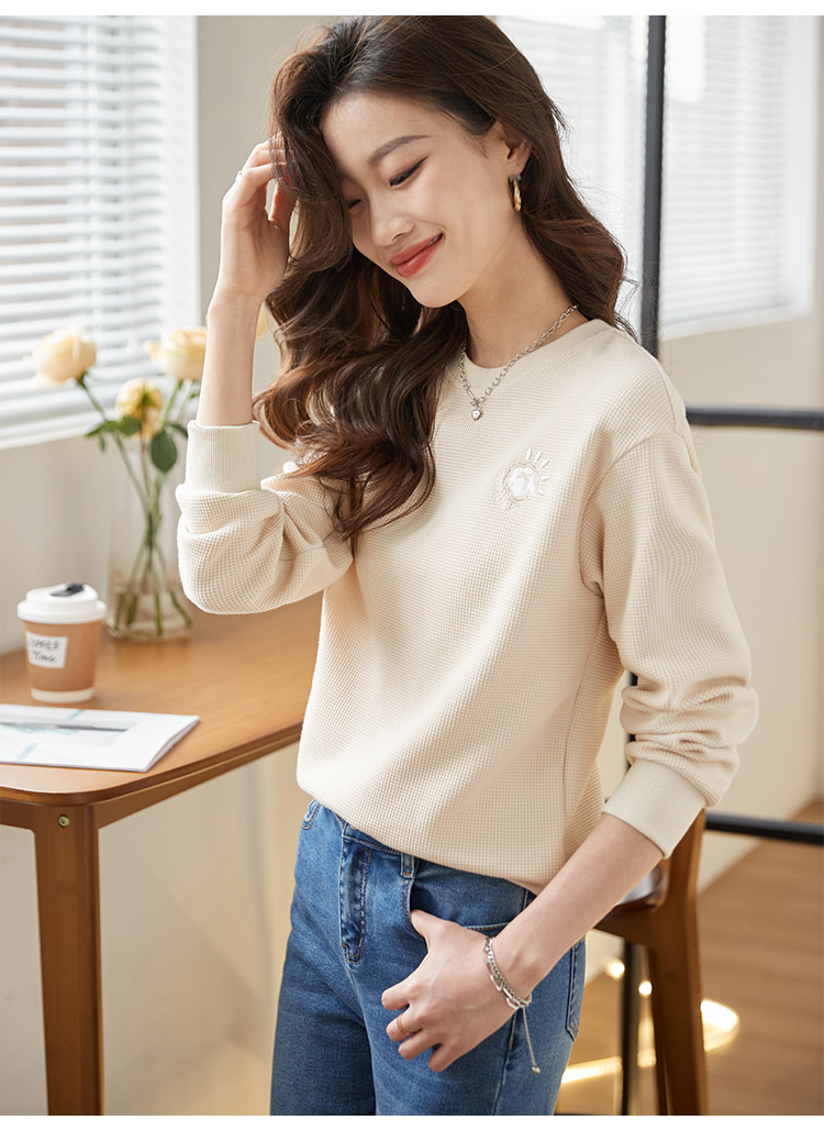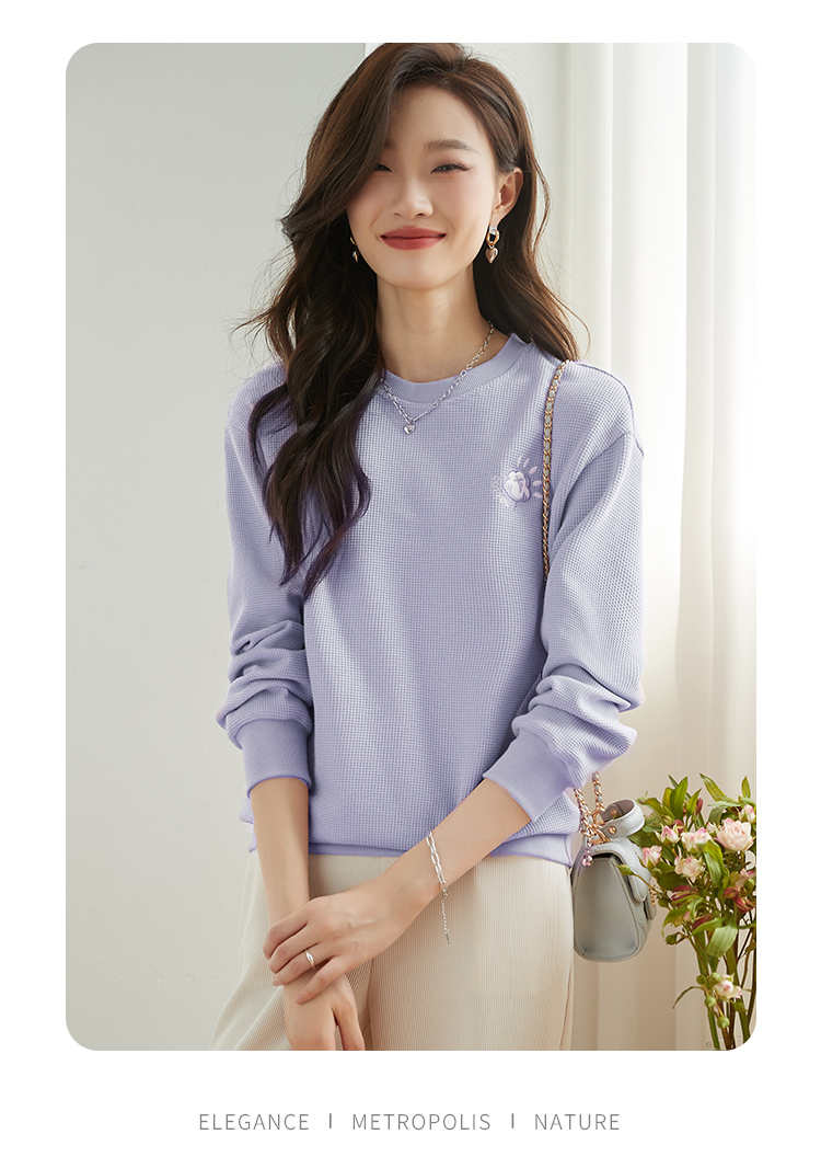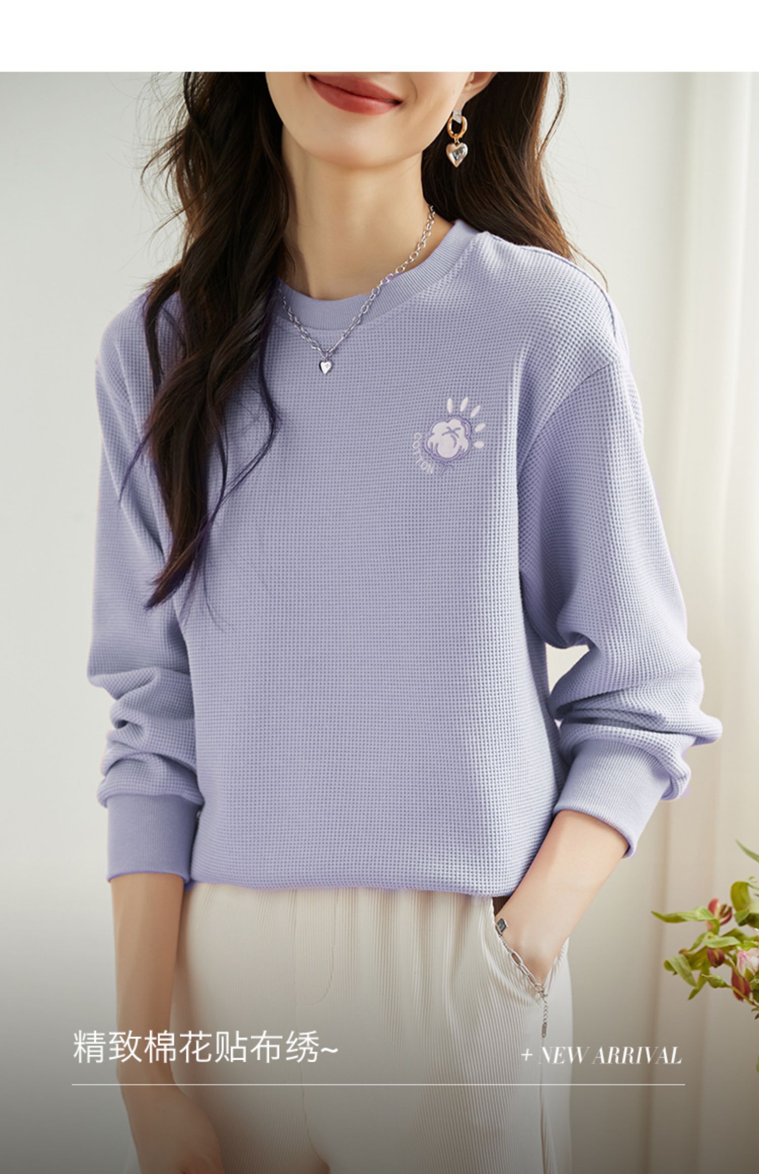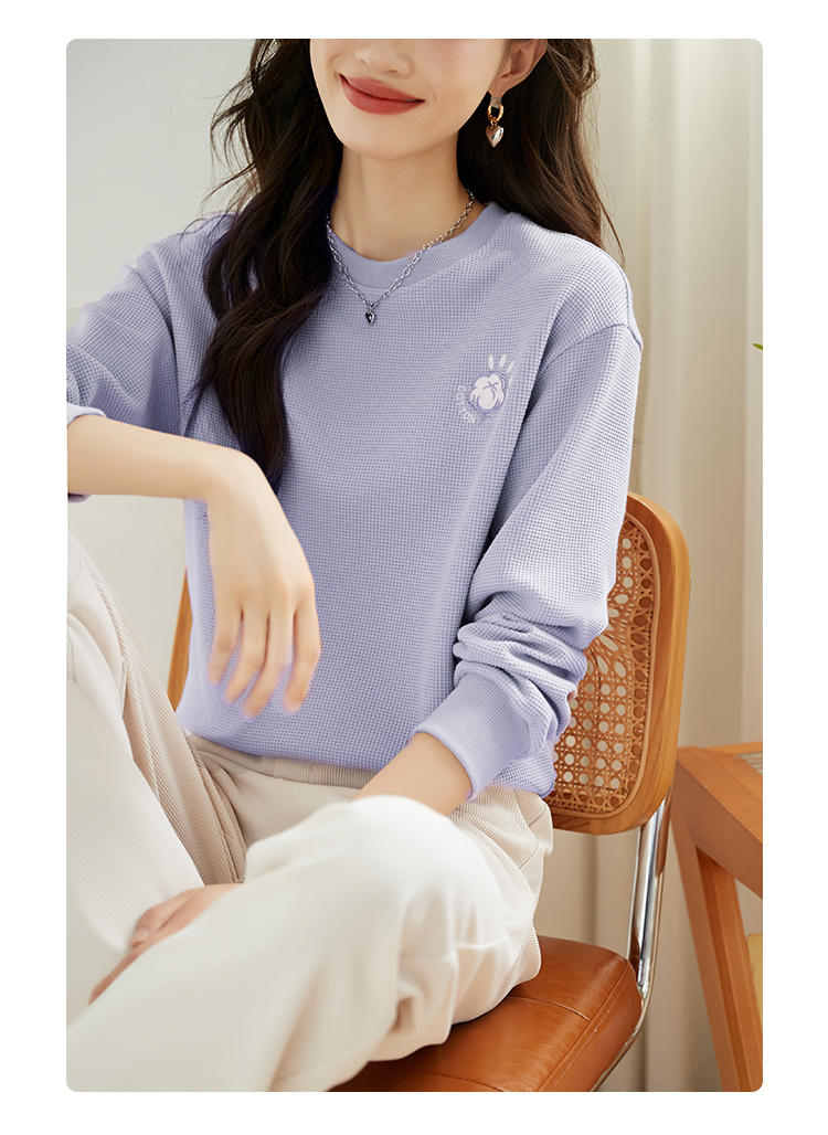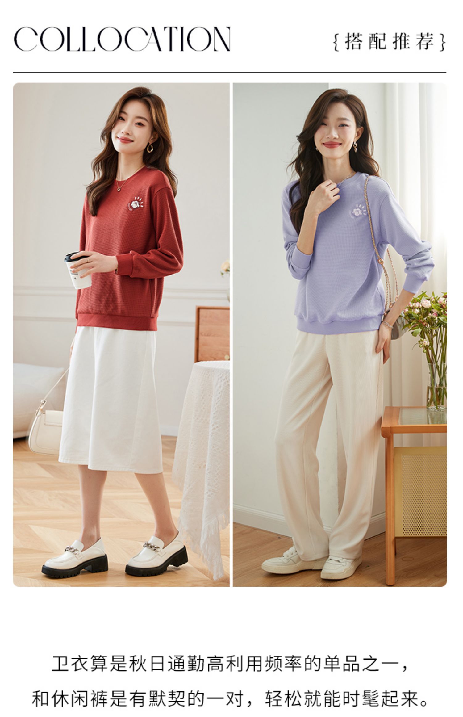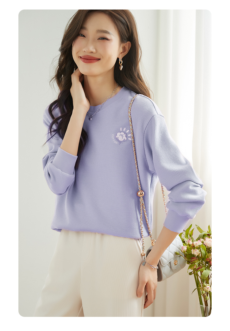 【年终特卖】熙世界华夫格卫衣女宽松休闲减龄小个子无帽圆领上衣2025秋新款