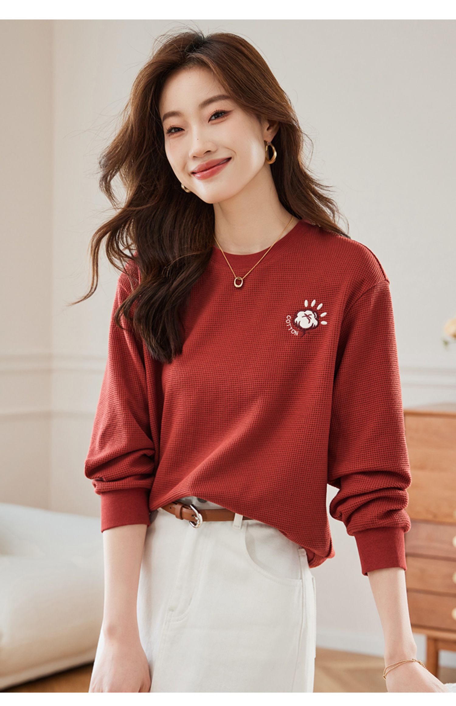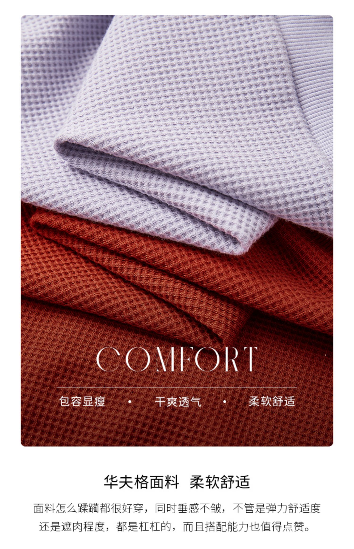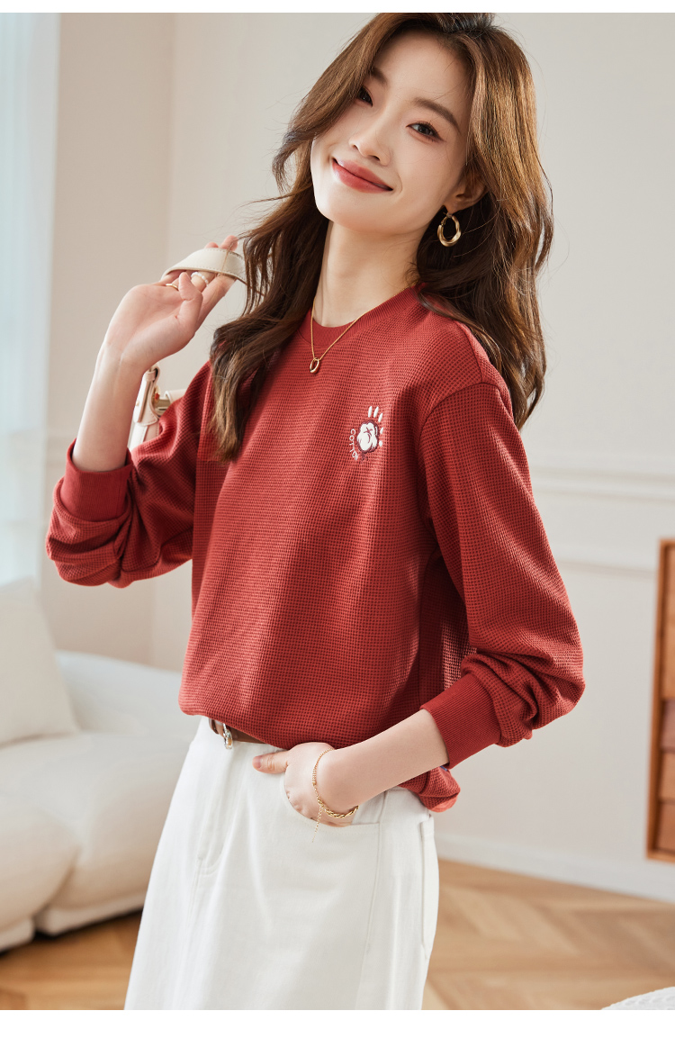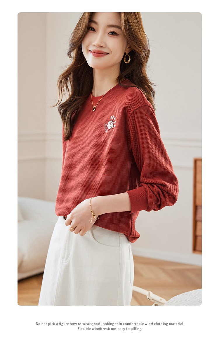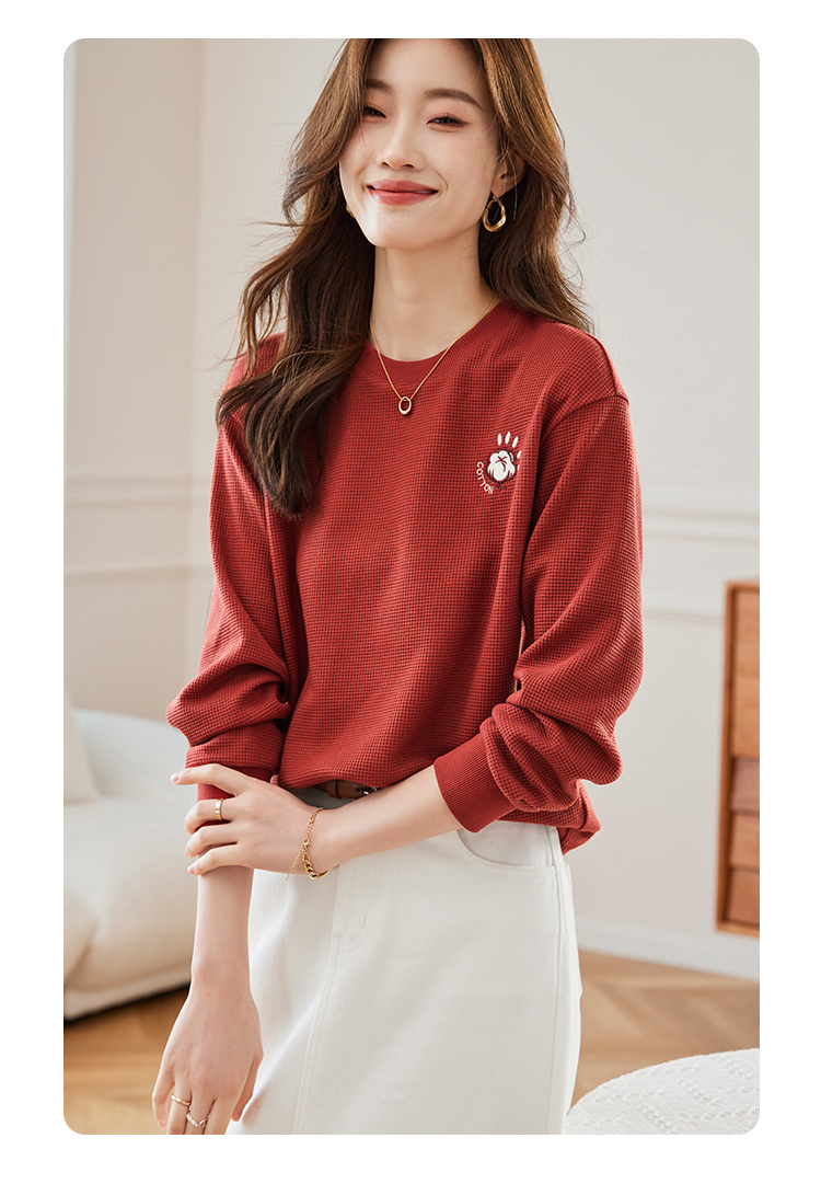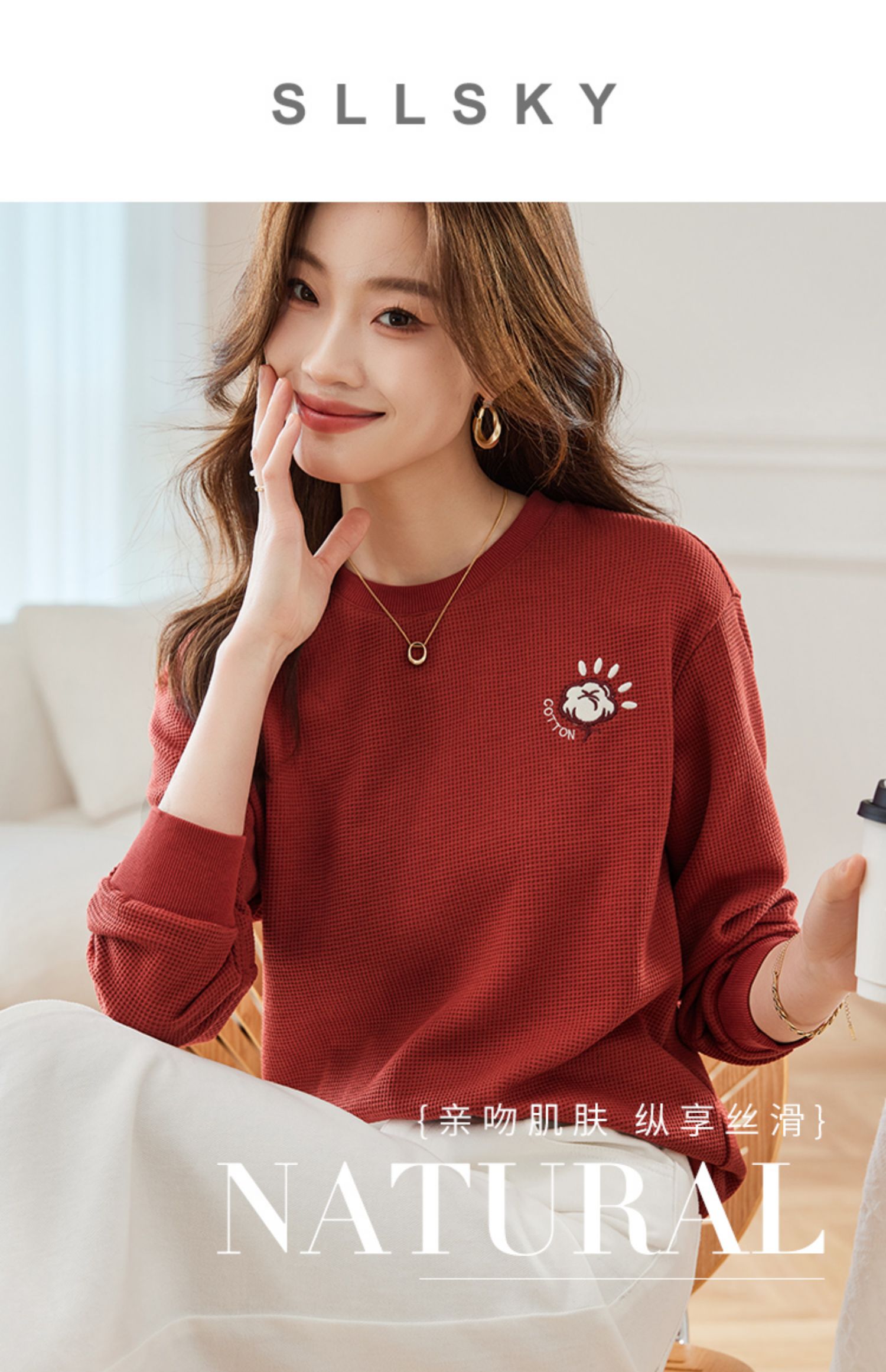 【年终特卖】熙世界华夫格卫衣女宽松休闲减龄小个子无帽圆领上衣2025秋新款