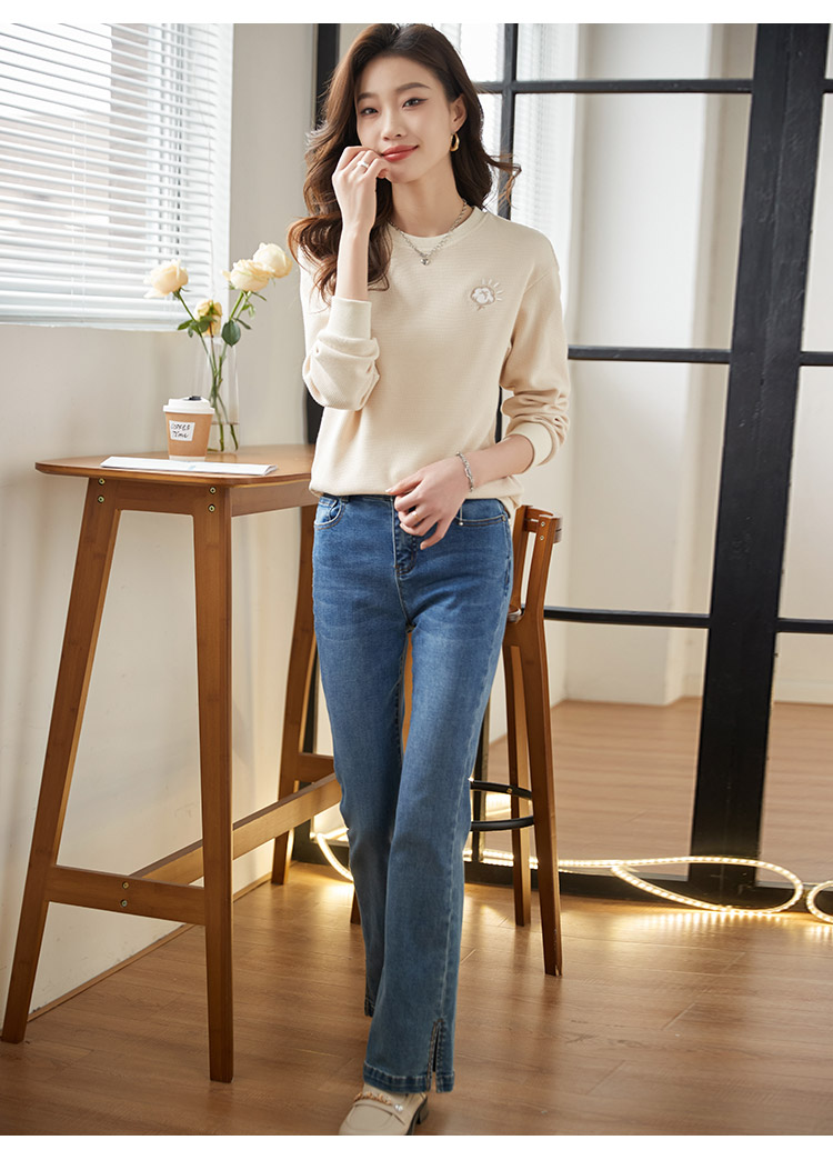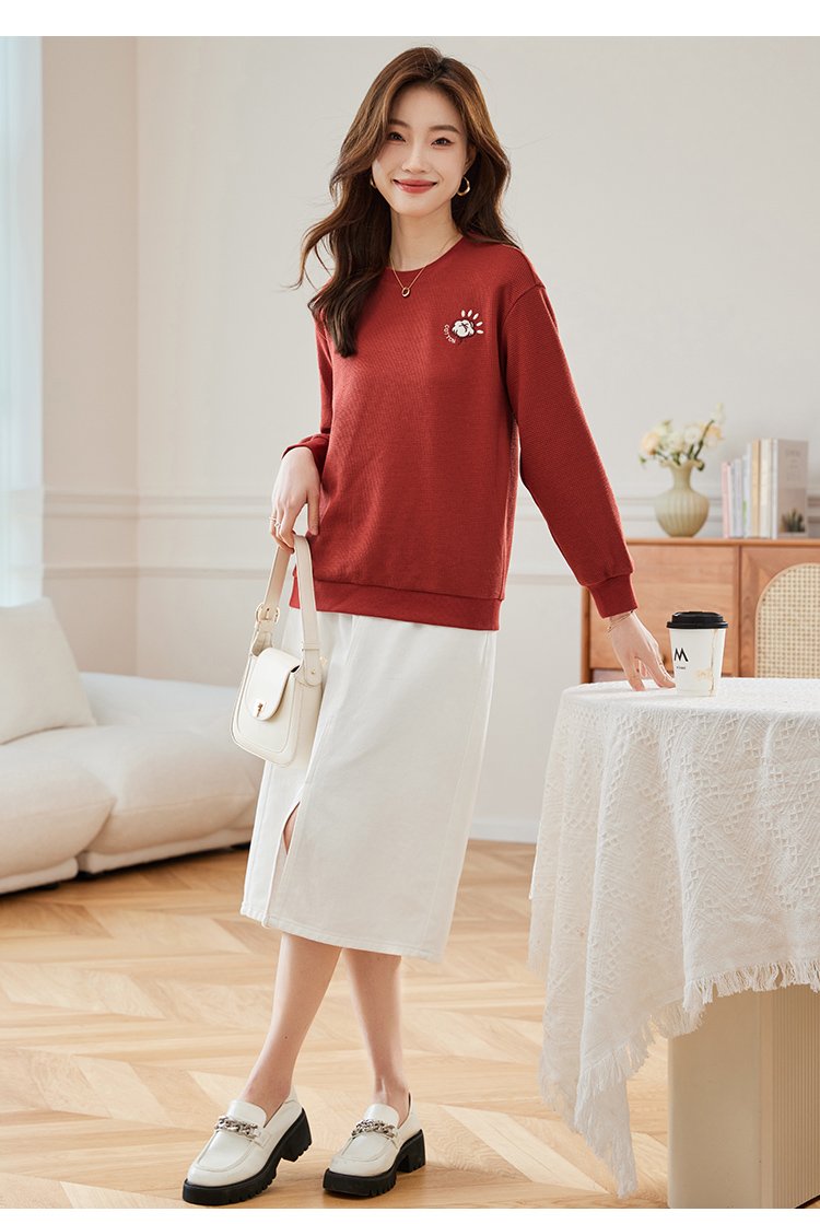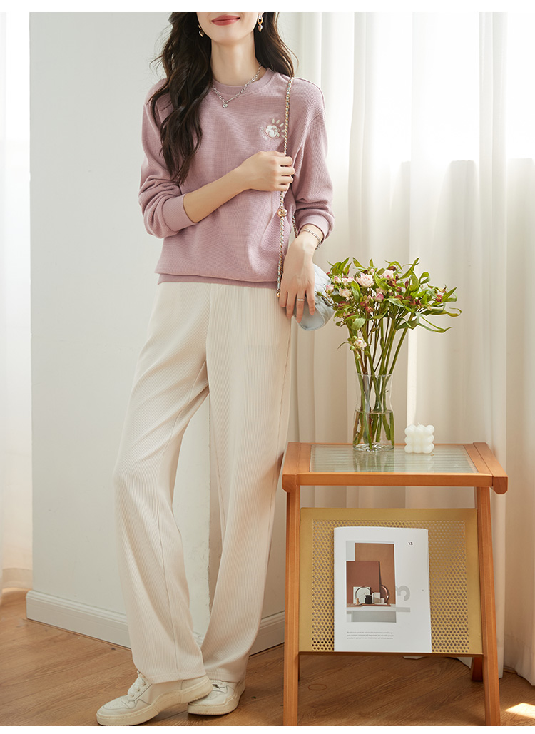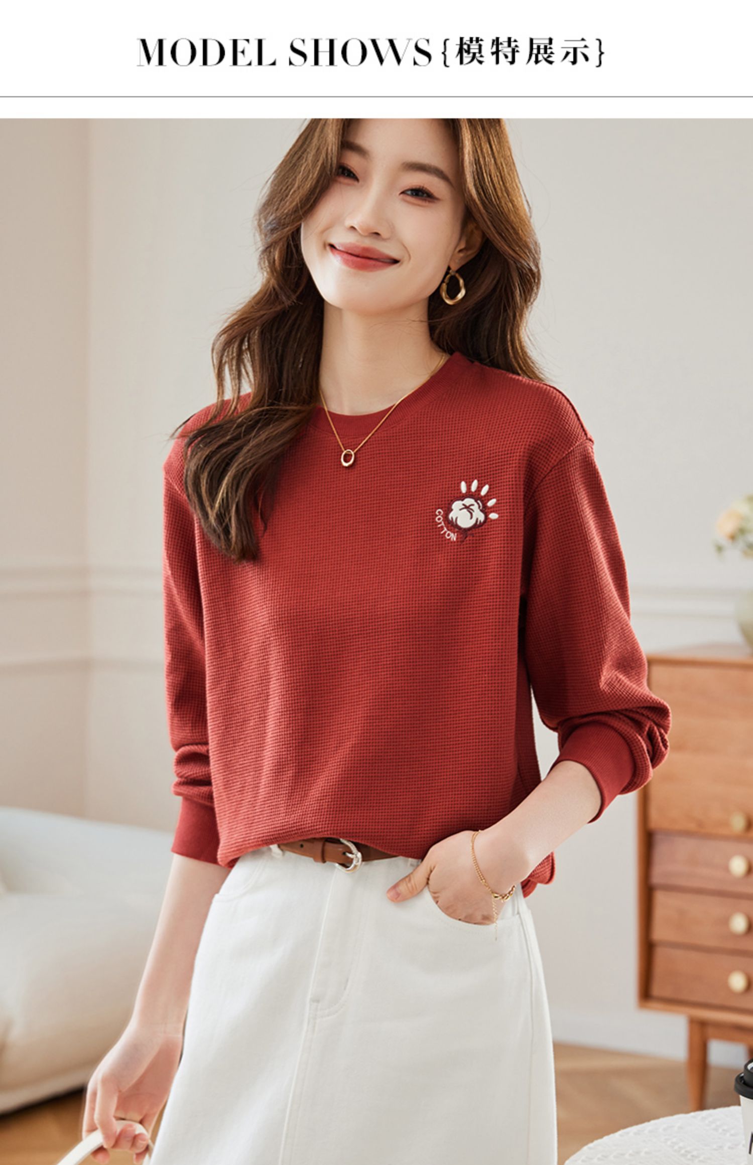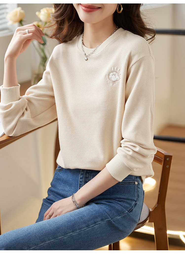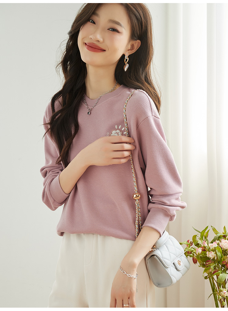 【年终特卖】熙世界华夫格卫衣女宽松休闲减龄小个子无帽圆领上衣2025秋新款