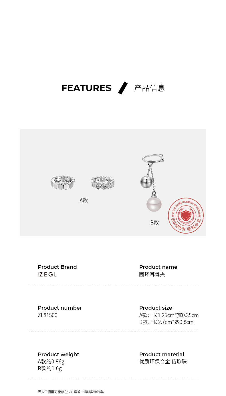 ZENGLIU复古耳夹耳骨夹无耳洞耳钉女简约冷淡风耳环高级感耳饰品