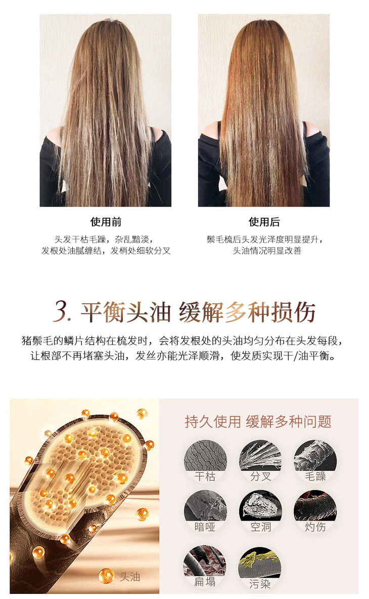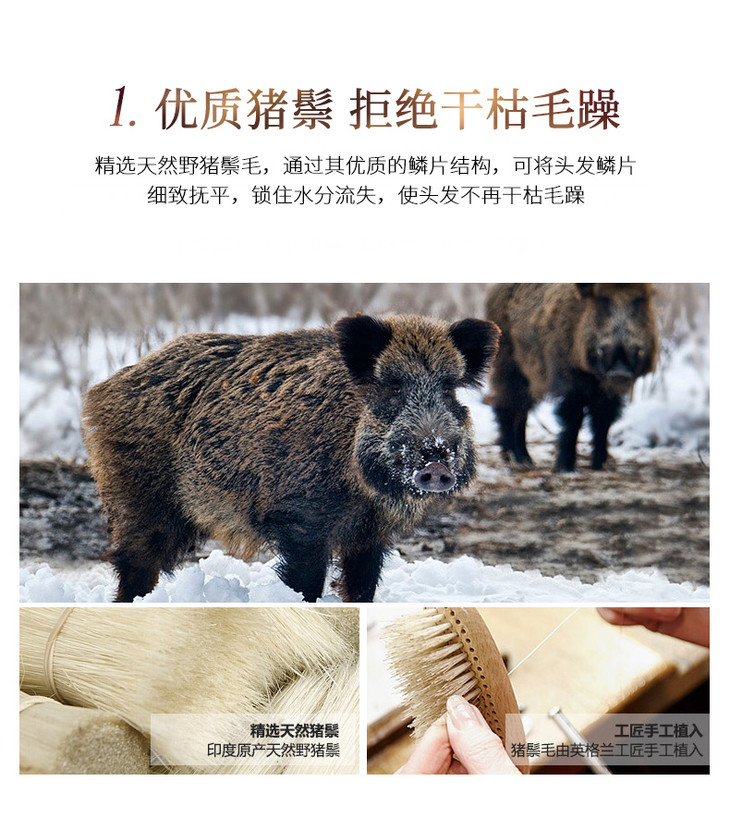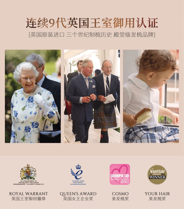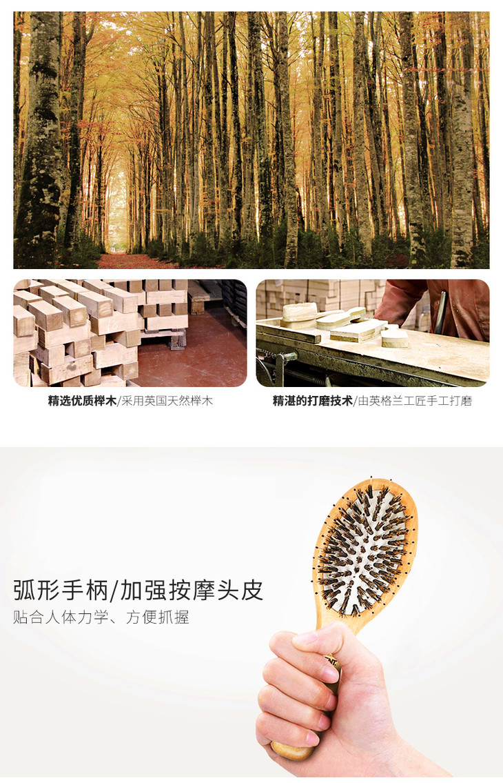 英国进口肯特KENT猪鬃梳子女气垫气囊按摩梳家用防静电鬃毛顺发梳PF02