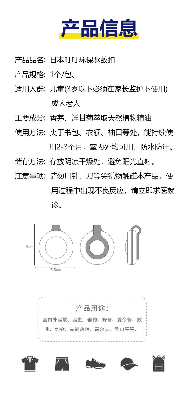 日本叮叮 卡通蚊香驱蚊扣(婴幼儿可用)