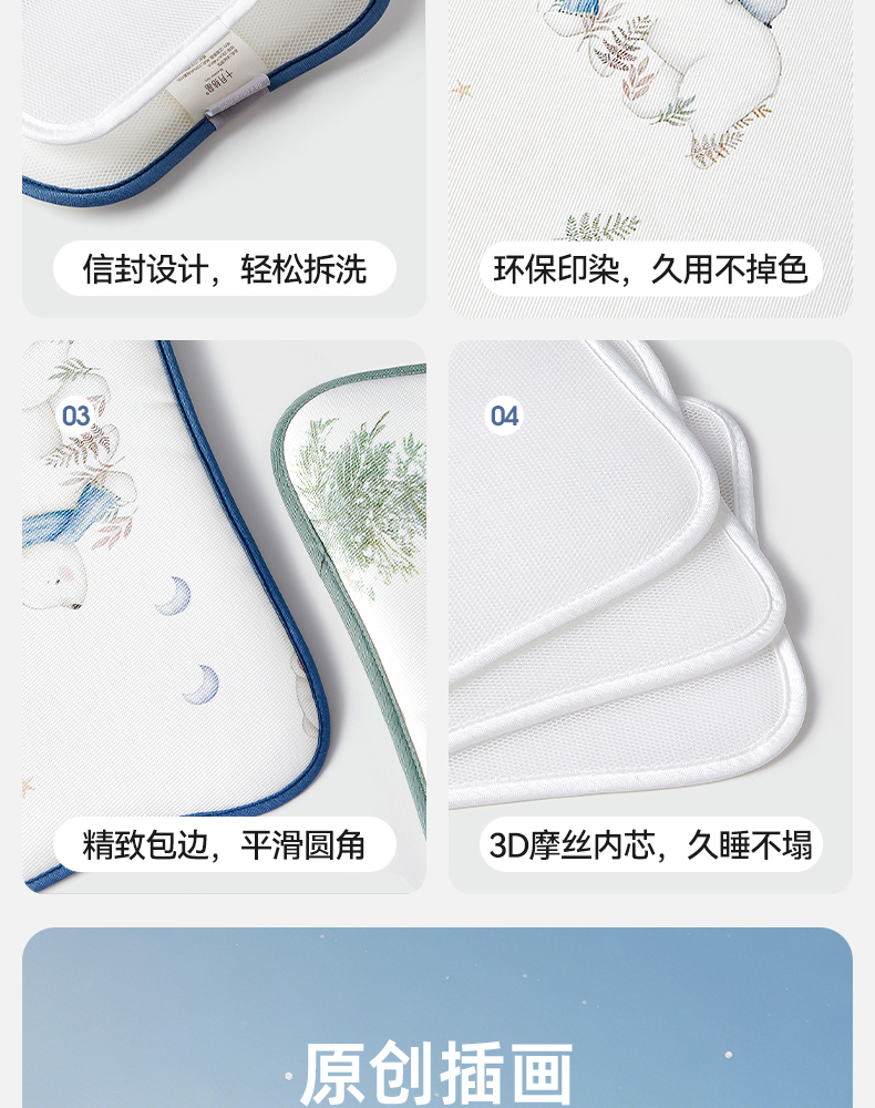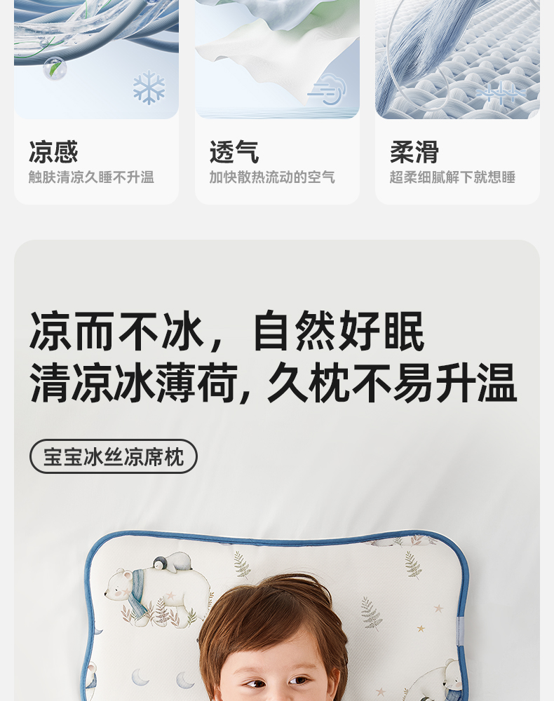 【满200减100】婴儿枕头夏季冰丝透气凉爽防多汗新生儿云片宝宝专用儿童