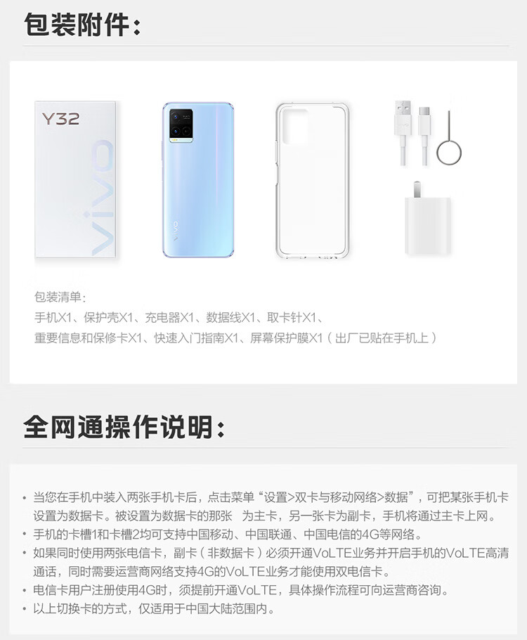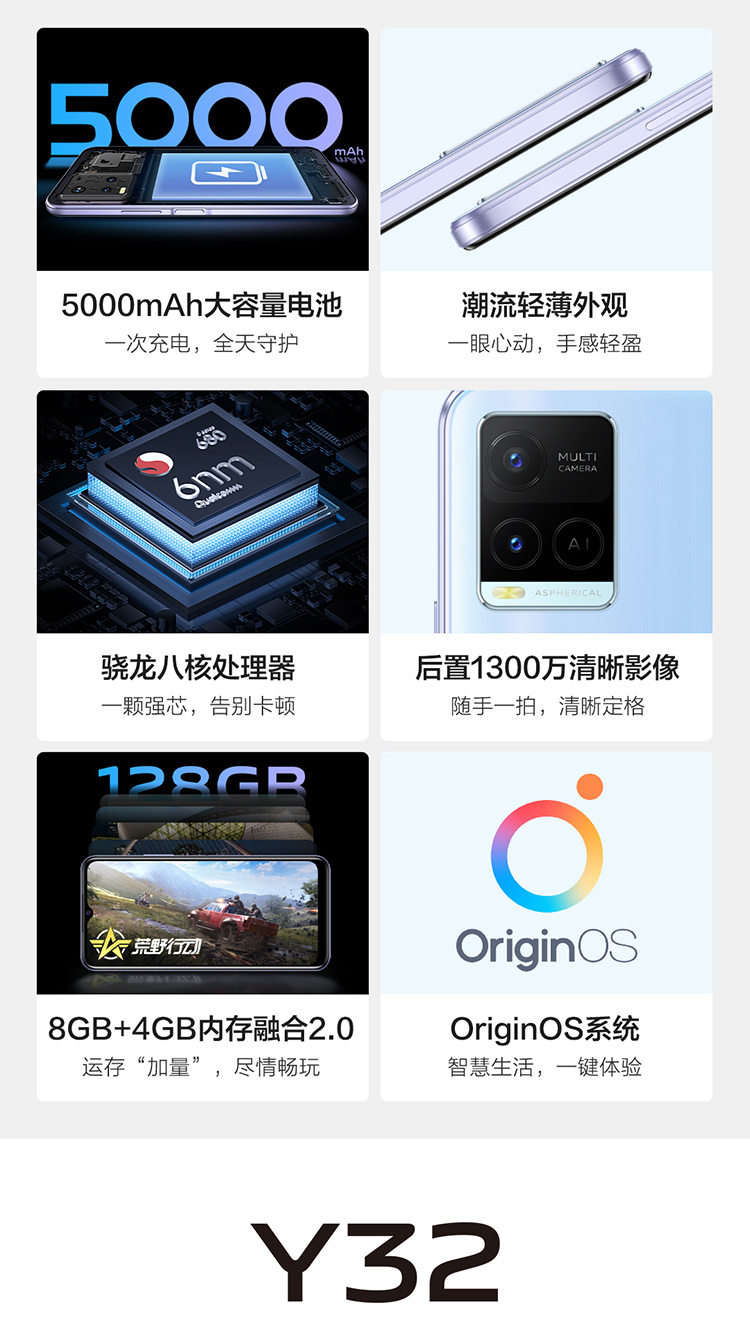 【vivo】Y32 新品手机 8GB+4GB超大运存,高通骁龙6nm芯片,5000mAh大电池 晴海蓝 8GB 128GB