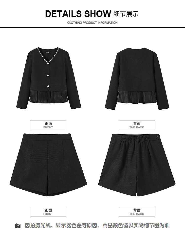 奢姿大码女装2025秋季胖妹妹时尚减龄花朵扣饰拼接设计V领套装