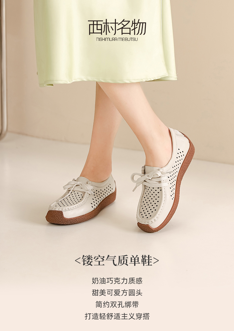 西村名物2023夏季新款真皮镂空单鞋女软底防滑舒适洞洞鞋13331