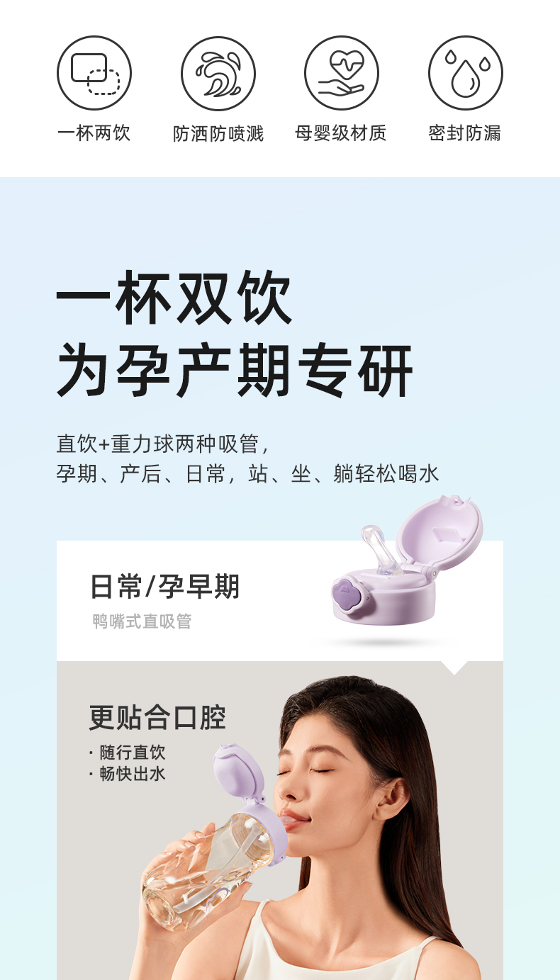 吸管杯孕产妇专用成人刻度水壶ppsu直饮水杯上学儿童水杯