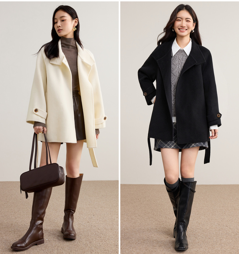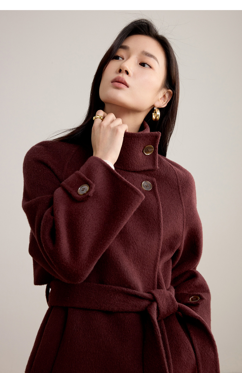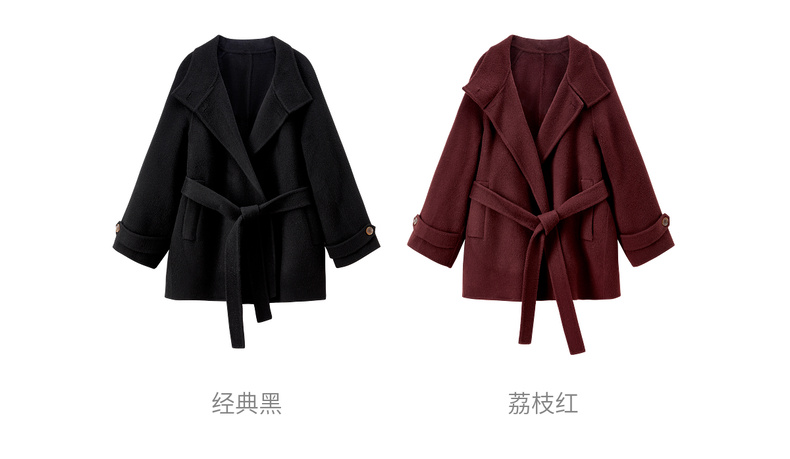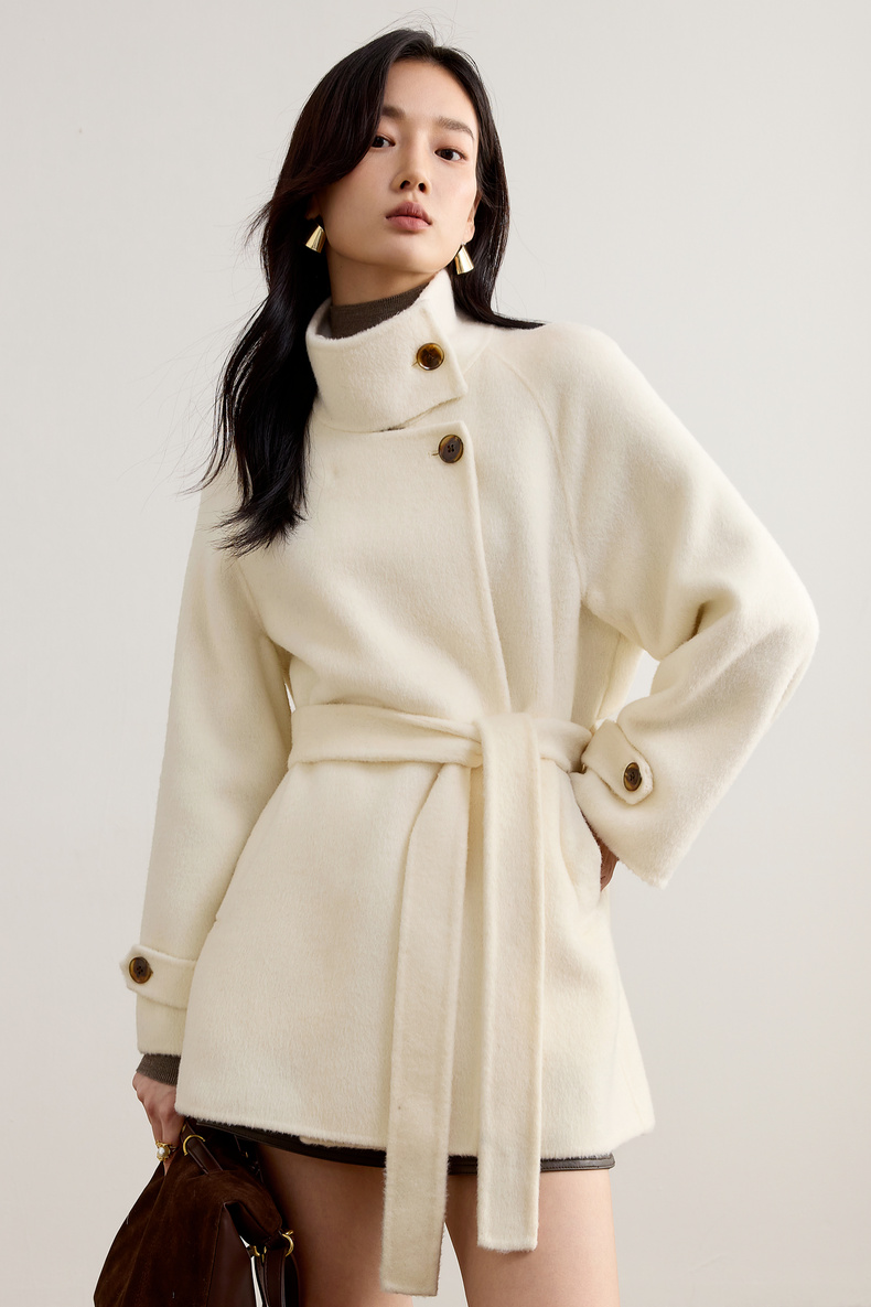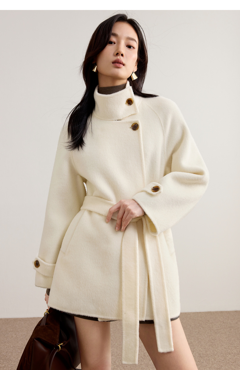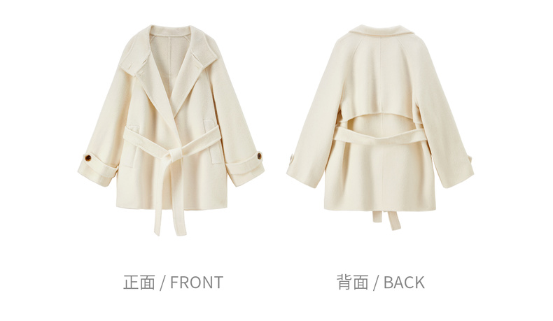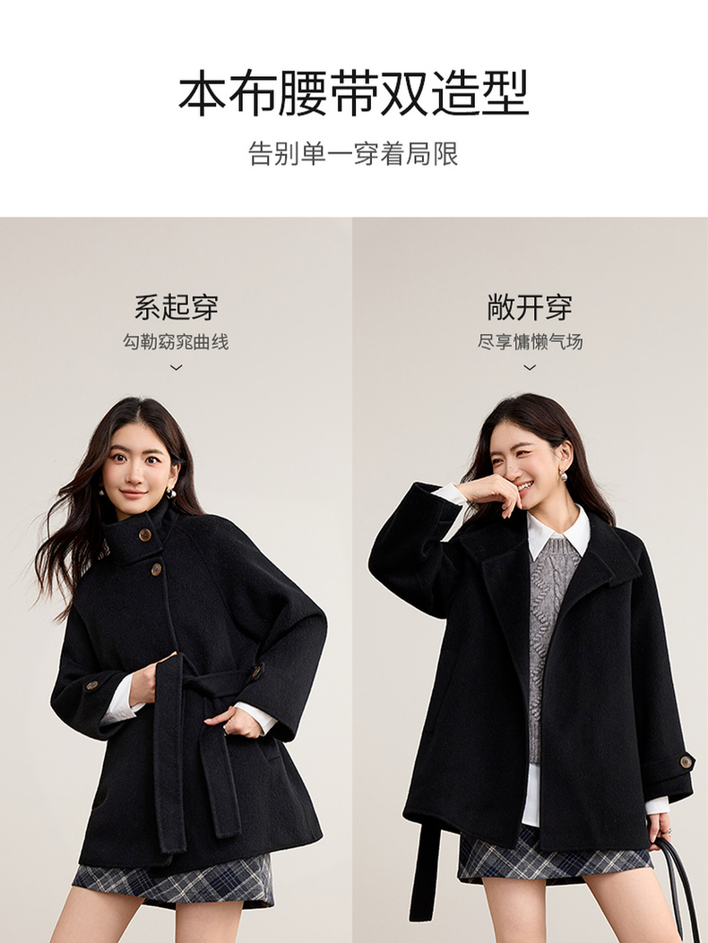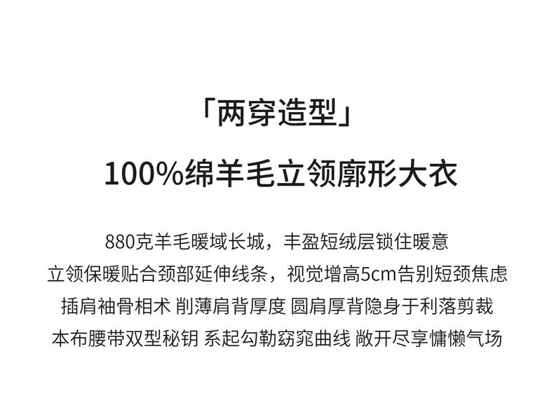 【内购】【本布腰带双穿】880克100%绵羊毛立领宽松插肩袖本布腰带双穿法-W54OG8765