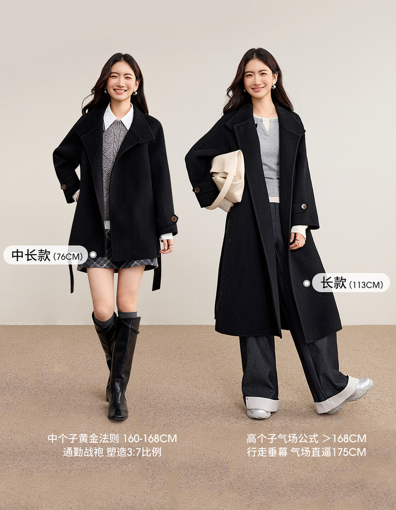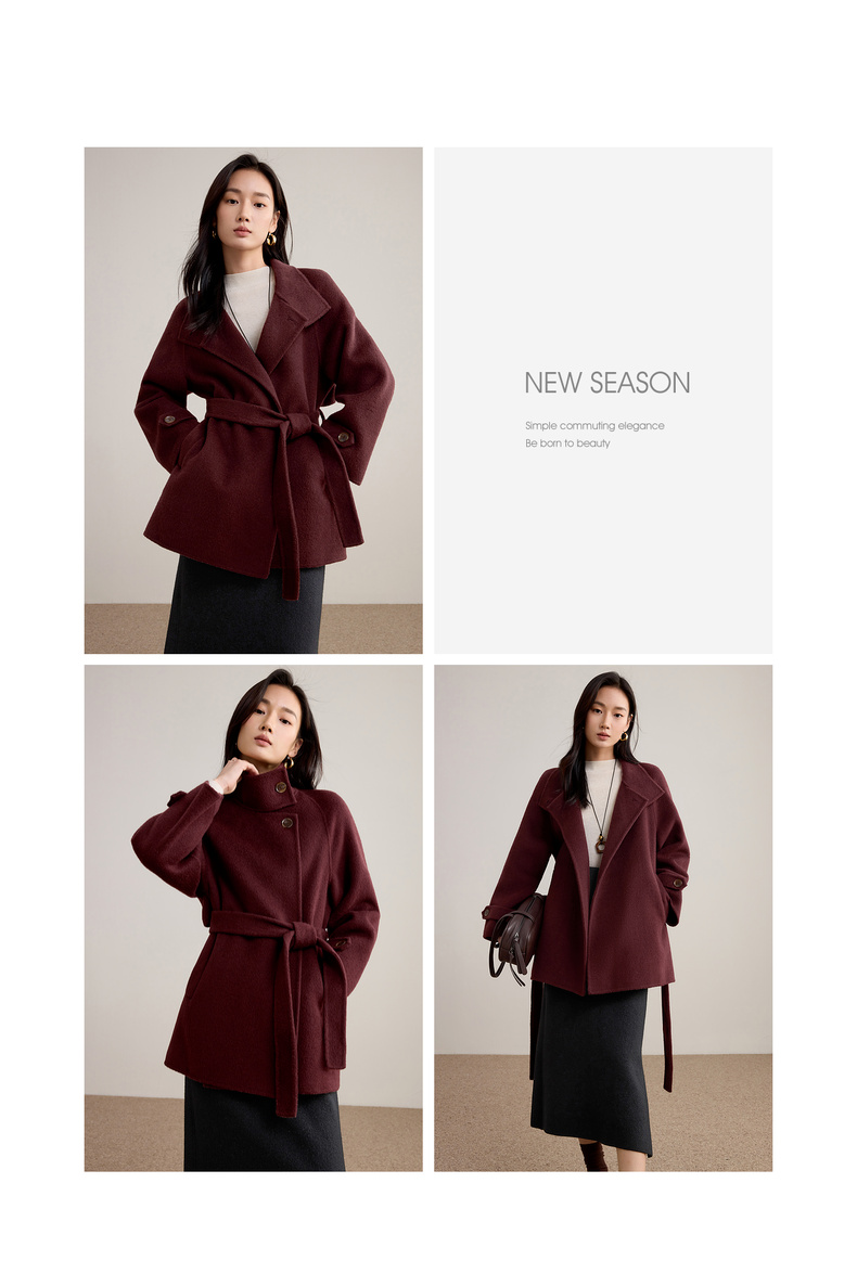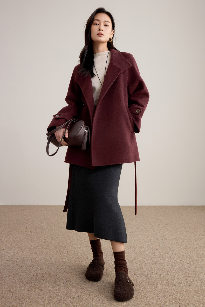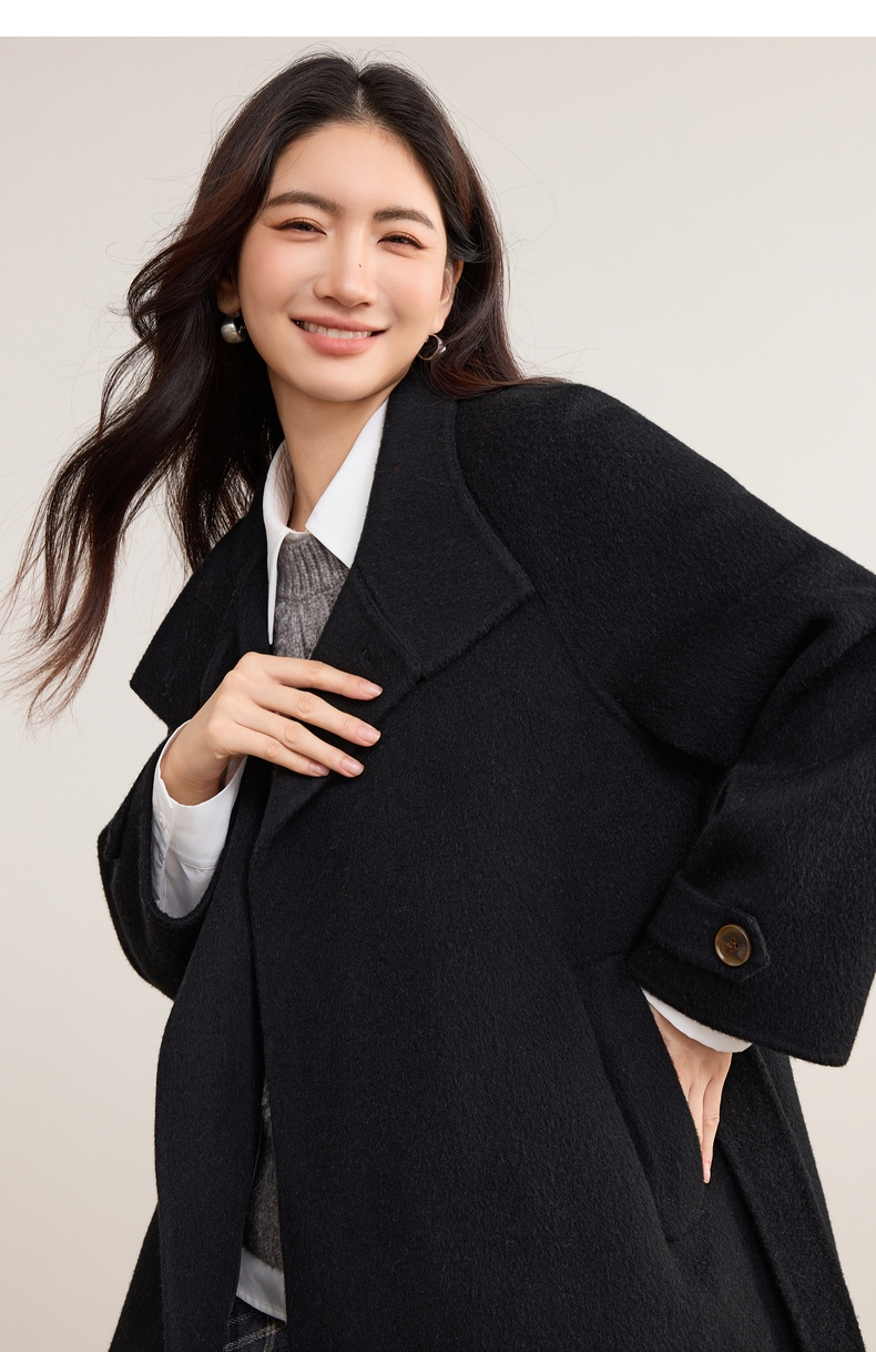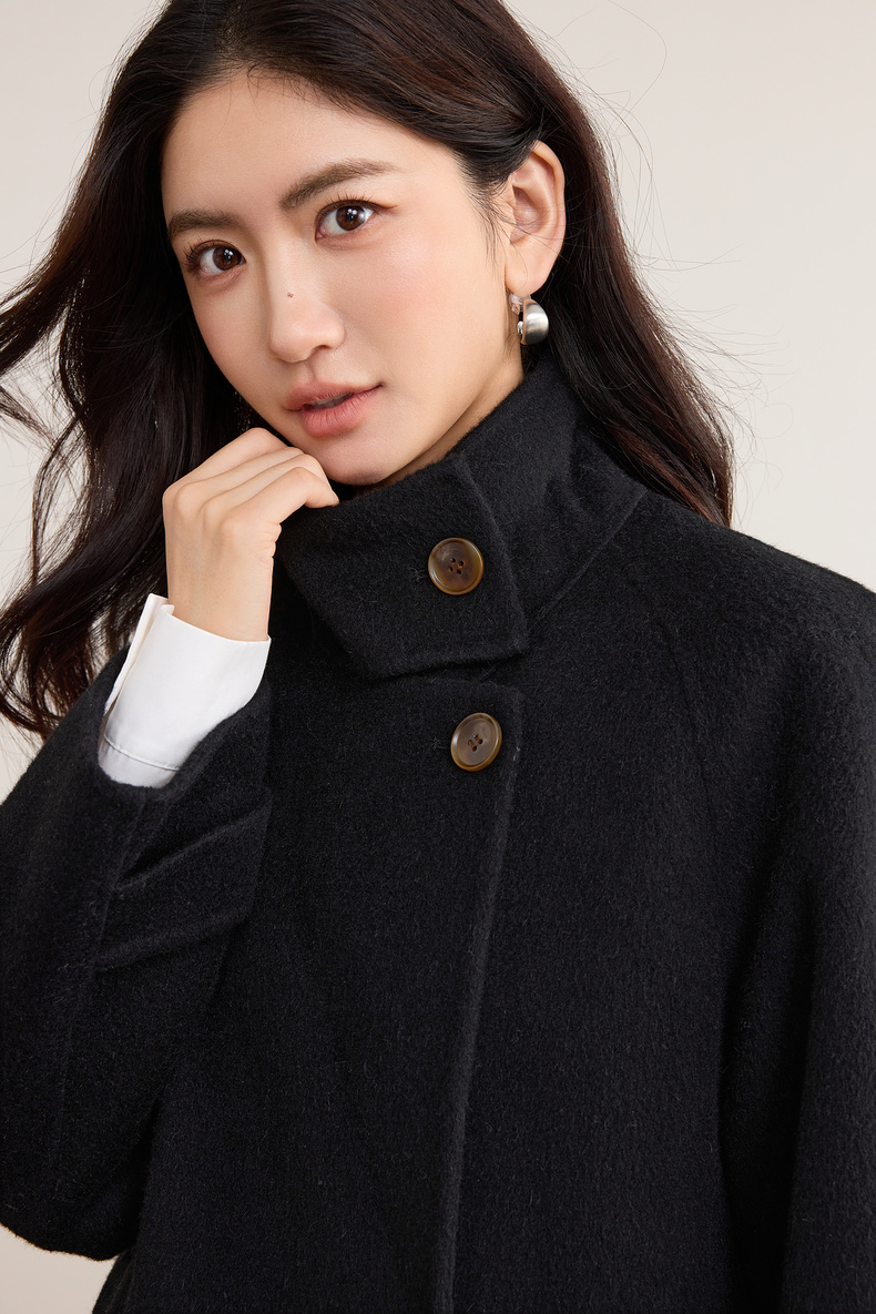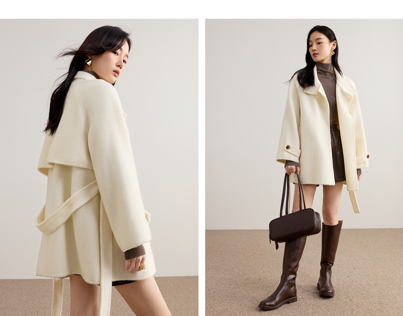 【内购】【本布腰带双穿】880克100%绵羊毛立领宽松插肩袖本布腰带双穿法-W54OG8765