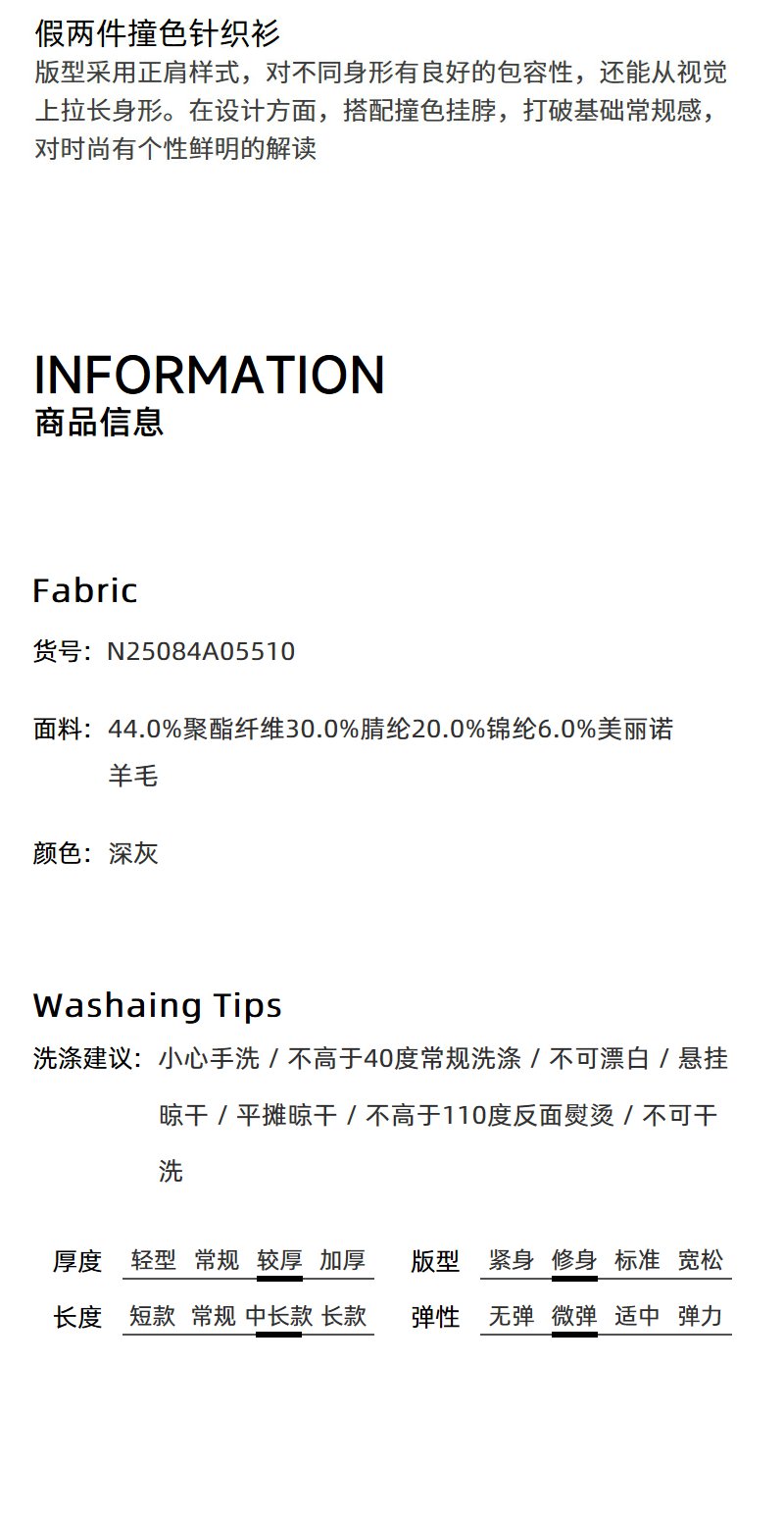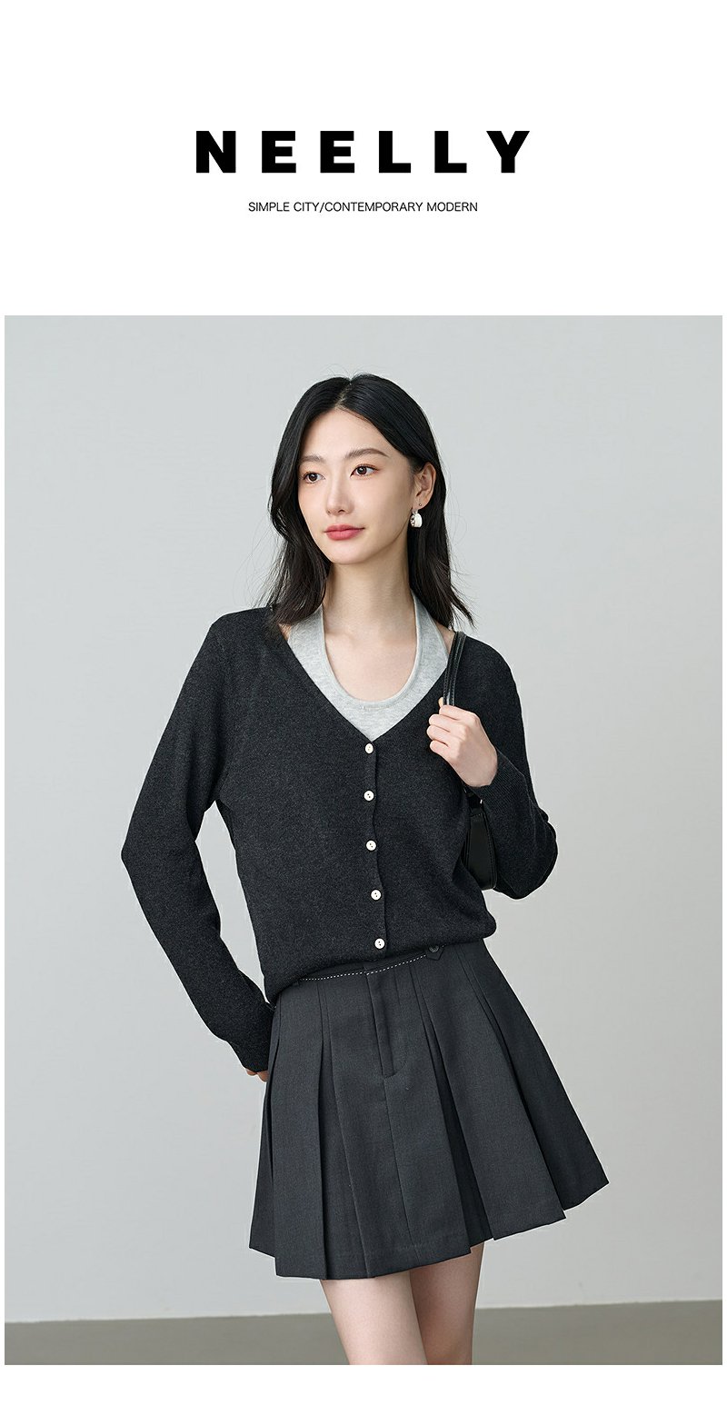 NEELLY纳俪商场同款秋新款设计感假两件挂脖针织衫女休闲百搭上衣N25084A05510