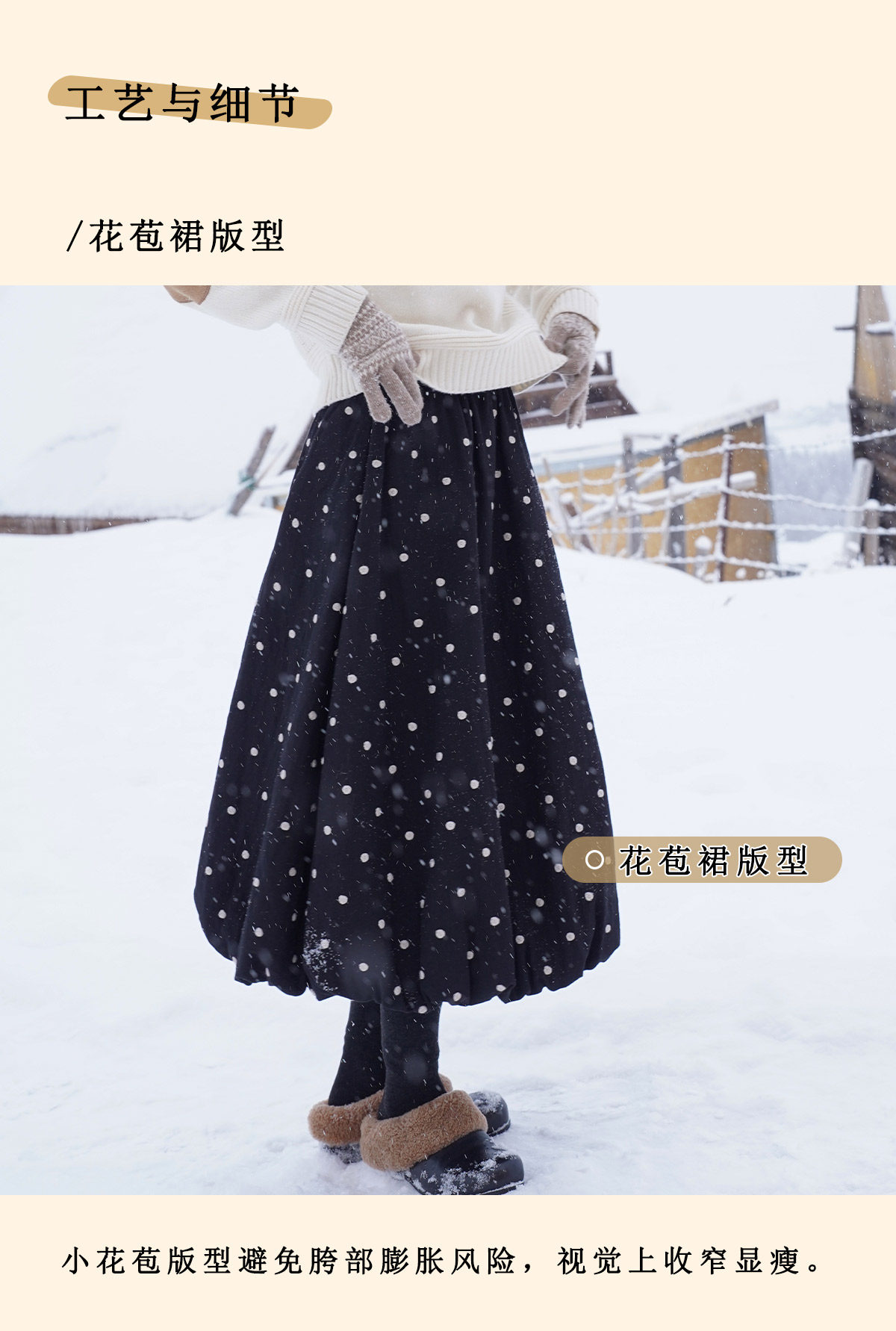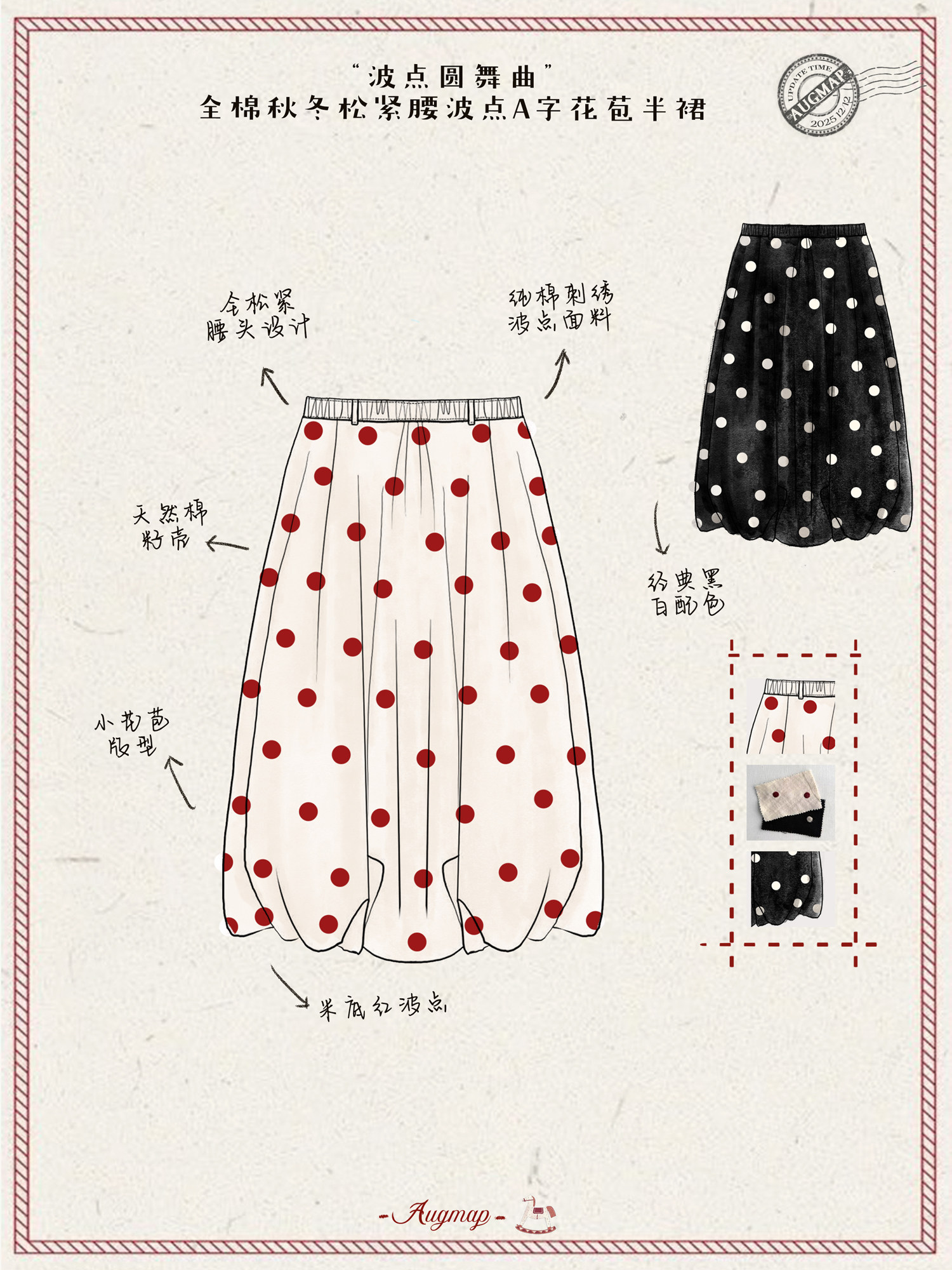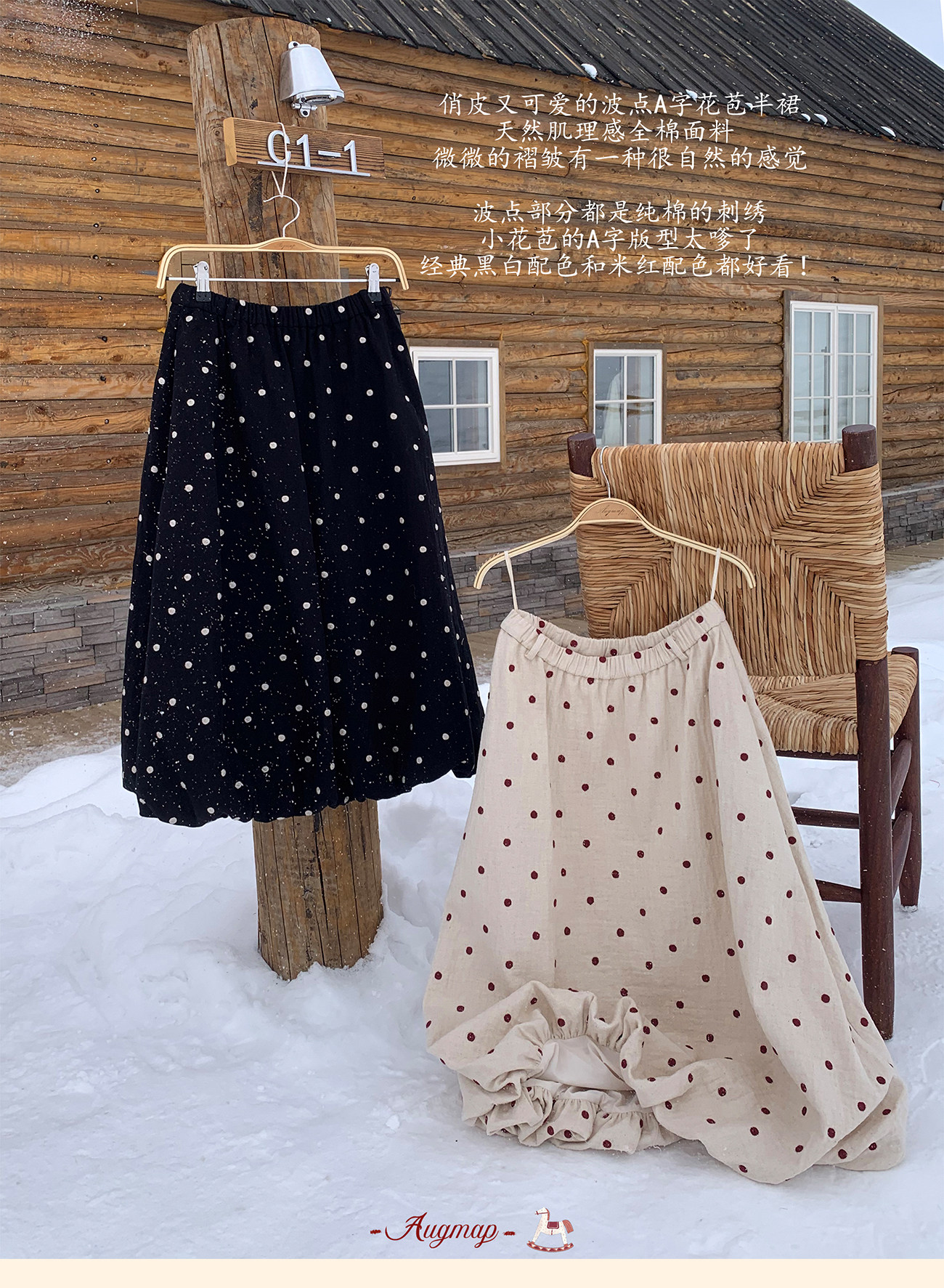 浮生八记/25D271/“波点圆舞曲”全棉秋冬松紧腰波点A字花苞半裙