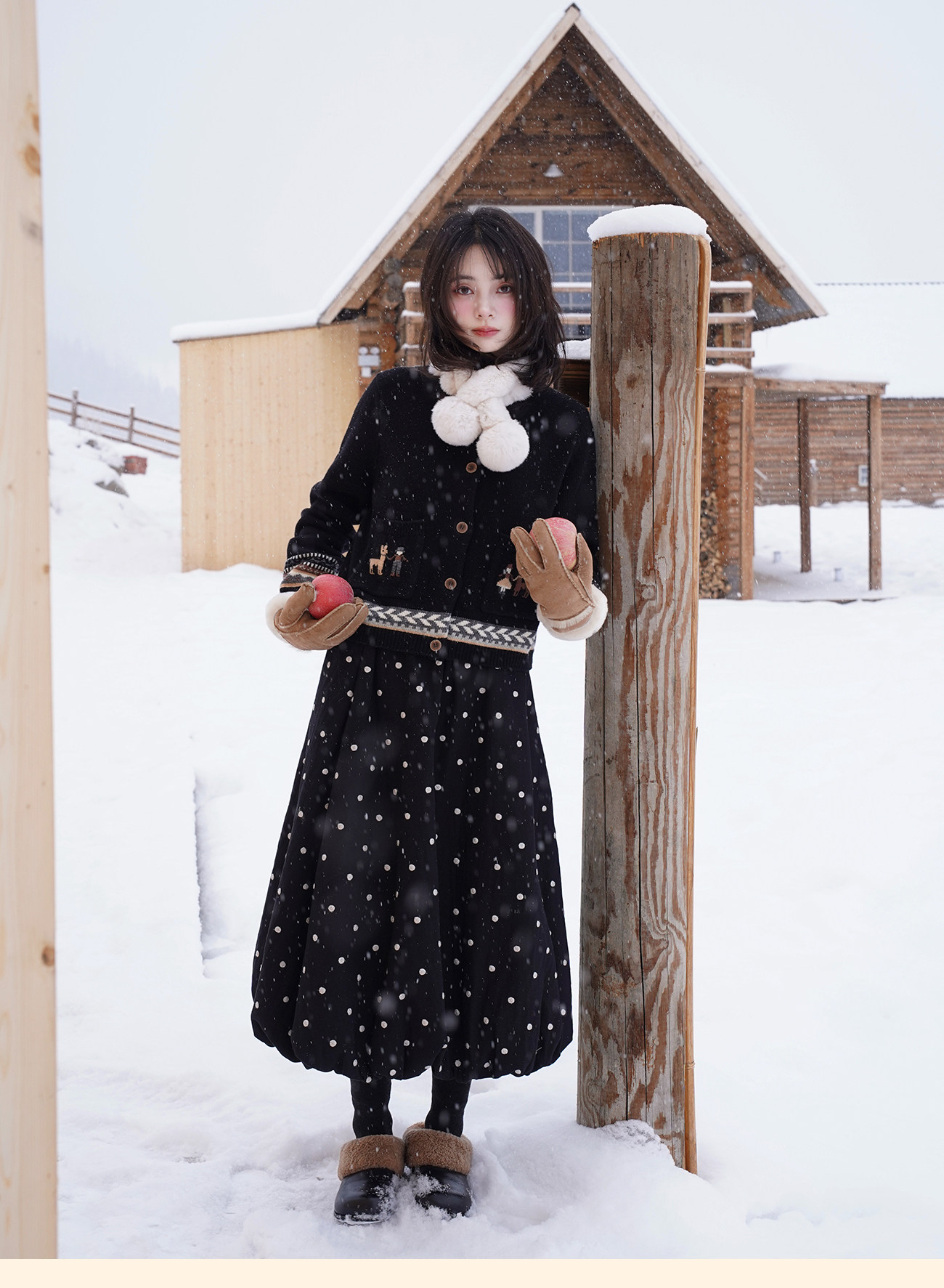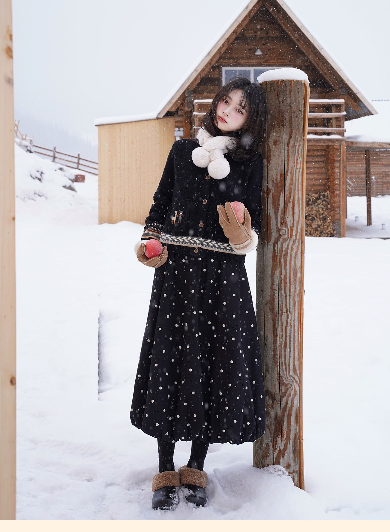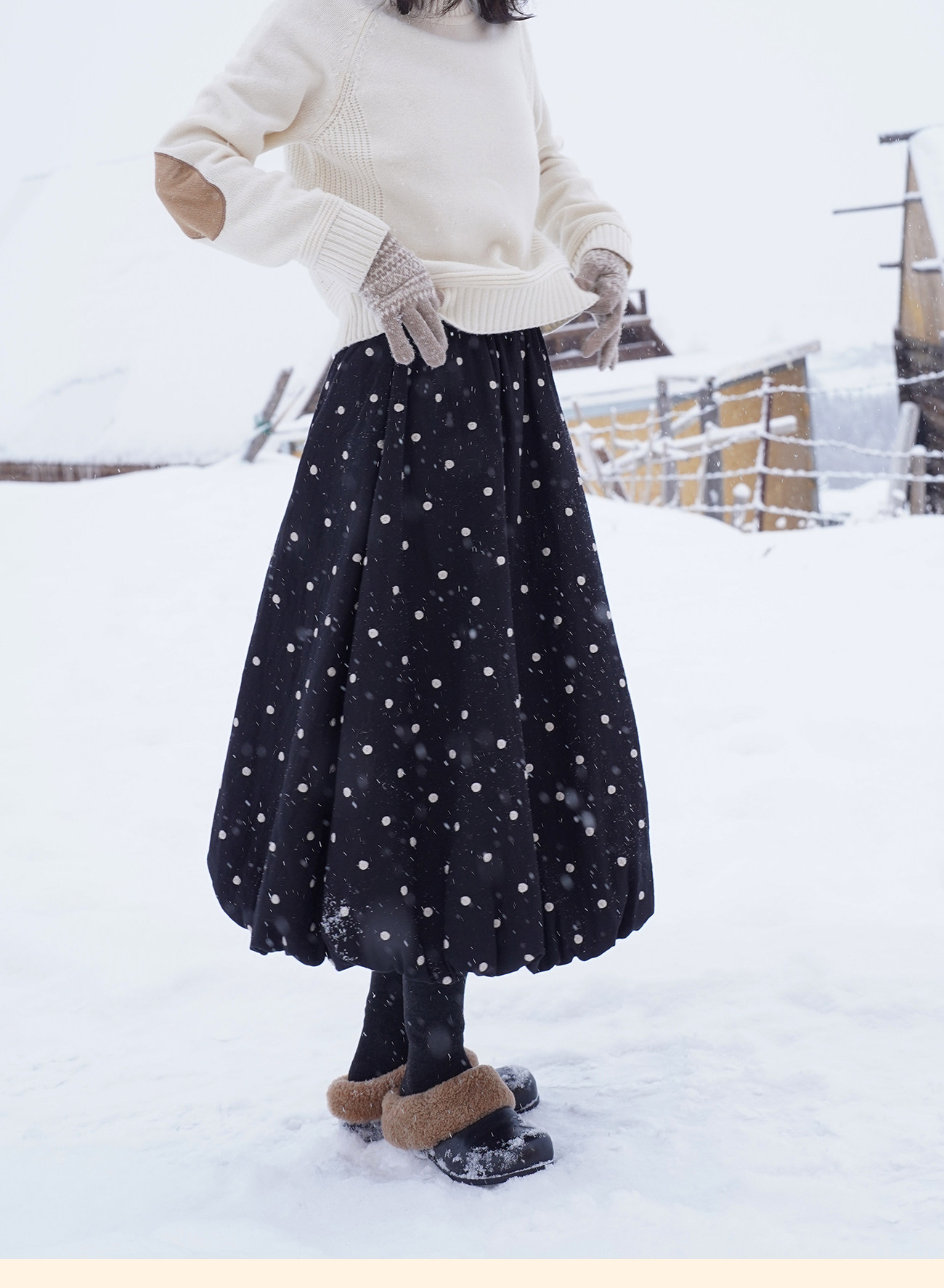 浮生八记/25D271/“波点圆舞曲”全棉秋冬松紧腰波点A字花苞半裙