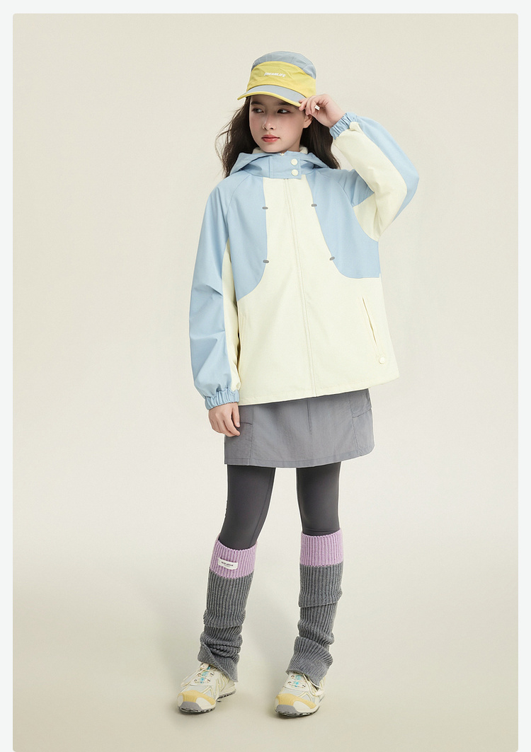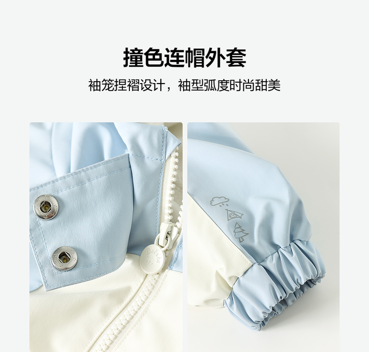 笛莎Deesha 童装女童外套2026春新款撞色连帽外套