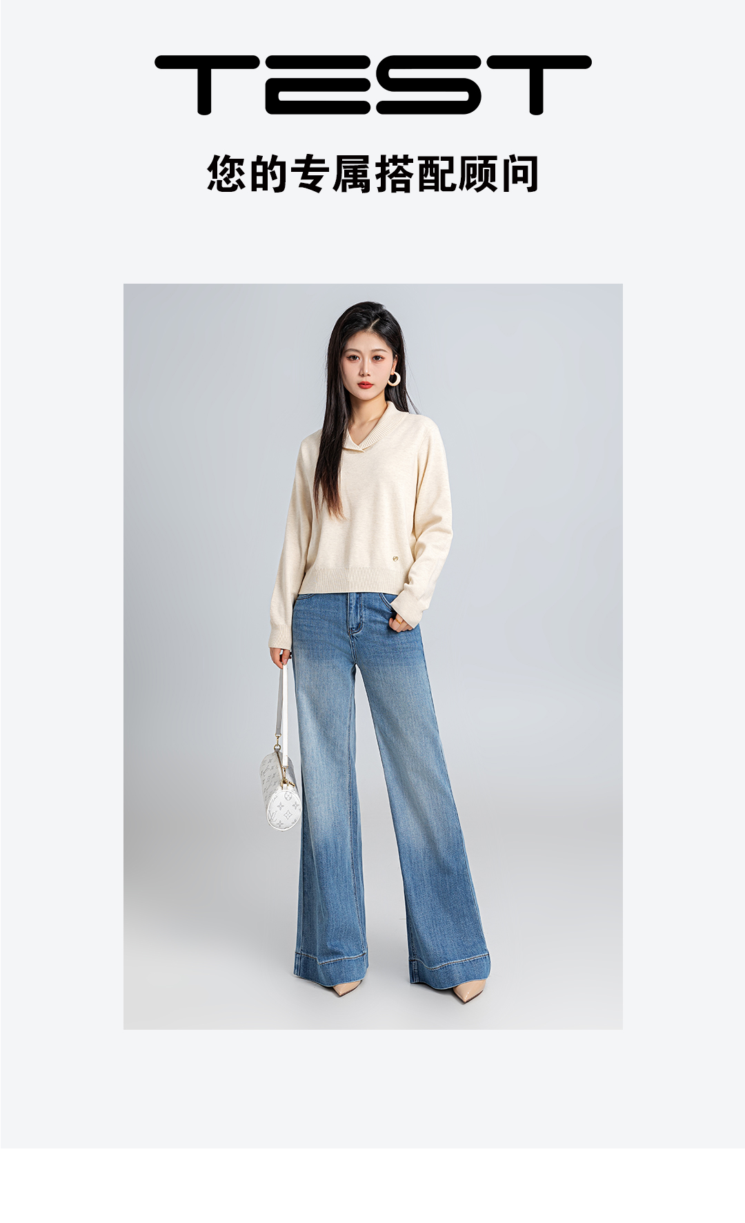 春上新软糯亲 V领针织衫新款宽松显瘦米白色长袖百搭毛衣1261004