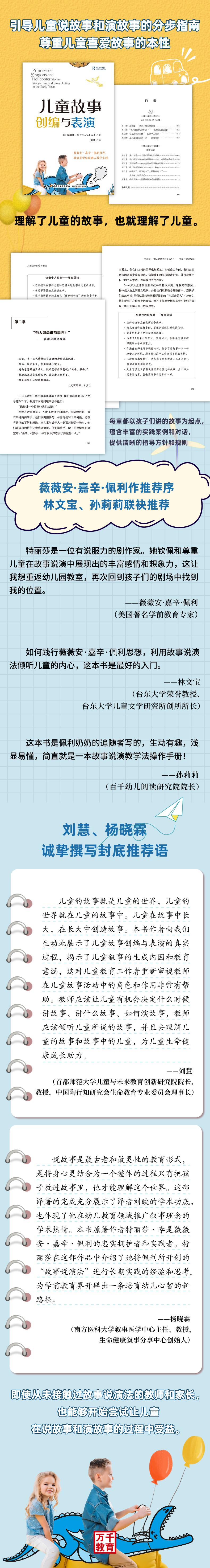 1.薇薇安·嘉辛·佩利是故事说演法的开创者,本书作者特丽莎·李在实践中开展的直升机故事法,得到了佩利的高度认可。 2.与以往相关话题的图书不同,本书从实践者的角度,将具体的教学步骤细致地列了出来,清晰易懂,更加具有可操作性。 3.每章都以孩子们讲的故事为起点,有丰富的实践案例和对话,即使从未接触过故事说演法的教师和家长,也能够开始尝试。 4.本书作者不但在全世界各地的学校里引导孩子们讲故事和演故事,还为教师和家长提供培训服务。3—11岁的孩子都能从说故事和演故事的过程中受益,获得语言、创造力和自信心的发展。
