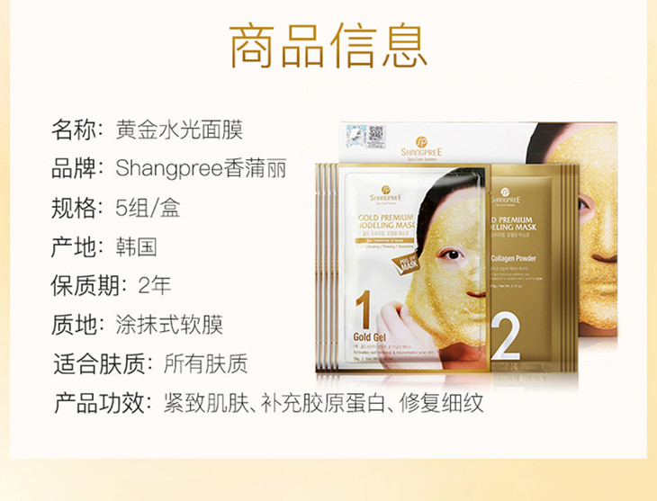 韩国SHANGPREE香蒲丽黄金面凝胶面膜 金色 5片/盒 (不送碗哦)新版