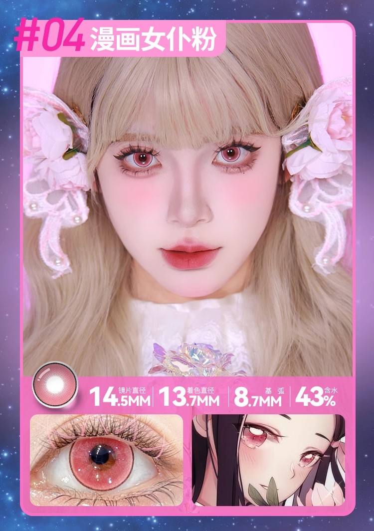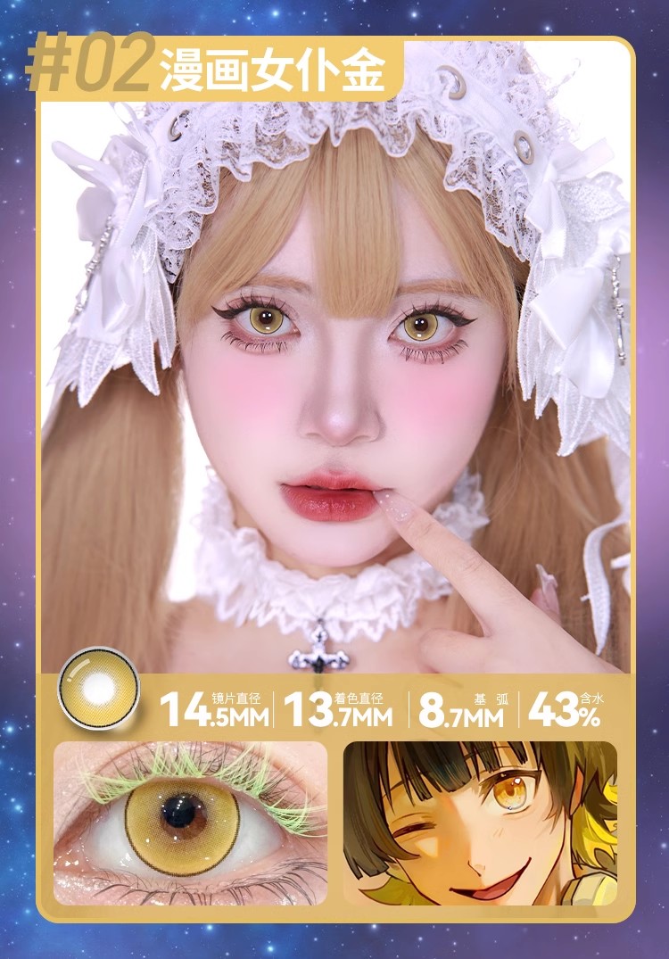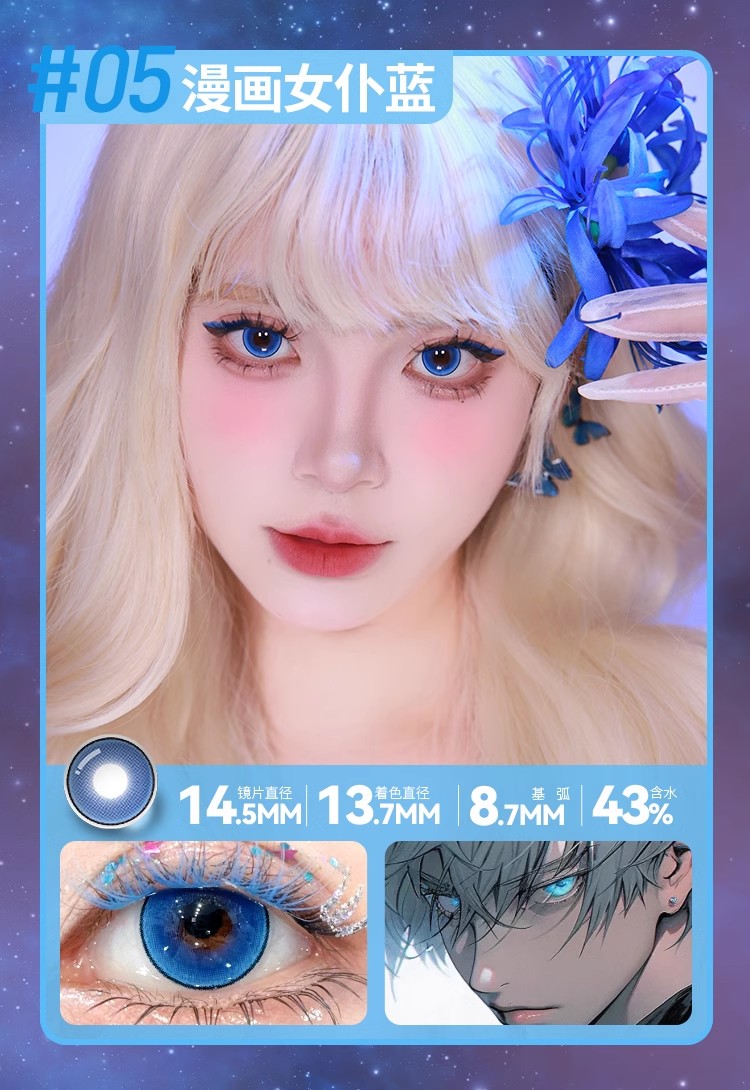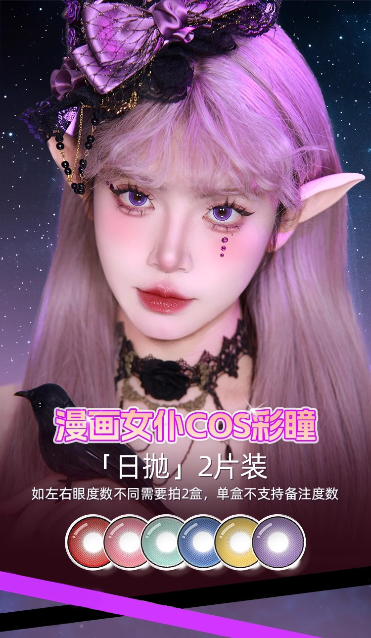 【日抛】cos漫画女仆2片蓝绿紫金红粉 直径:14.5mm 含水量43%(日抛2片/盒 不同度数请拍两盒)
