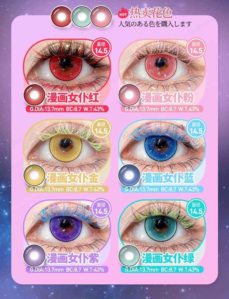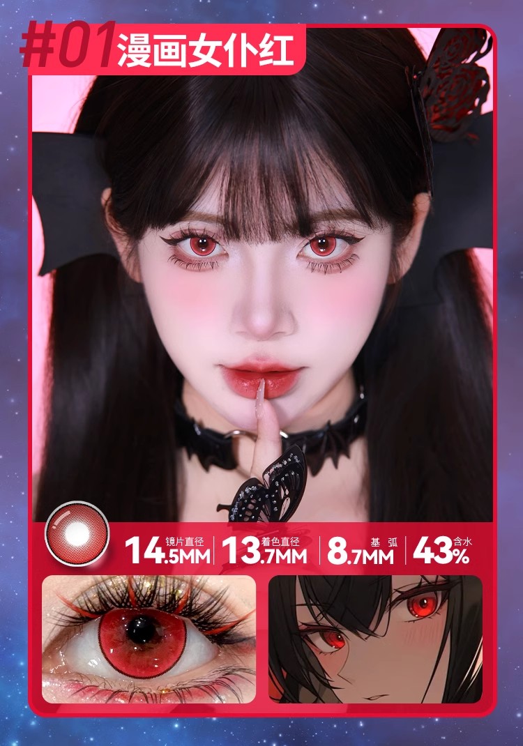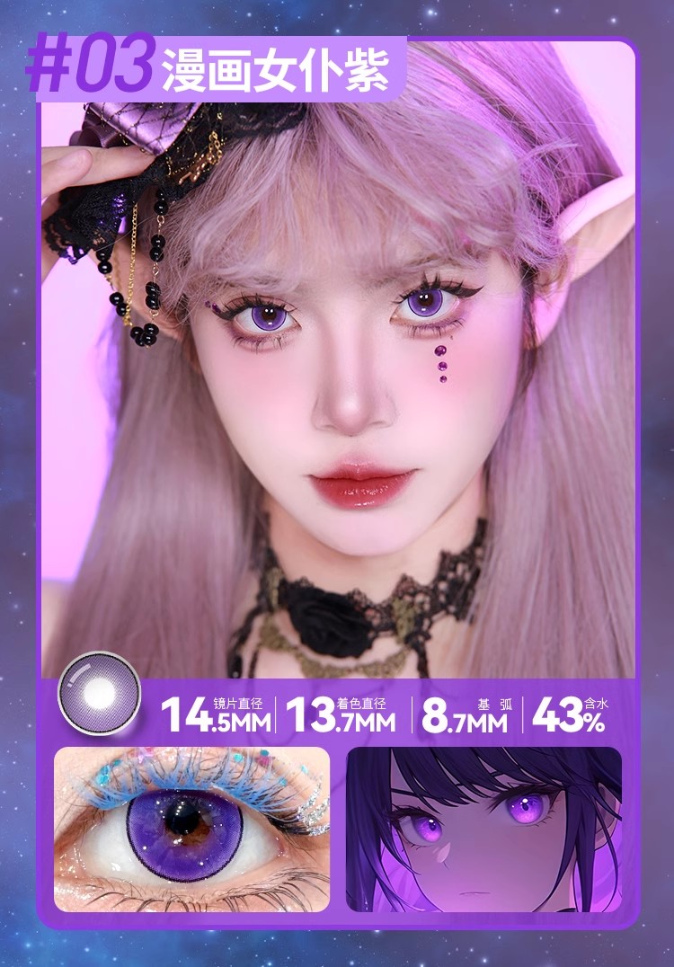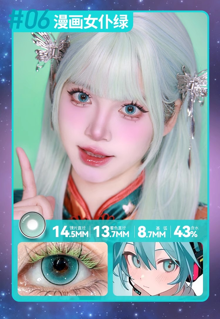 【日抛】cos漫画女仆2片蓝绿紫金红粉 直径:14.5mm 含水量43%(日抛2片/盒 不同度数请拍两盒)