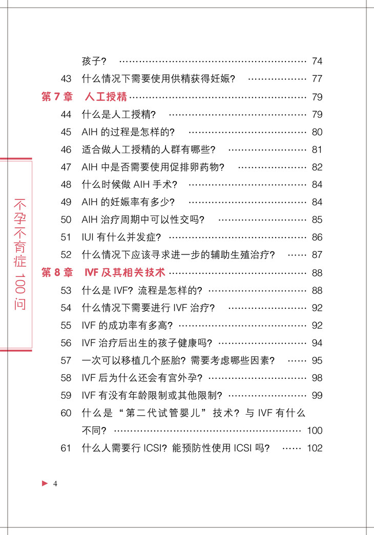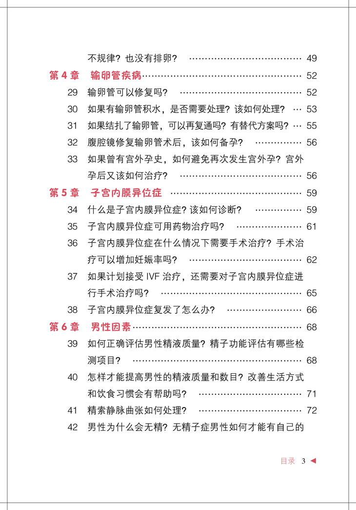 本书由多位临床经验丰富的妇产科生殖专家编写,对临床上不孕不育症的常见问题进行了梳理,选取了最具代表性的100个问题,结合笔者的临床经验,以问答的形式为读者提供科学的解答。通过本书,读者能够快速了解男女性的生殖系统、与生育相关的问题及解决方案,有助于解答读者在不孕不育症诊疗过程中的各种困惑,也有助于读者高效地与医师进行沟通。年轻的妇产科医师、护士及非妇产科专业的医护人员通过本书可清楚地了解这些问题所包含的专业知识,不仅有利于日常工作的开展,也有利于与患者及其家属的沟通,还能更好地为大众提供通俗易懂的专业咨询和卫生保健知识。同时,书中的很多内容也可供初级辅助生殖医师参阅,以指导其工作。