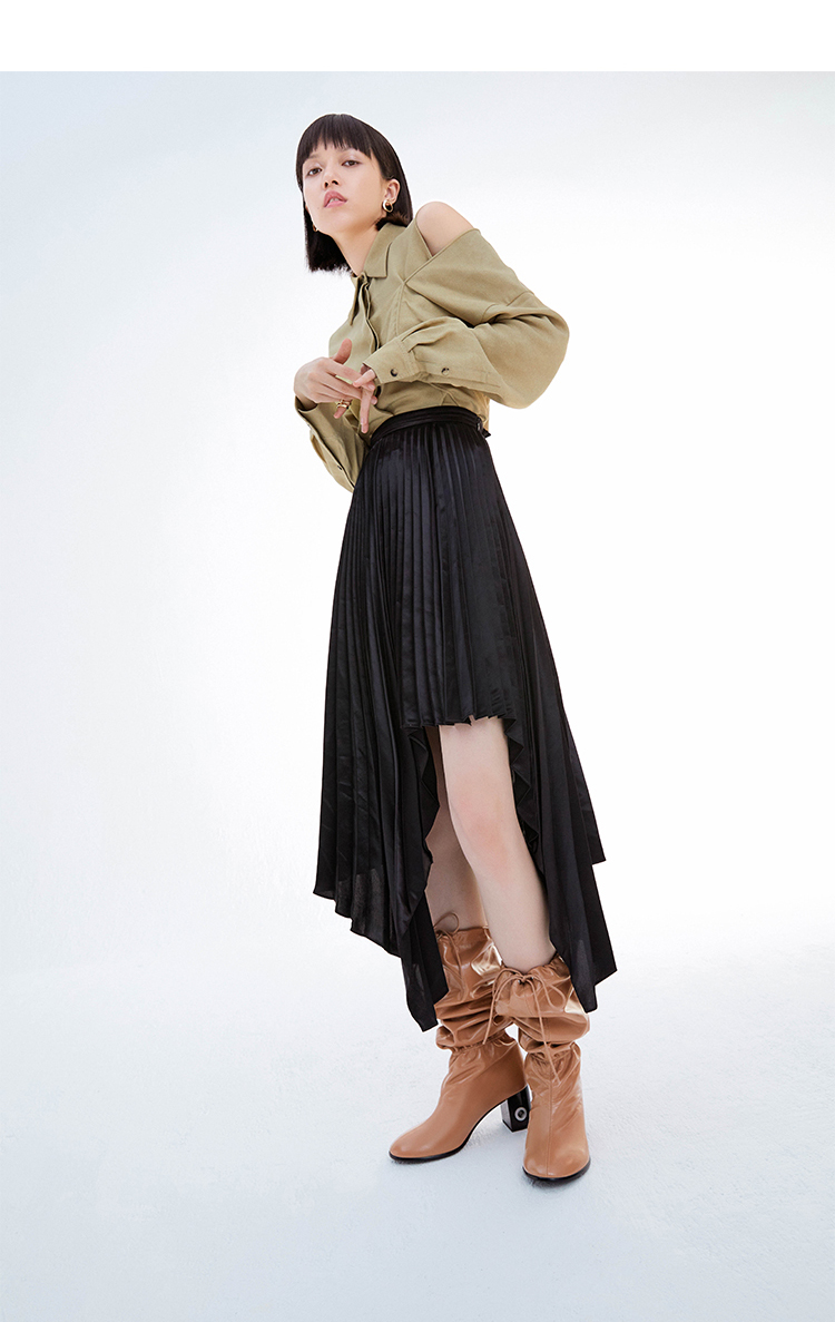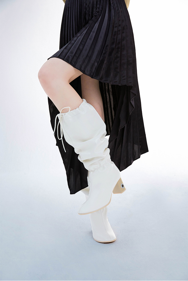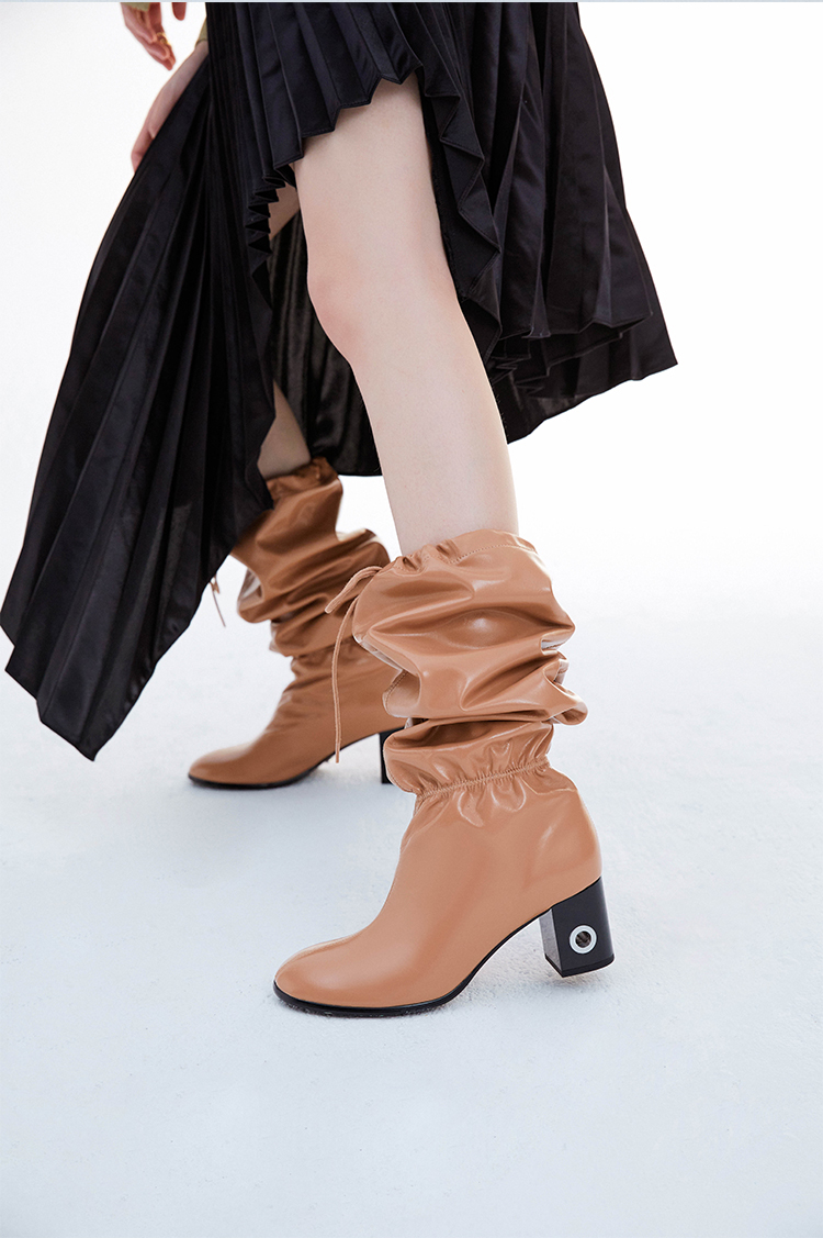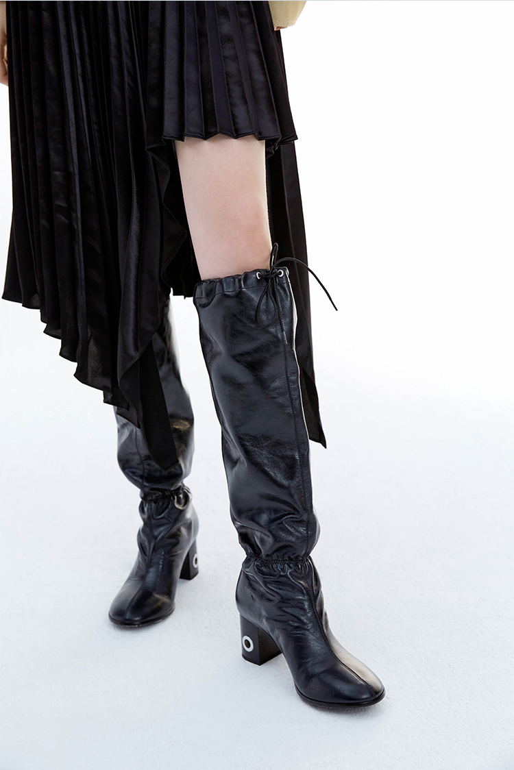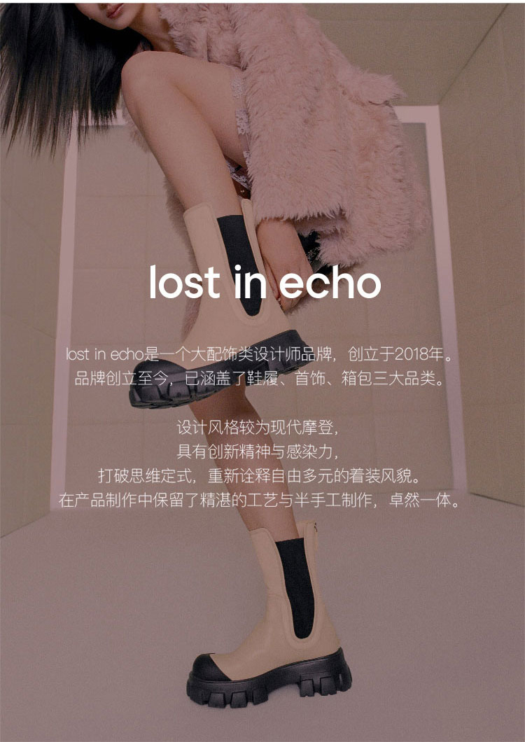 lost in echo 原创设计师品牌 气眼鞋跟圆头趣味袖套膝下靴堆堆靴