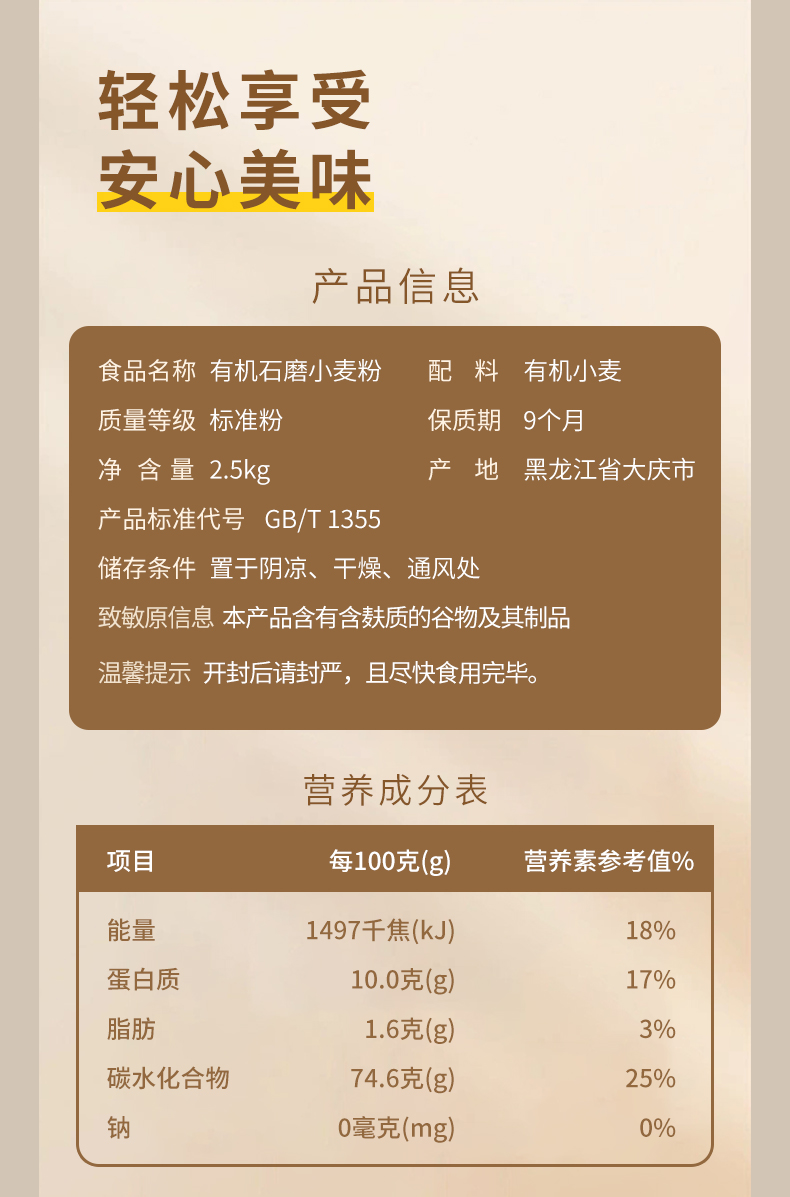 悦意有机石磨小麦粉2.5kg*1袋 FX